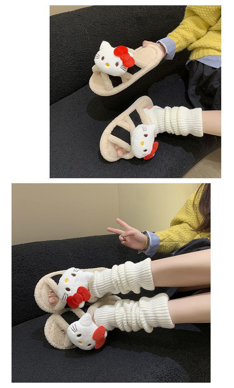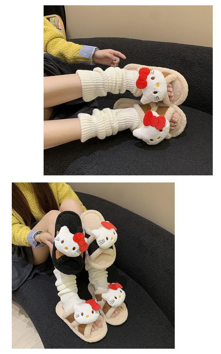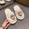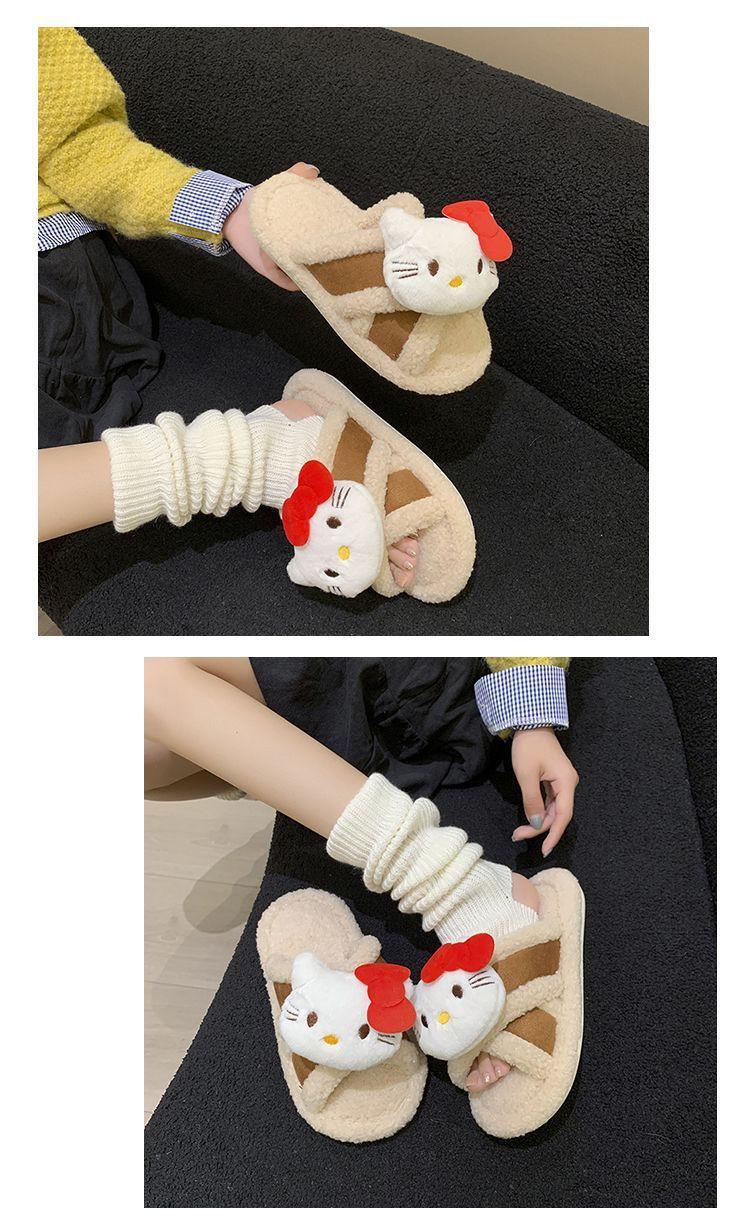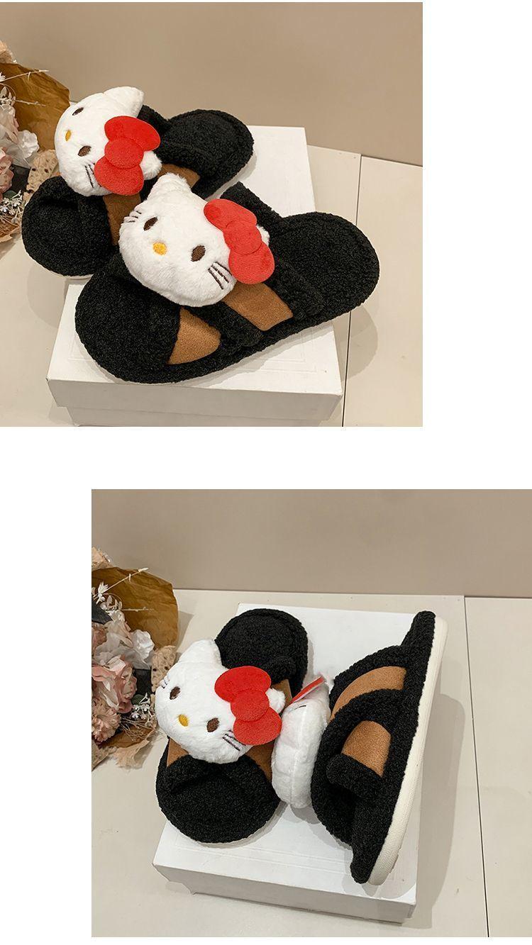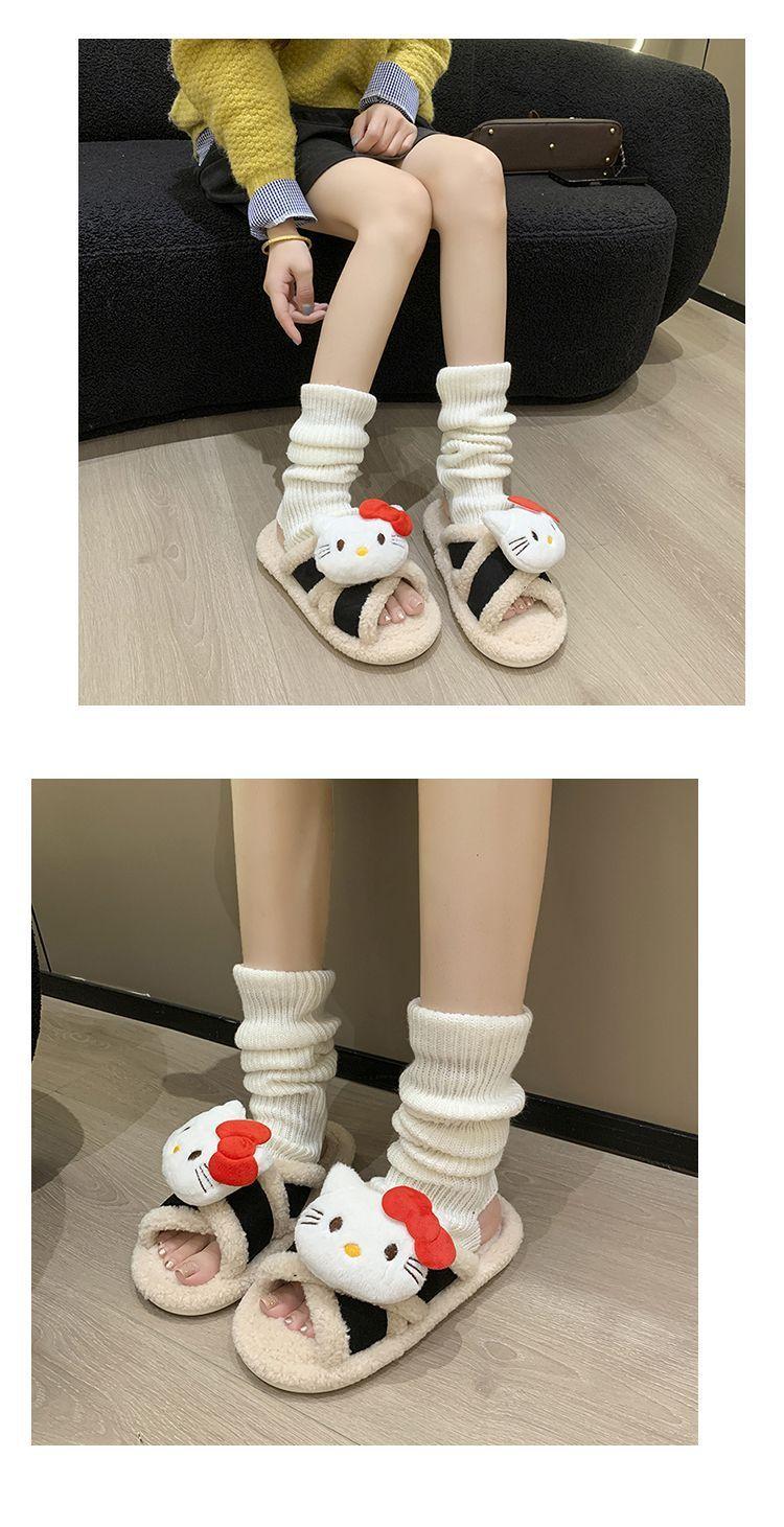 Hogar Suela Blanda Antideslizante Cómodas Pantuflas de Dibujos Animados de Una Tira 2025 Otoño/Invierno Nuevas Pantuflas Esponjosas de Gatito Lindo para Mujer