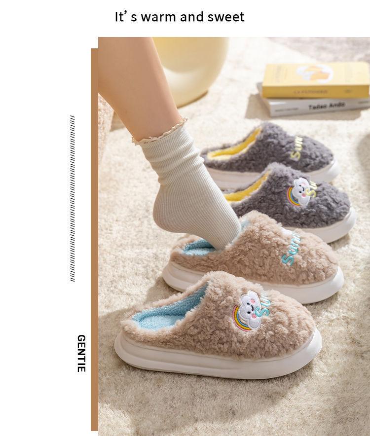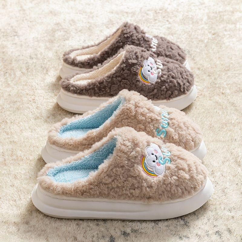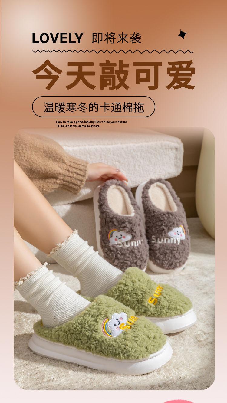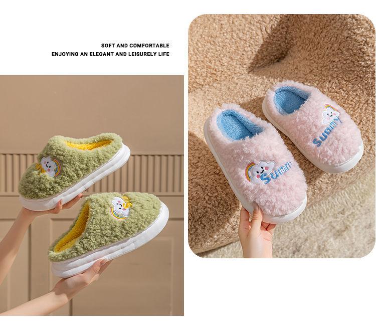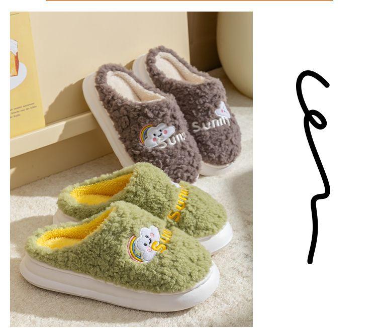 Pantuflas de Algodón para Hombre Otoño e Invierno 2025 Nuevo Estilo Interior Hogar Doméstico Más Terciopelo Cálido Antideslizante Pantuflas de Lana para Mujer Invierno