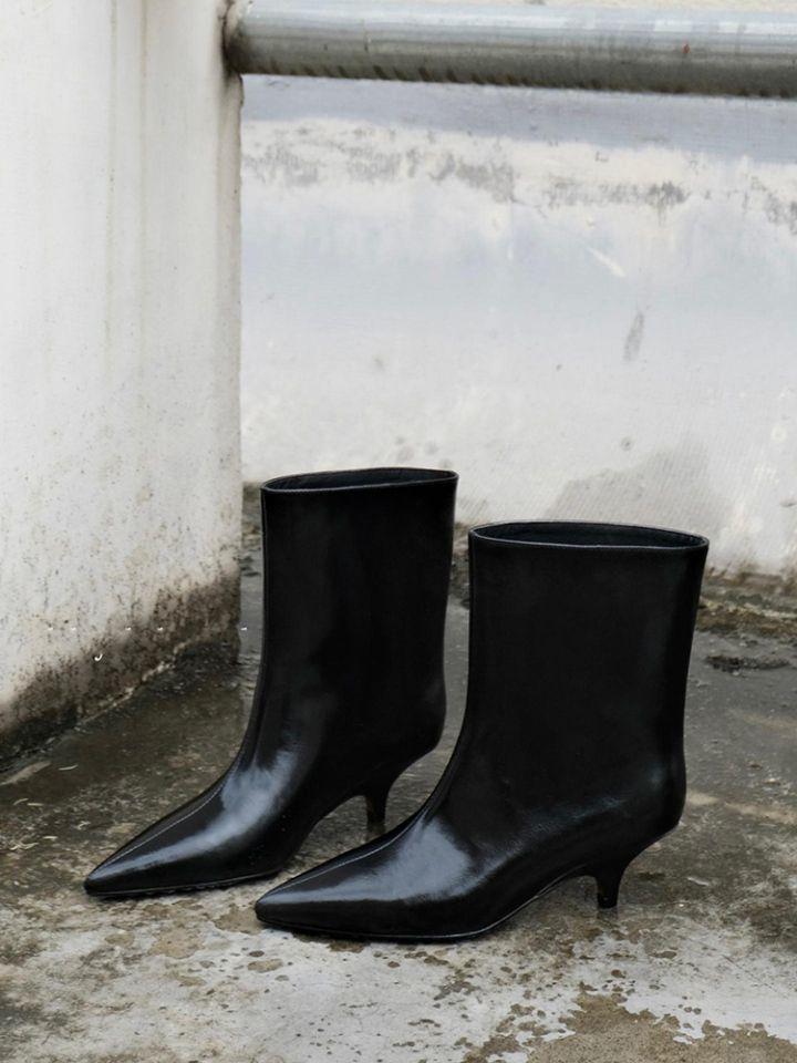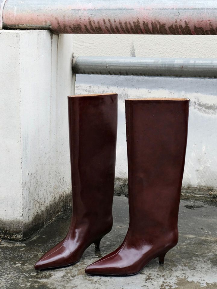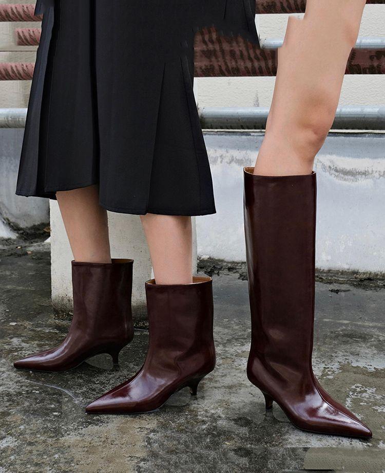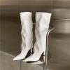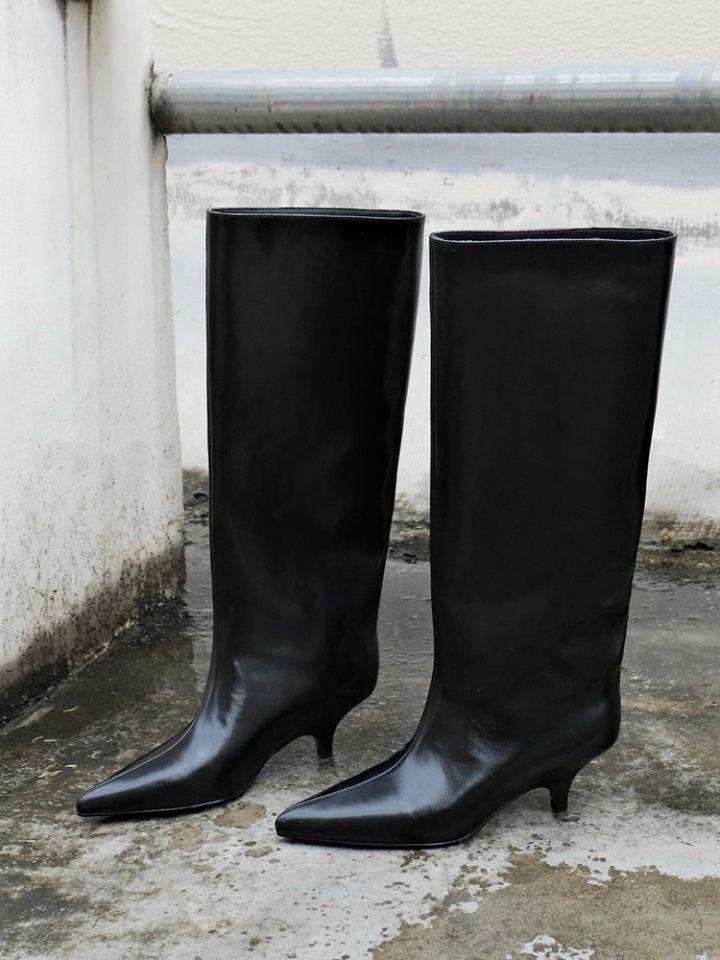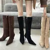 Botas largas minimalistas hasta el muslo para mujer 2025 otoño e invierno nuevo estilo punta afilada botas de caballero vintage adelgazantes tacón de aguja botas ajustadas