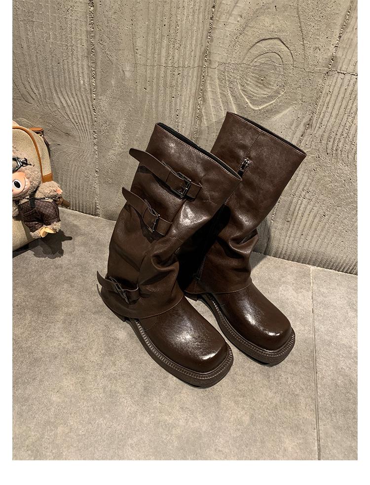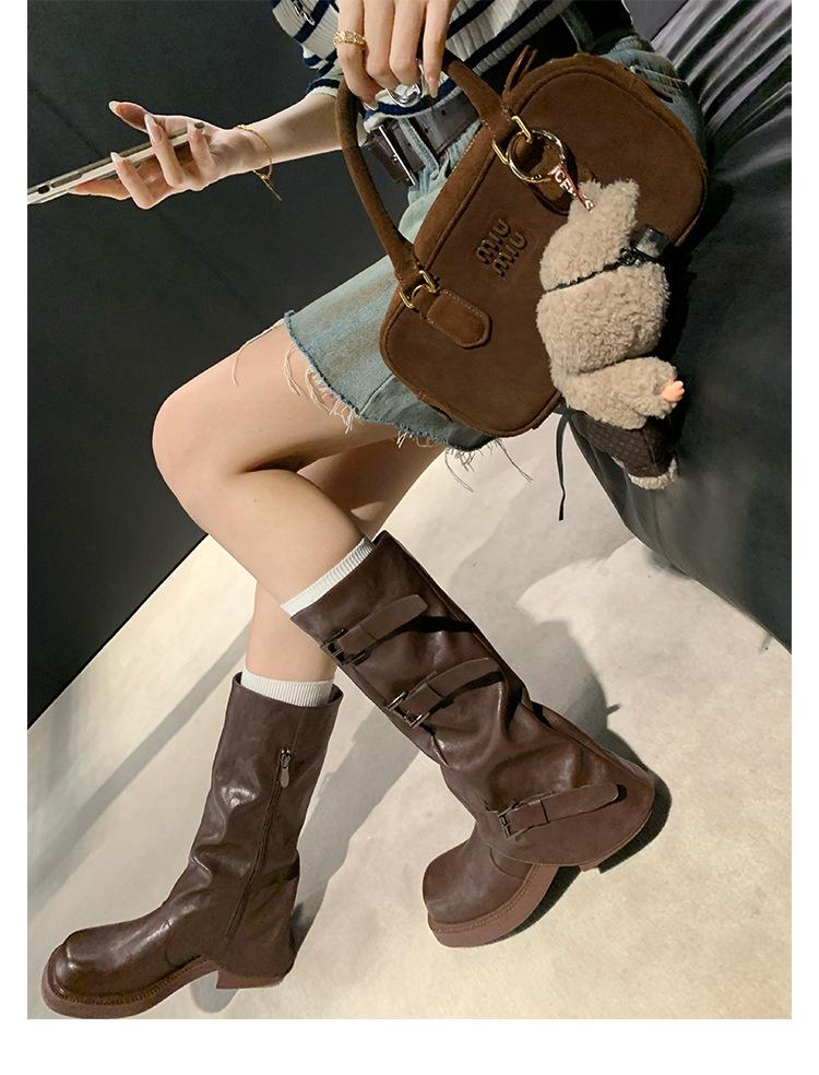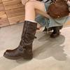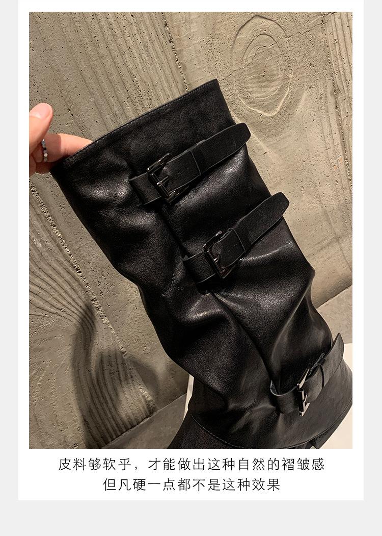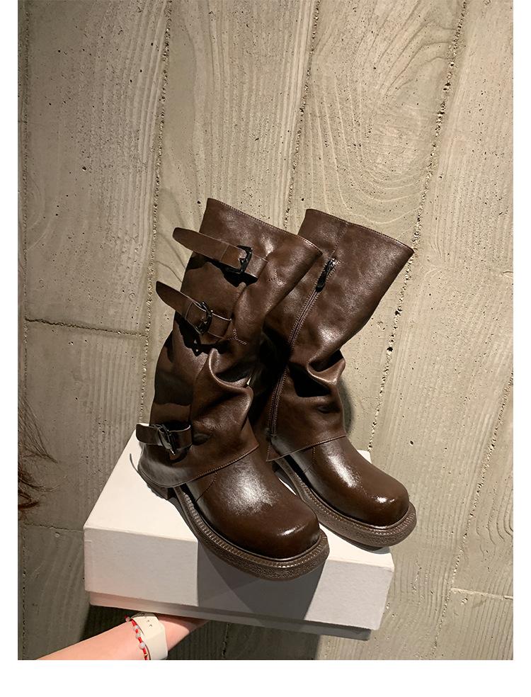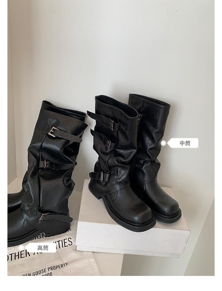 2025 Spot Nuevo Botas Martin de Media Caña Meillard para Mujer Botas Arrugadas Apiladas para Piernas Tacón Grueso Caña Alta Caballero Botas Largas