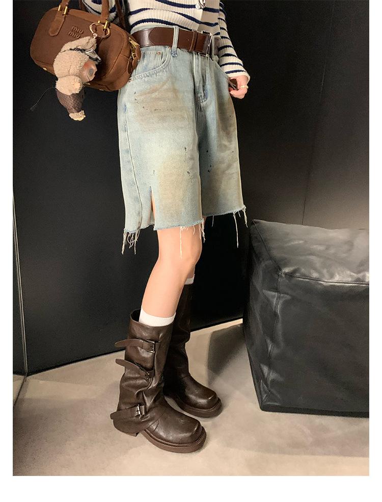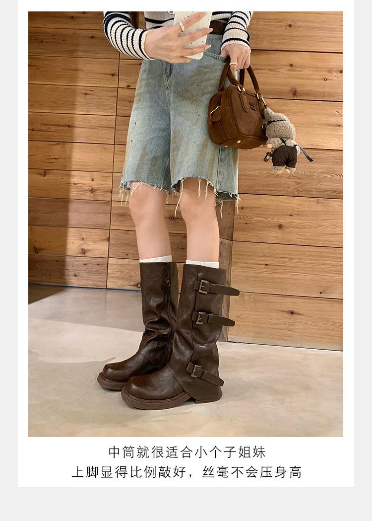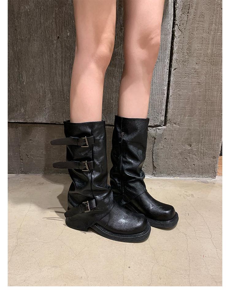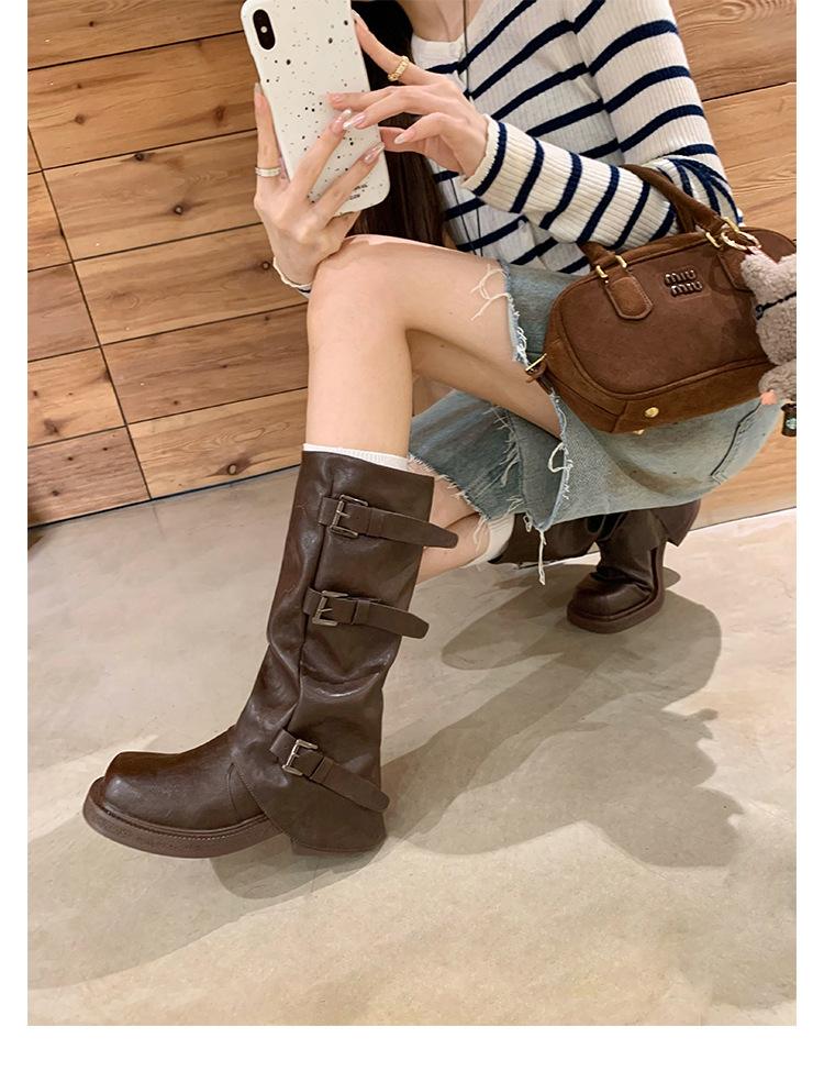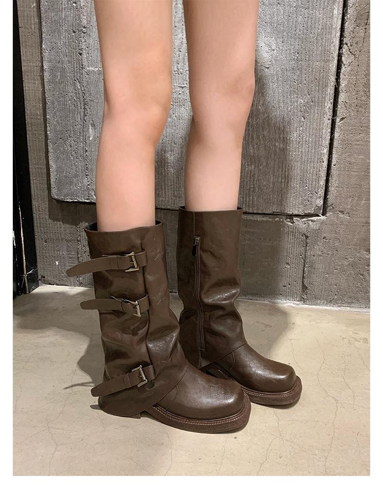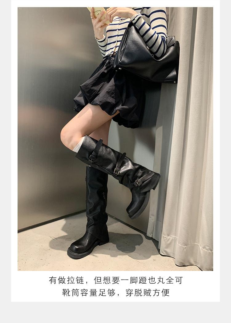 2025 Spot Nuevo Botas Martin de Media Caña Meillard para Mujer Botas Arrugadas Apiladas para Piernas Tacón Grueso Caña Alta Caballero Botas Largas