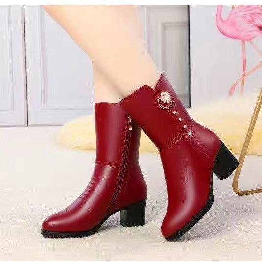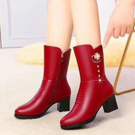 Invierno Más Terciopelo Engrosado Antideslizante Cálido Zapatos de Algodón para Madre Botas de Algodón para Mujer Media Caña Nuevas Botas Martin Tacones Altos para Mujer