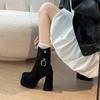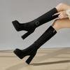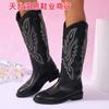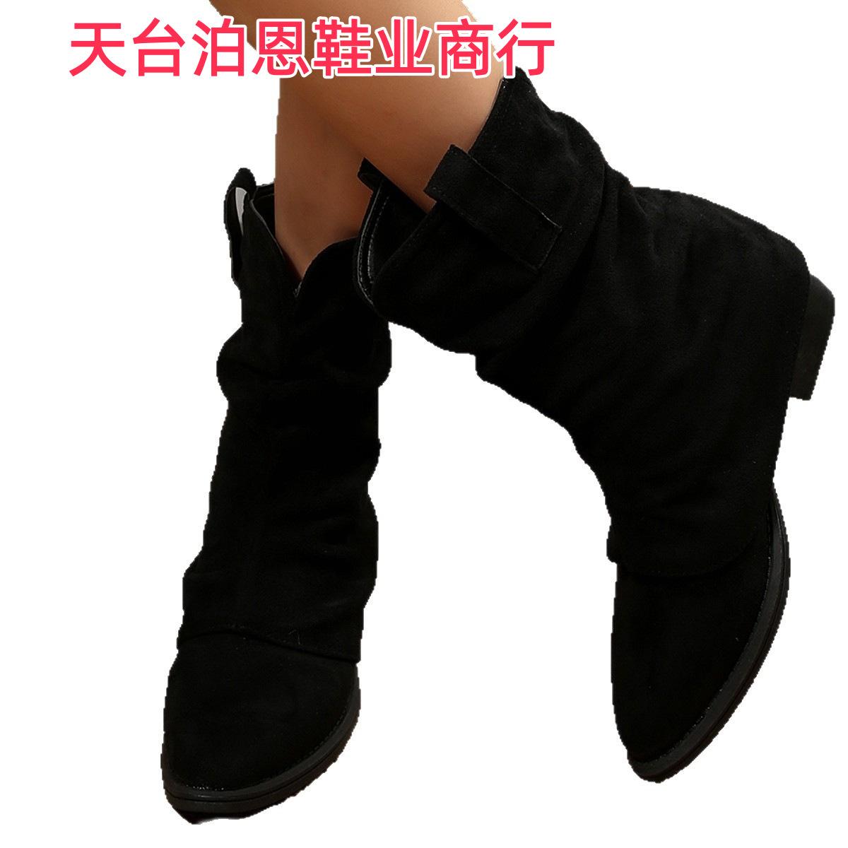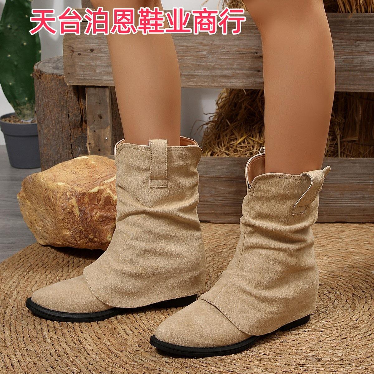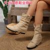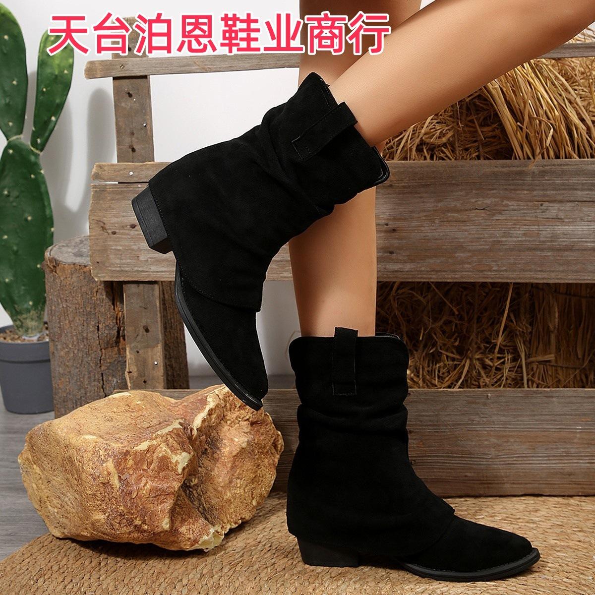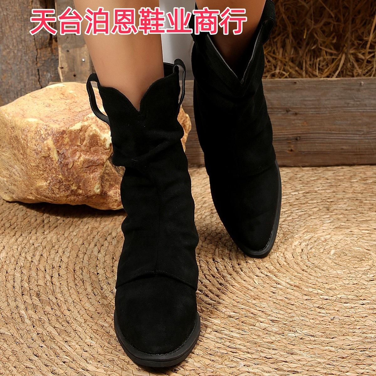 2025 Moda Transfronteriza Europea y Americana Otoño e Invierno Nuevo Estilo Slip-on Tacón Bajo Botas de Cuero para Mujer Comercio Exterior Punta Redonda Talla Grande Botas para Mujer