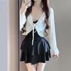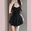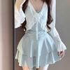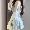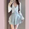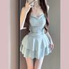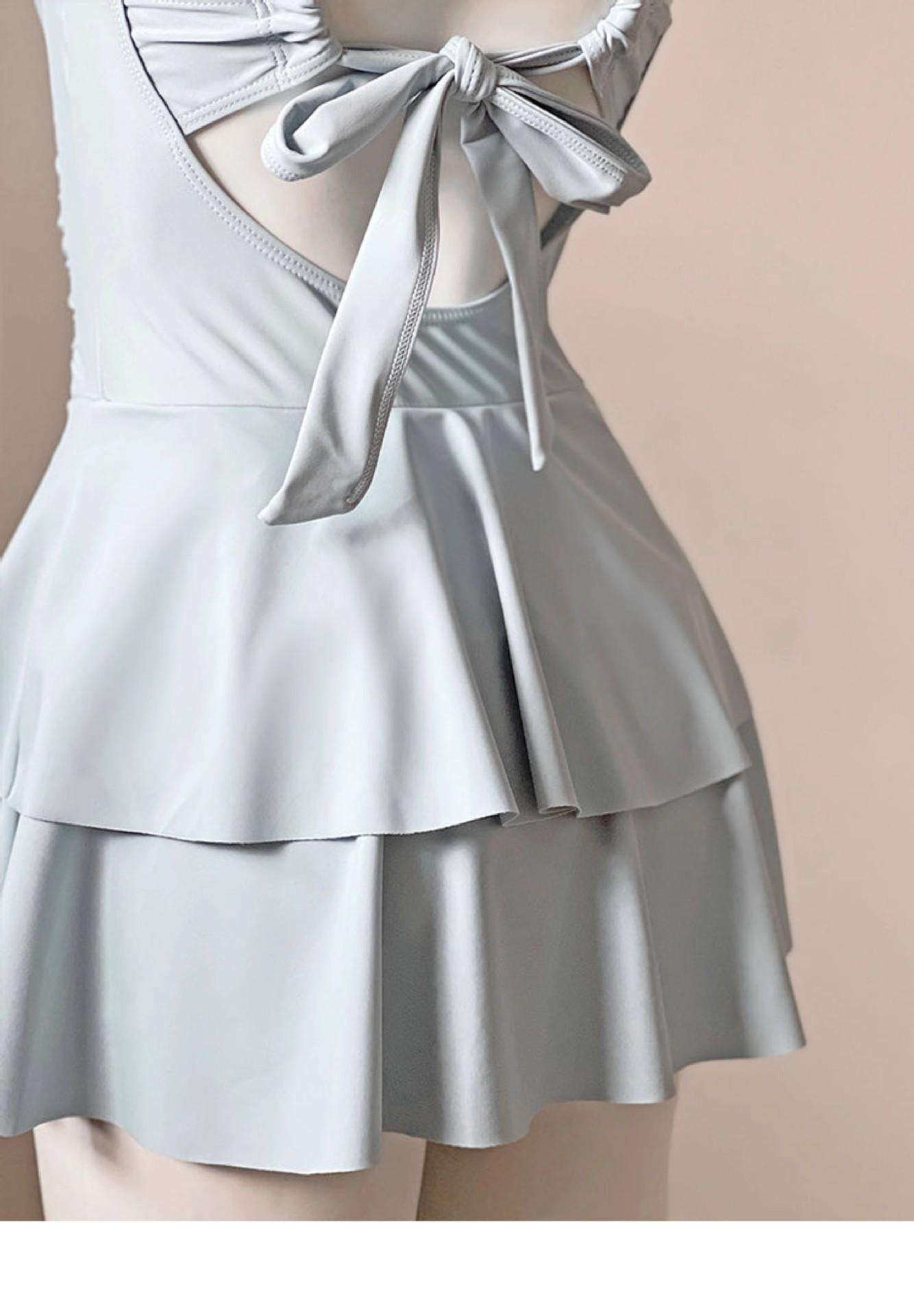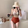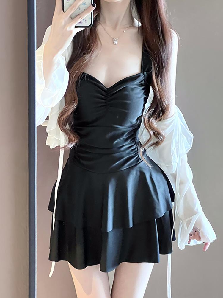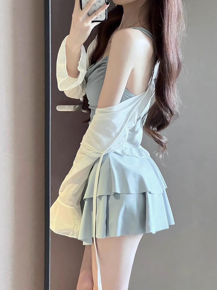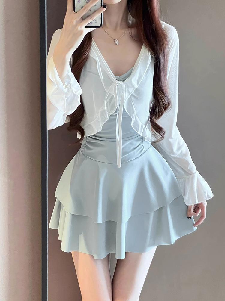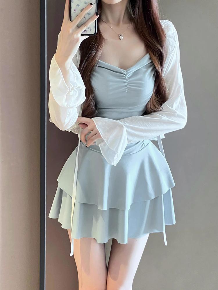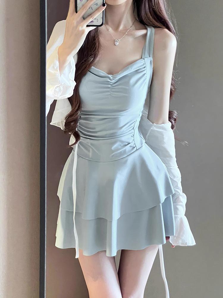 Traje de baño para mujer estilo coreano ins de color sólido con traje de baño tipo camisa exterior, moderno, dulce, sin espalda, para aguas termales
