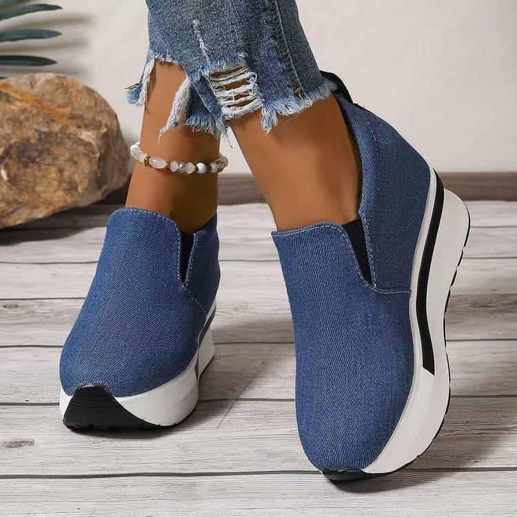 Comercio Exterior 2020 Nuevos Zapatos de Plataforma de Suela Gruesa Zapatos Casuales Blancos con Cordones Versión Coreana Lona Versátiles Zapatos de Mujer Zapatos Individuales de Mujer a la Moda