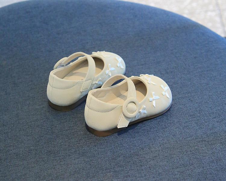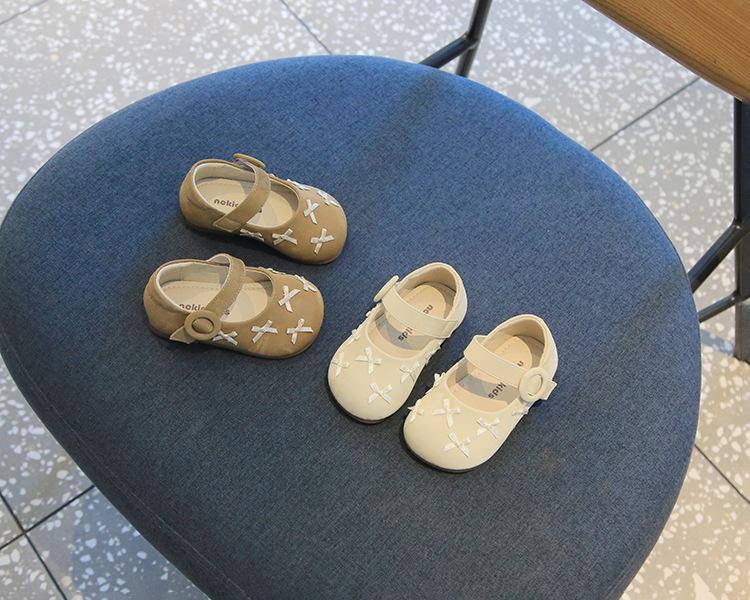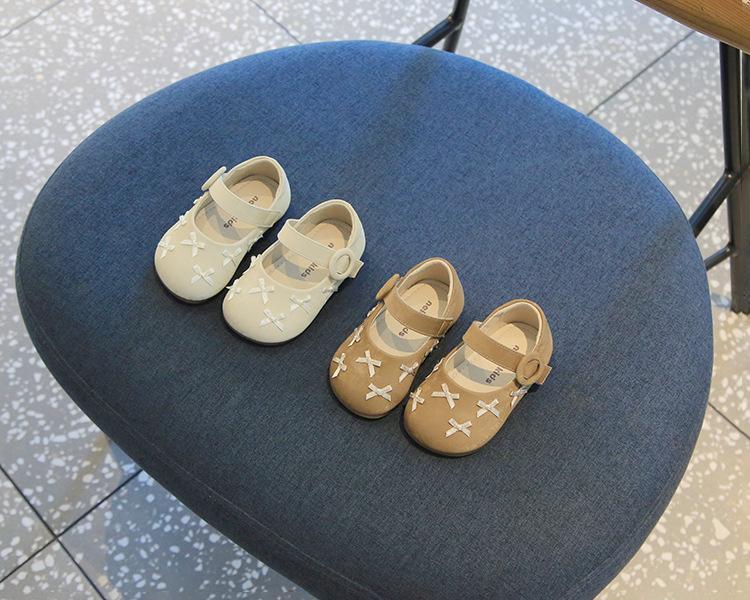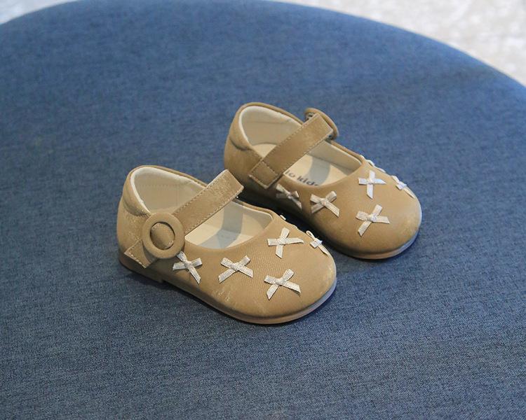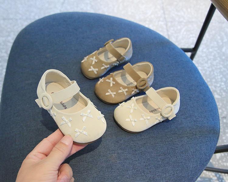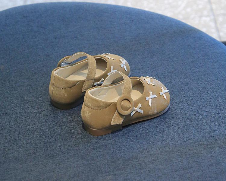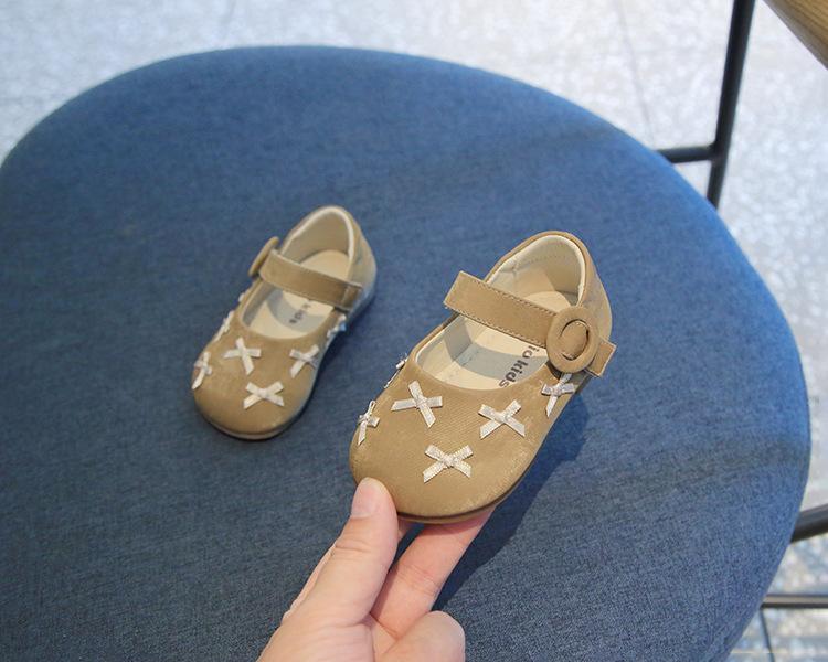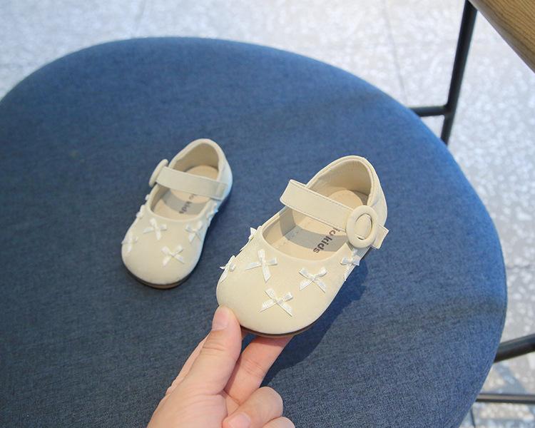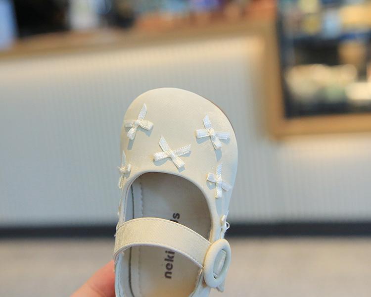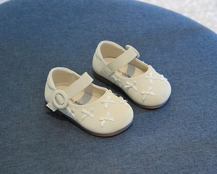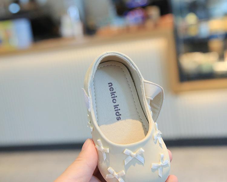 2025 Otoño Nuevos Zapatos de Princesa con Lazo para Niños Estilo Coreano Velcro Suela Suave Zapatos de Cuero Dulces para Niñas Venta al por Mayor