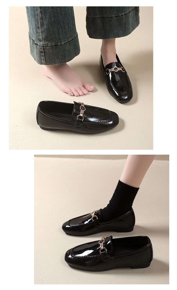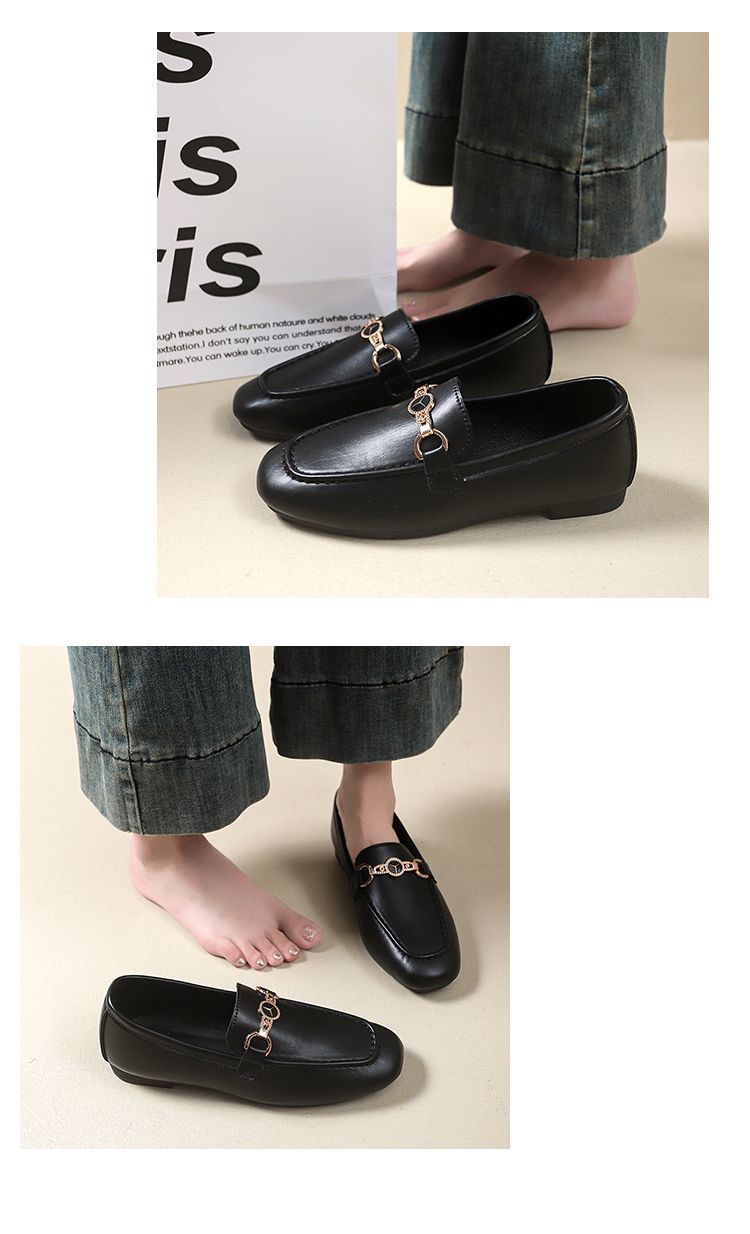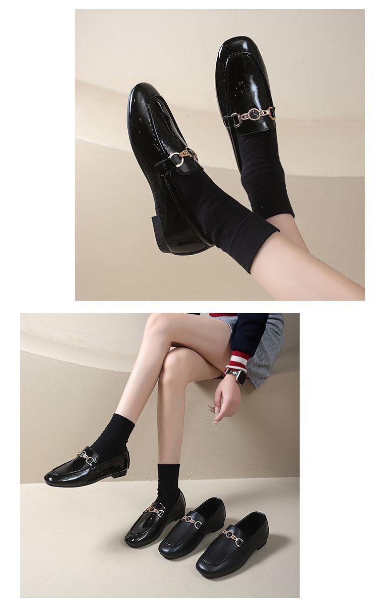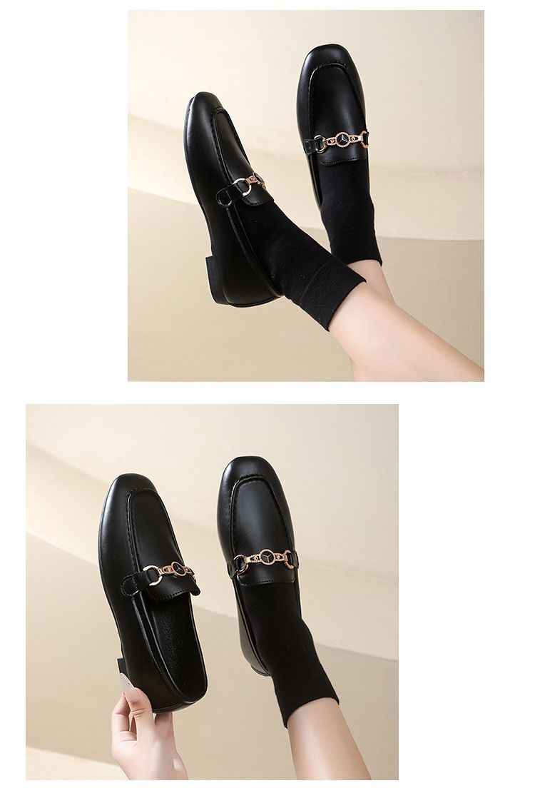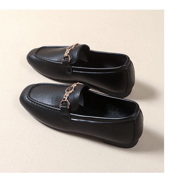 Zapatos de Cuero para Mujer 2025 Primavera y Otoño Nuevos Mocasines Versátiles Estilo Británico Fondo Plano Zapatos Individuales para Mujer