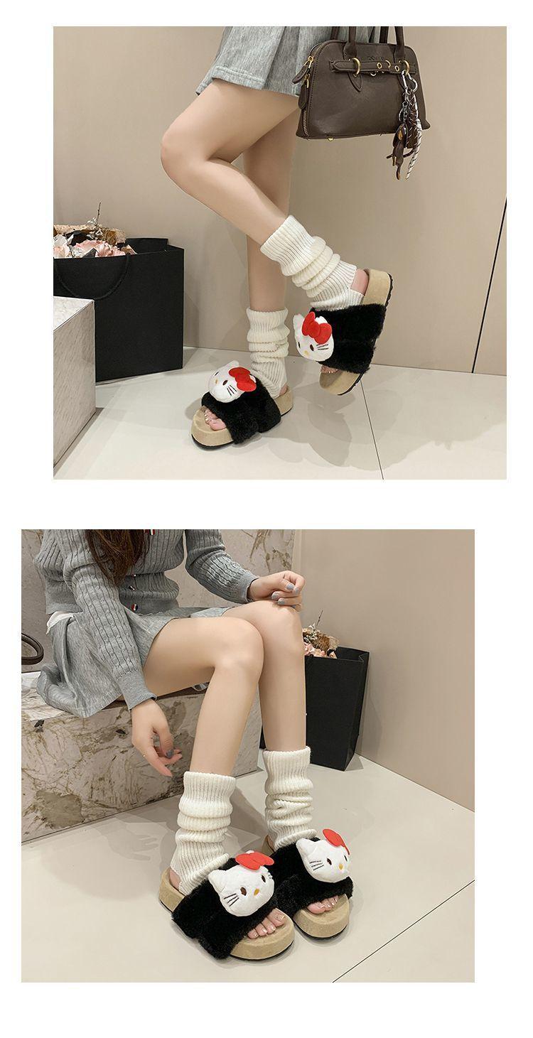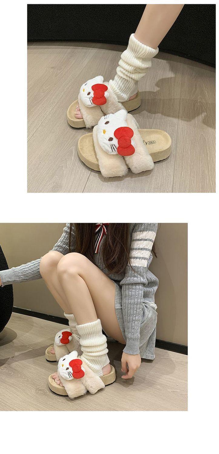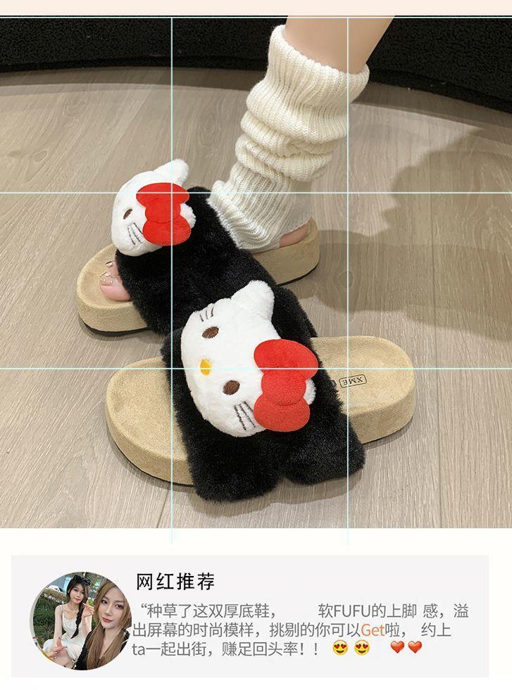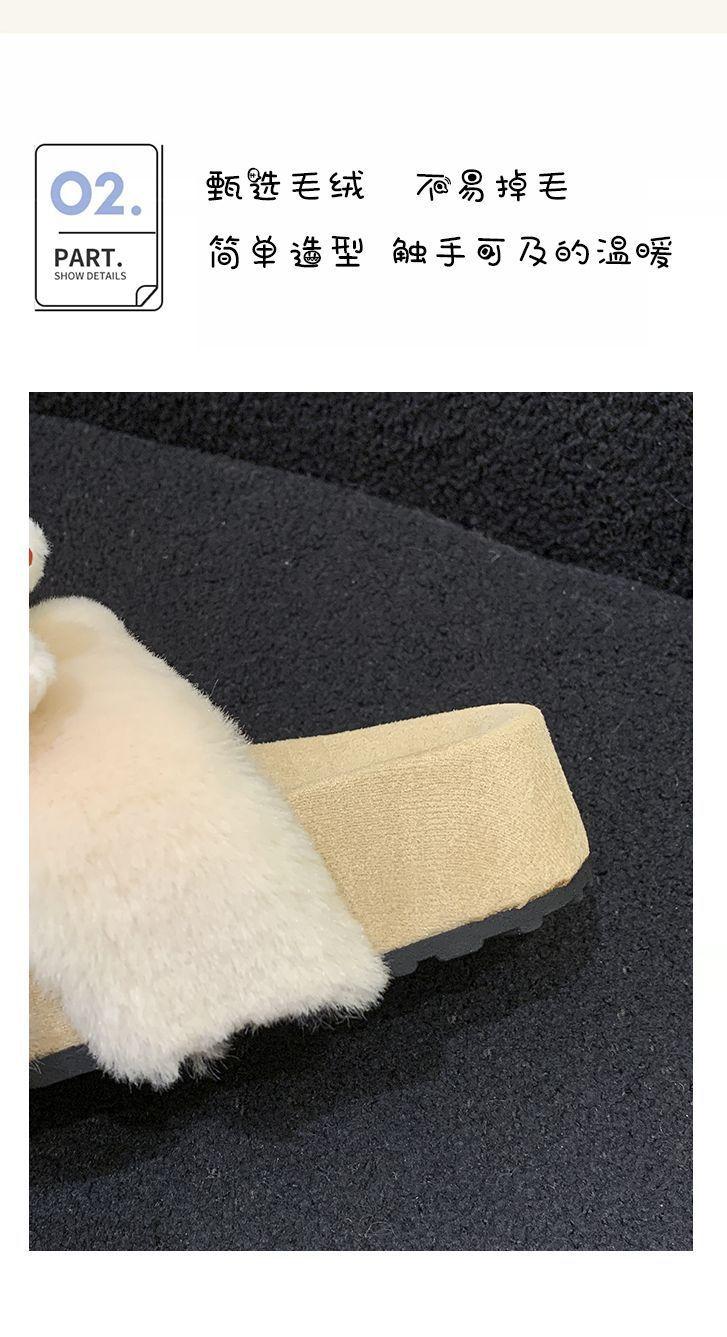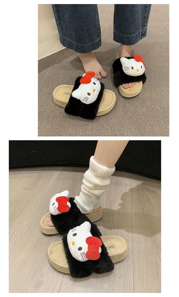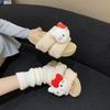 Zapatillas de felpa de algodón con dibujos animados de suela gruesa y elegantes para aumentar la altura, zapatillas peludas rojas de internet para mujer, ropa de exterior 2025 otoño e invierno nuevo