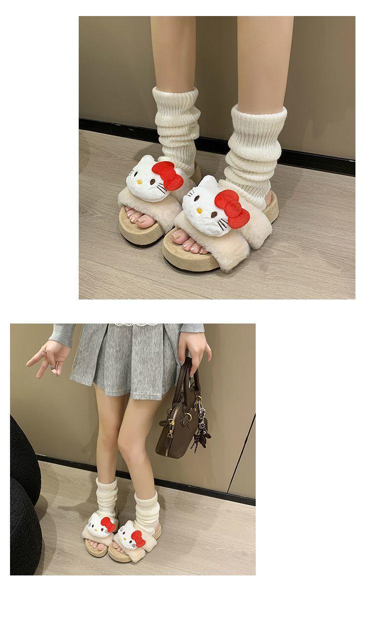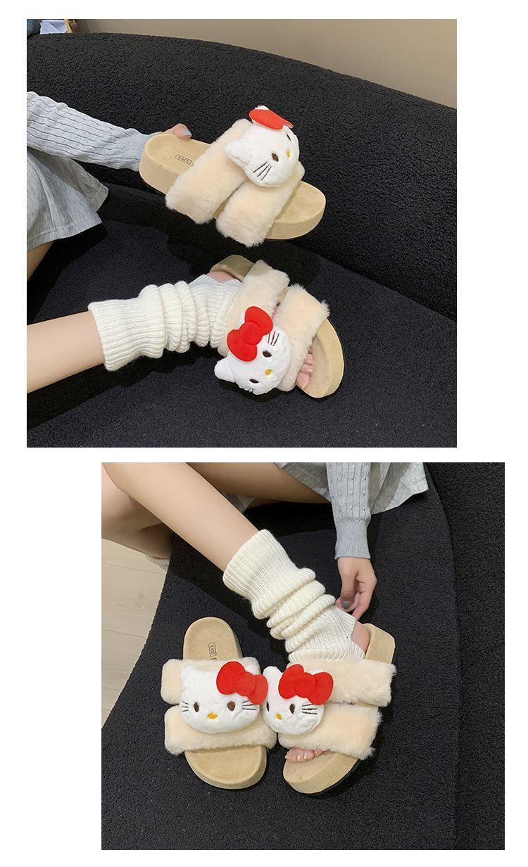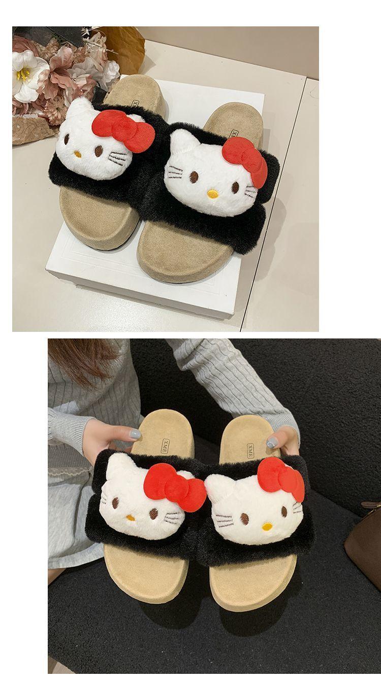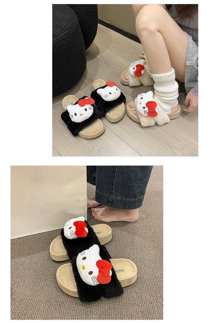 Zapatillas de felpa de algodón con dibujos animados de suela gruesa y elegantes para aumentar la altura, zapatillas peludas rojas de internet para mujer, ropa de exterior 2025 otoño e invierno nuevo