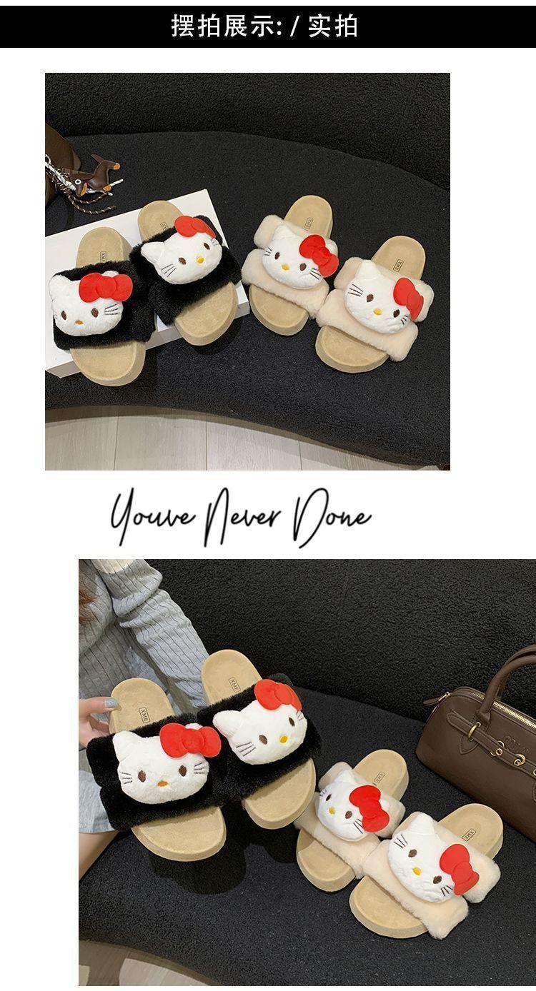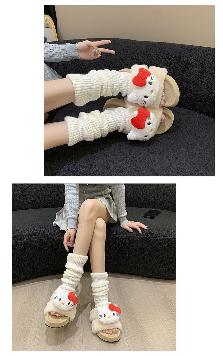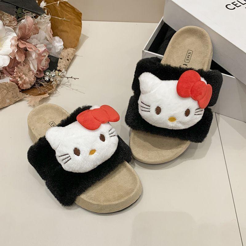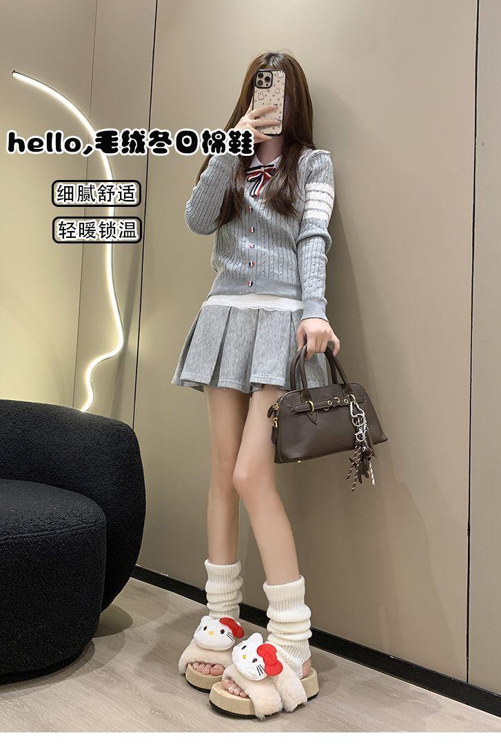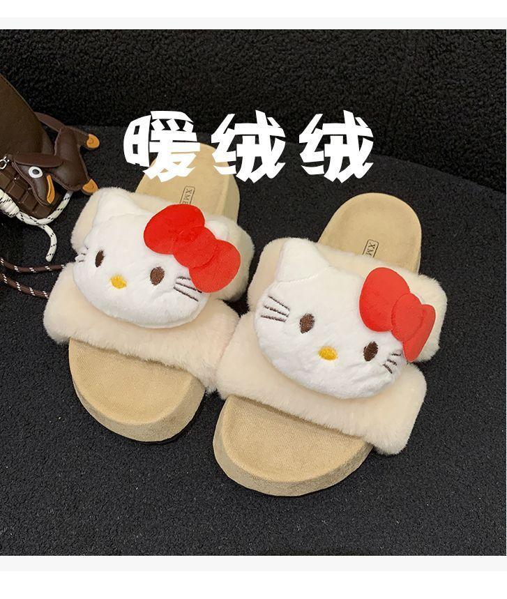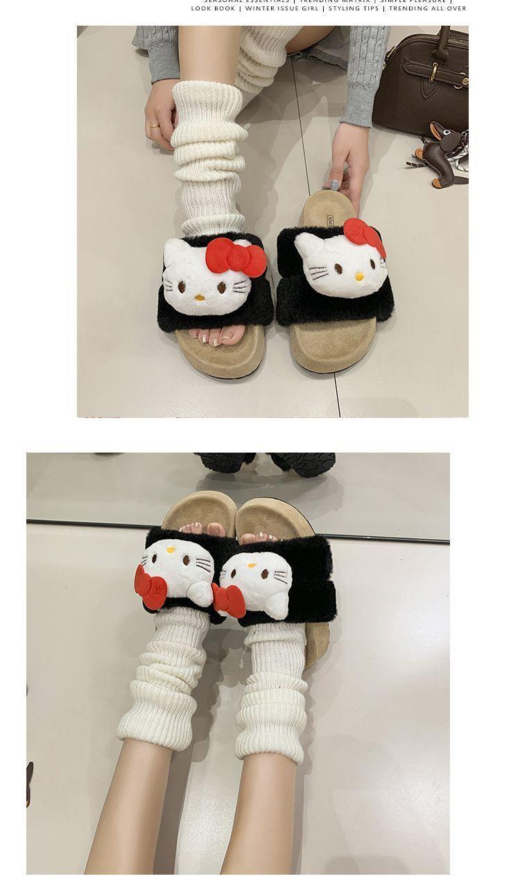 Zapatillas de felpa de algodón con dibujos animados de suela gruesa y elegantes para aumentar la altura, zapatillas peludas rojas de internet para mujer, ropa de exterior 2025 otoño e invierno nuevo