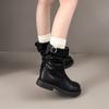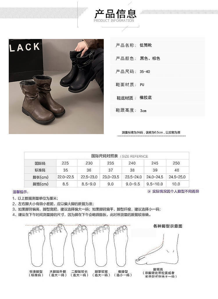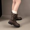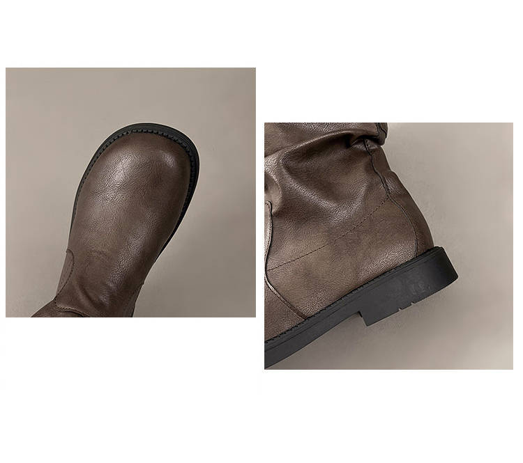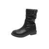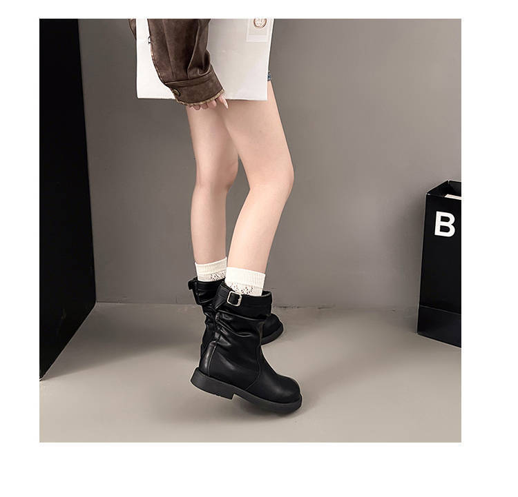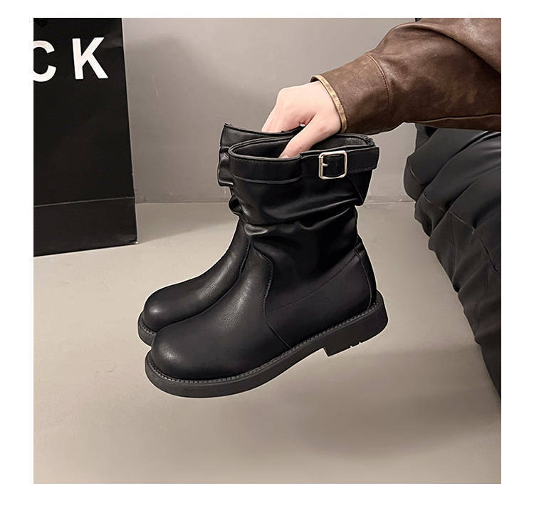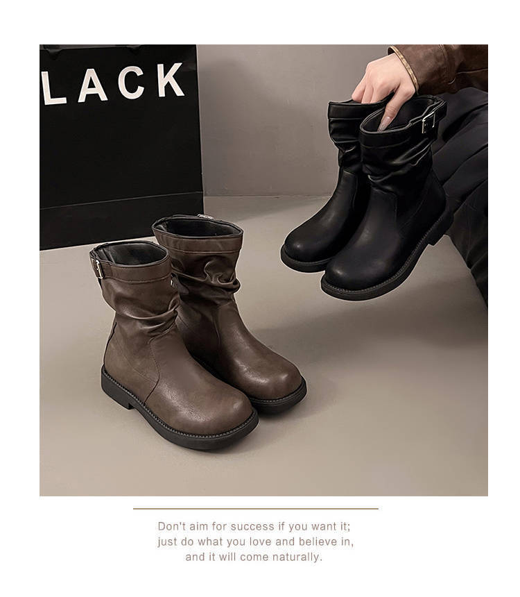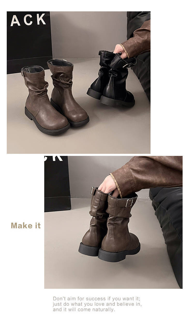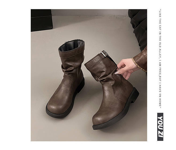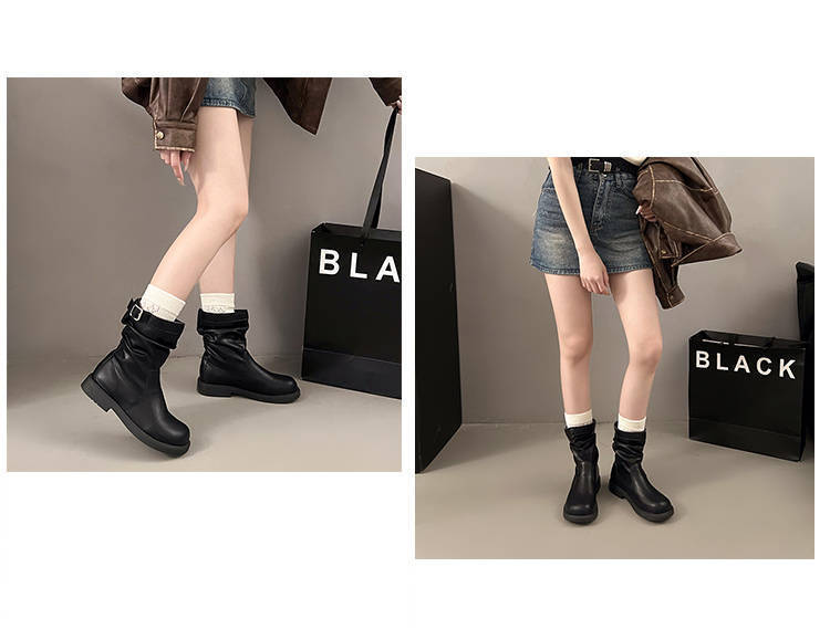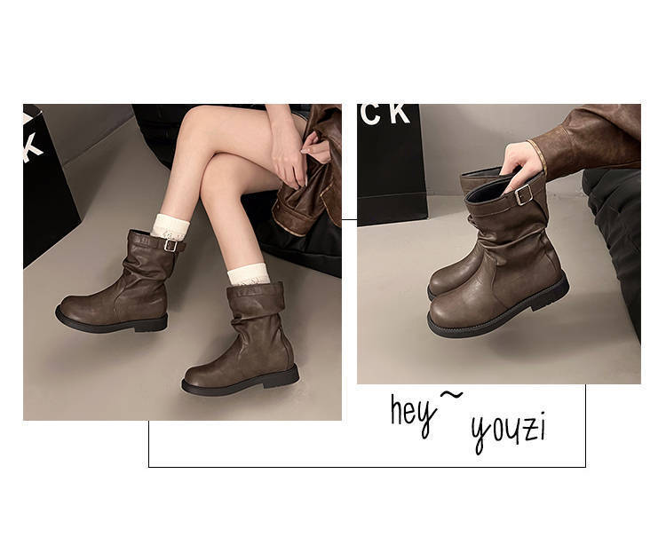 Botas Retro de Tacón Bajo hasta Media Pantorrilla Botas de Caballero Zapatos de Mujer 2025 Nuevo Otoño e Invierno Botines Apilados Arrugados Botas Martin