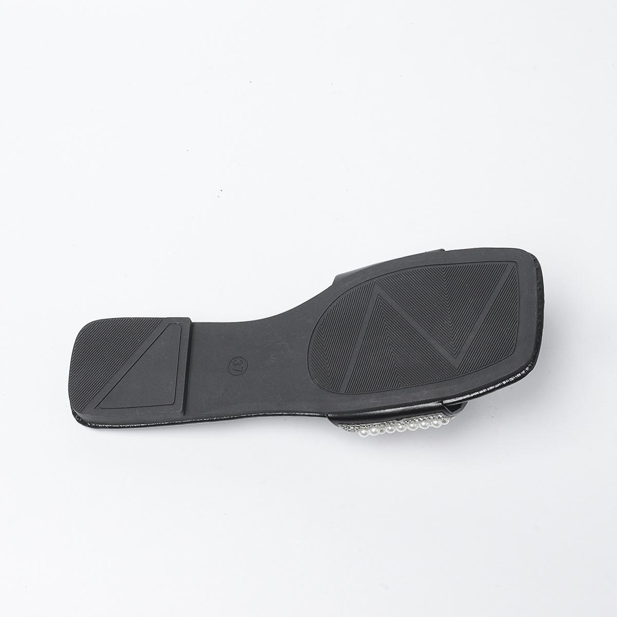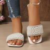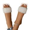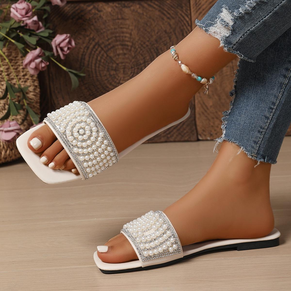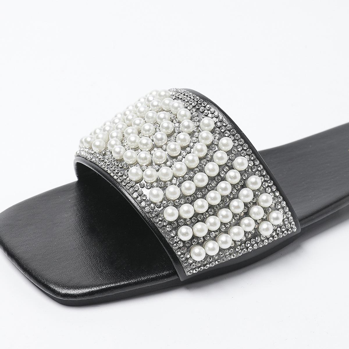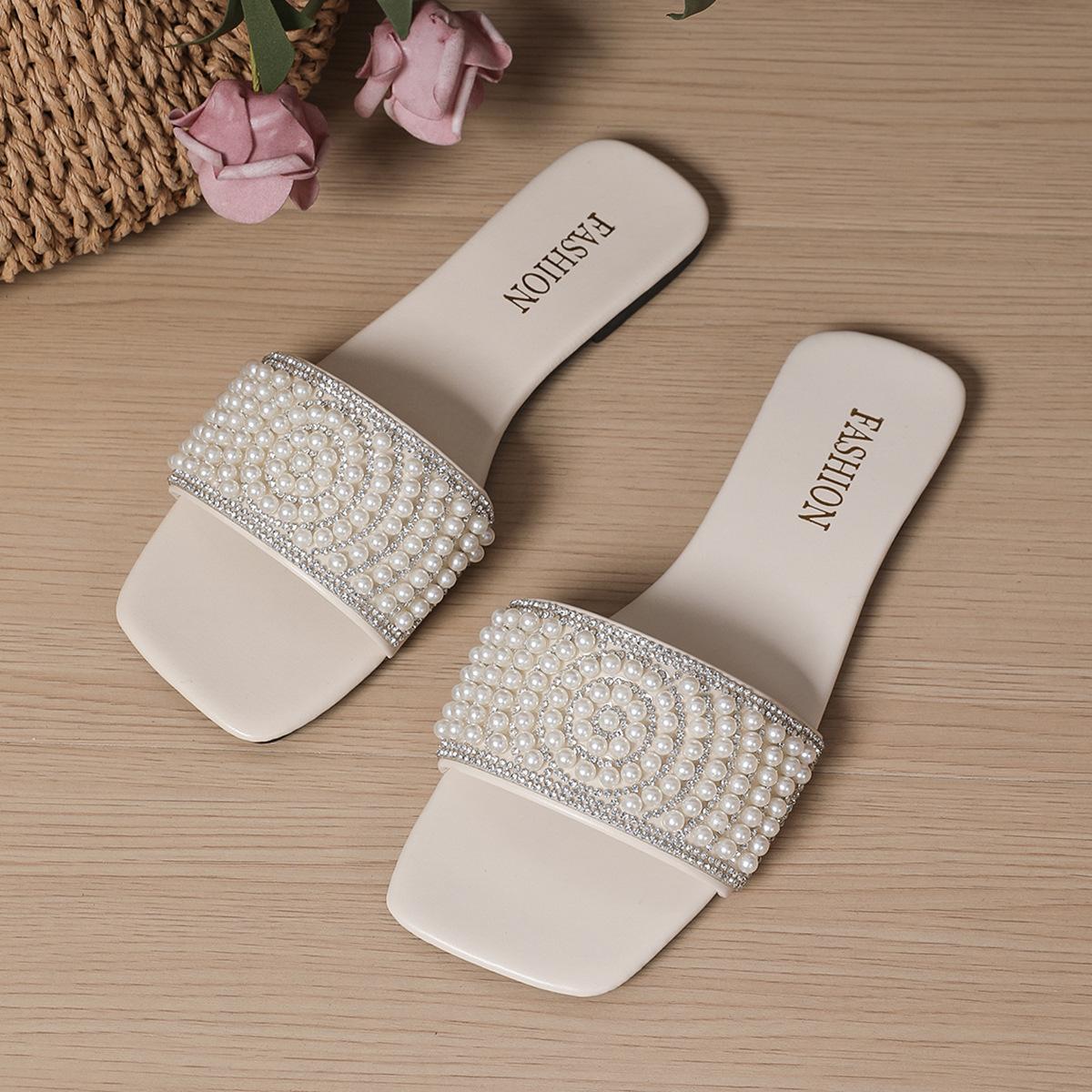 Chanclas planas de talla grande para comercio exterior europeo y americano con cuentas y una tira para mujer, de punta cuadrada, con diamantes de imitación, ligeras, para playa, sandalias, pantufla