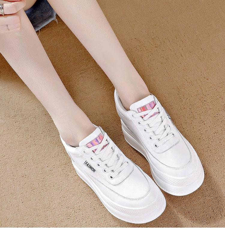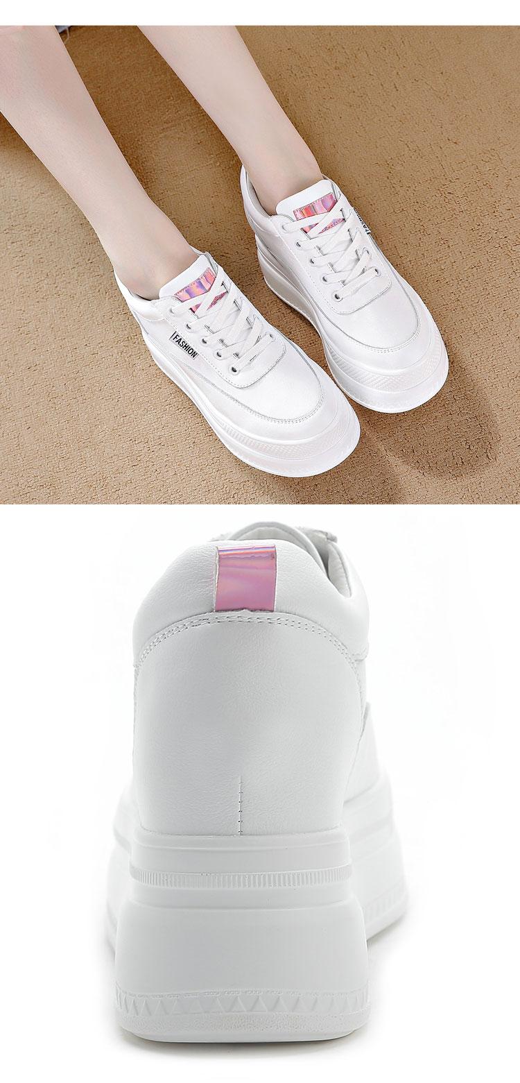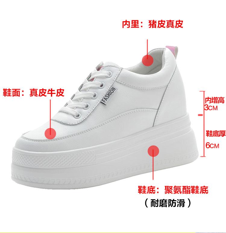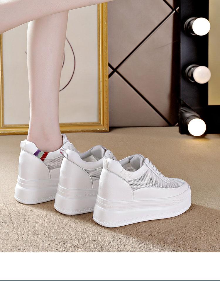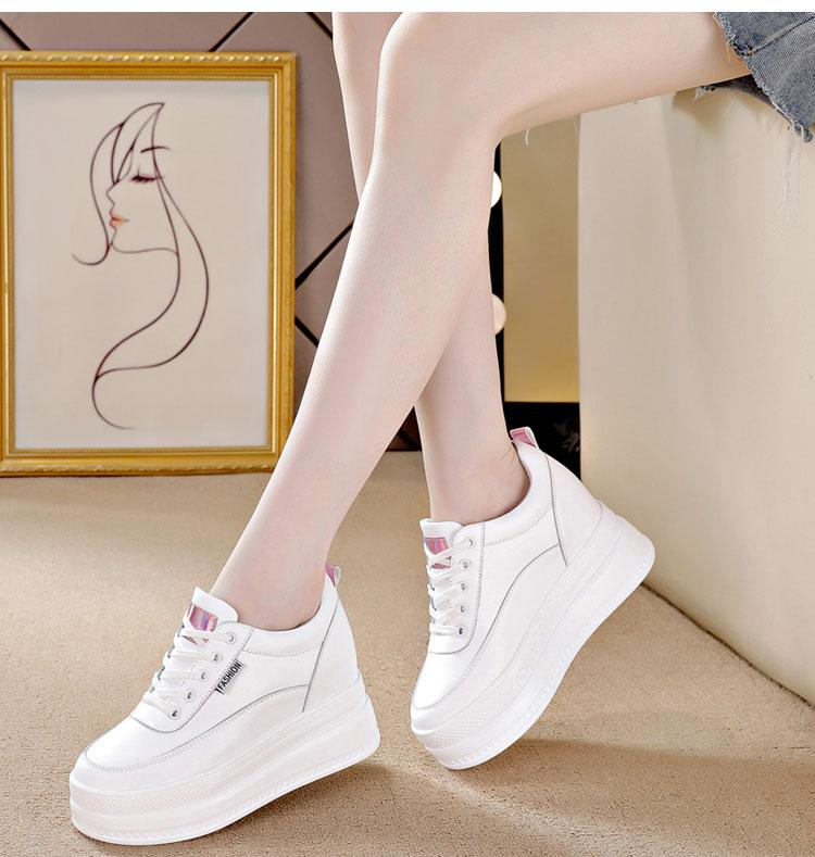 Zapatos de Mujer de Piel Genuina con Tacón Oculto Aumento de Altura de 10 cm Otoño Zapatos Individuales Zapatos de Plataforma Petite Zapatos de Suela Gruesa Zapatos Blancos Zapatos Individuales