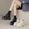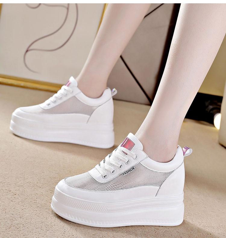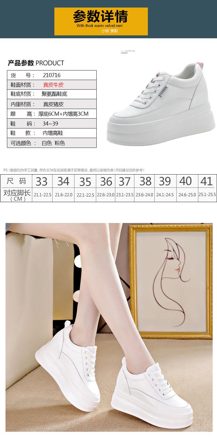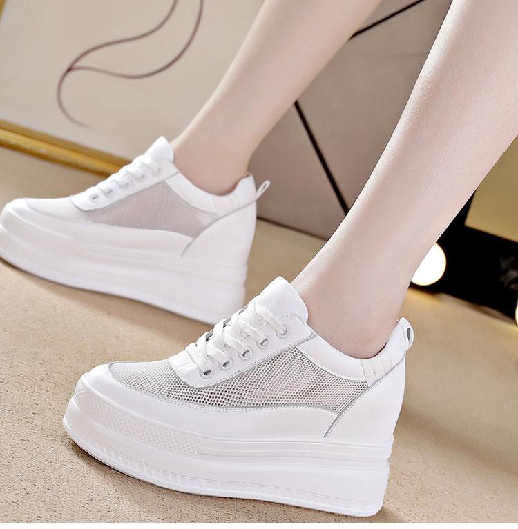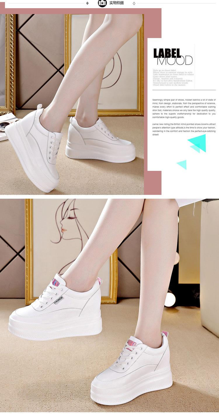 Zapatos de Mujer de Piel Genuina con Tacón Oculto Aumento de Altura de 10 cm Otoño Zapatos Individuales Zapatos de Plataforma Petite Zapatos de Suela Gruesa Zapatos Blancos Zapatos Individuales