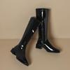 2025 Nuevas Botas Largas Negras Mujer Botas Altas Tacón Grueso Tacón Alto Elásticas Botas Ajustadas Mujer Sobre la Rodilla Botas de Jinete