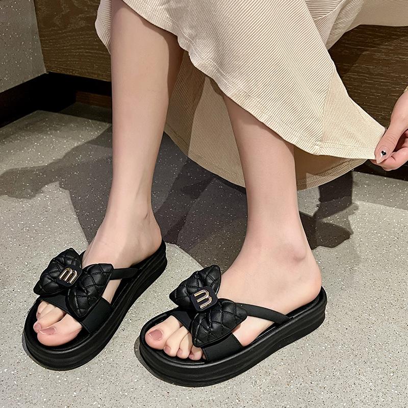 Pantuflas planas francesas con lazo de carta para exterior verano nueva moda planas estilo hada sandalias de punta abierta para mujer
