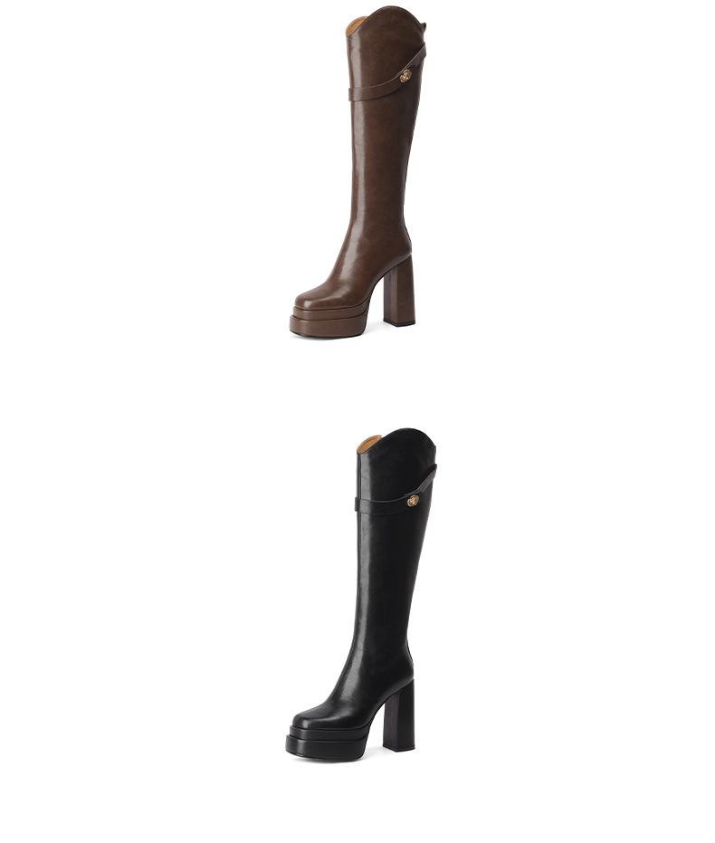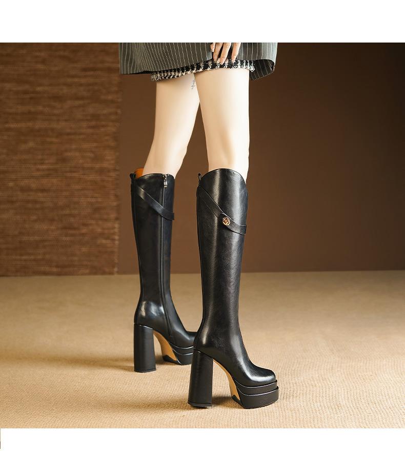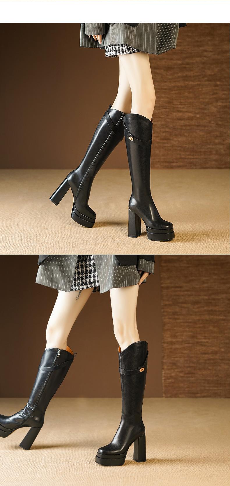 Compra Botas de Caballero, Botas por Encima de la Rodilla para Mujer, Tacones Gruesos, Puntas Cuadradas, Suelas Gruesas, Plataformas Impermeables, Tacones Altos, Botas Adelgazantes, Modernas y No Cansan los Pies al por mayor en Joom.pro