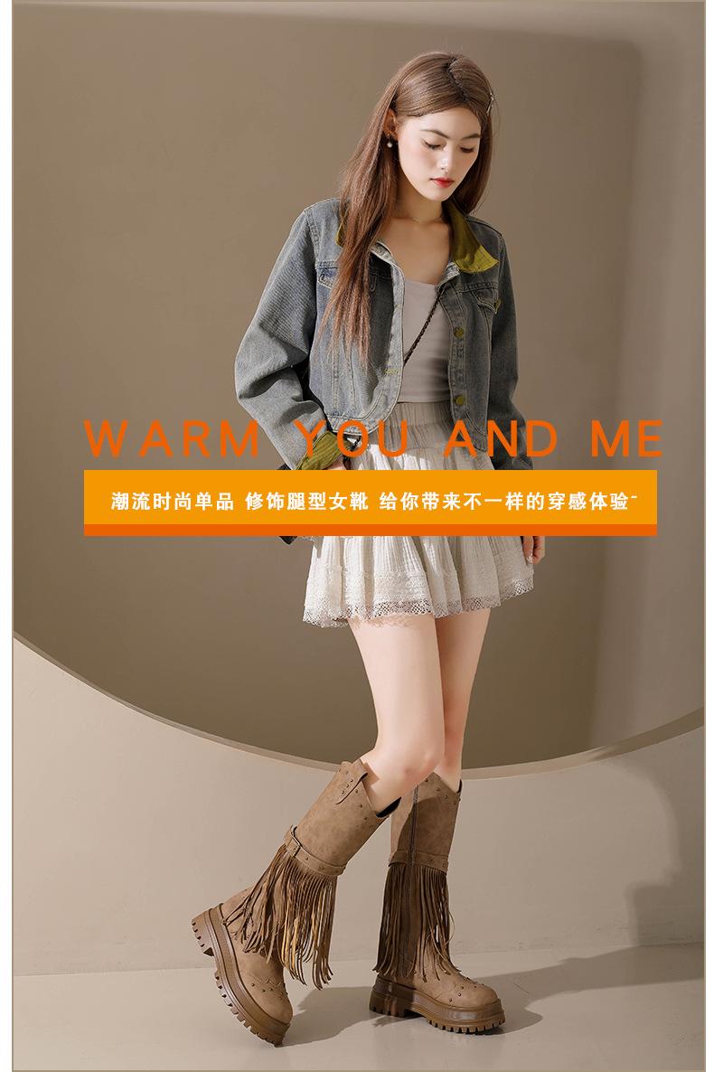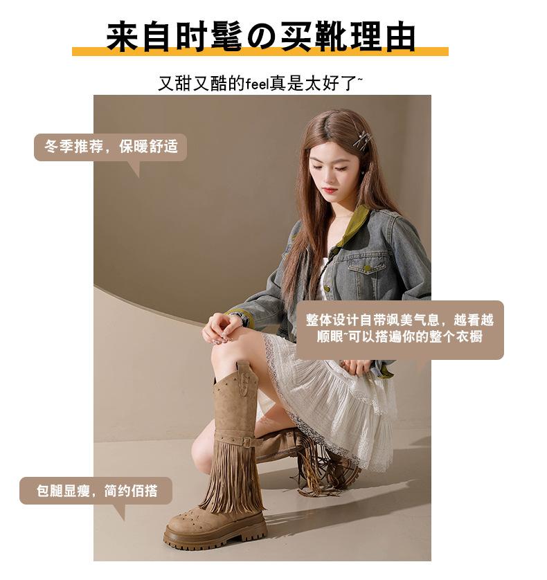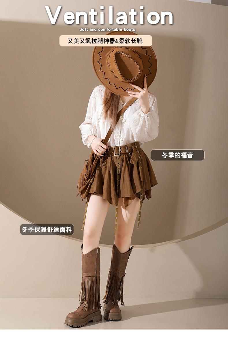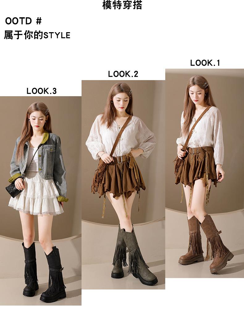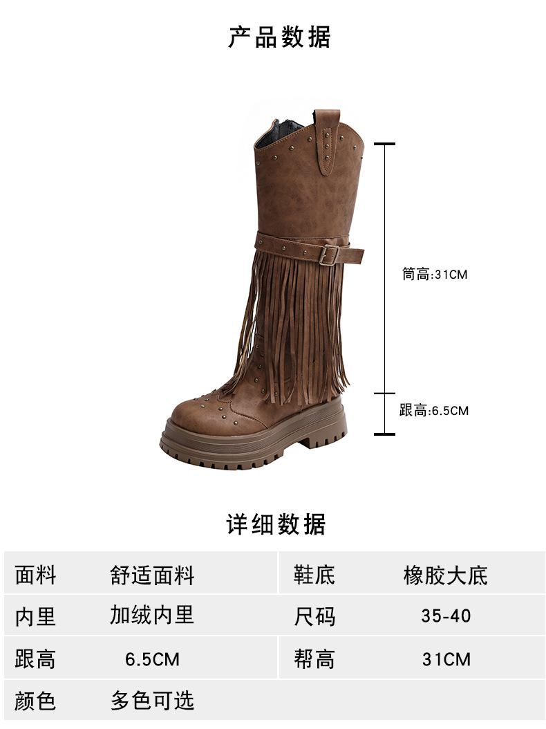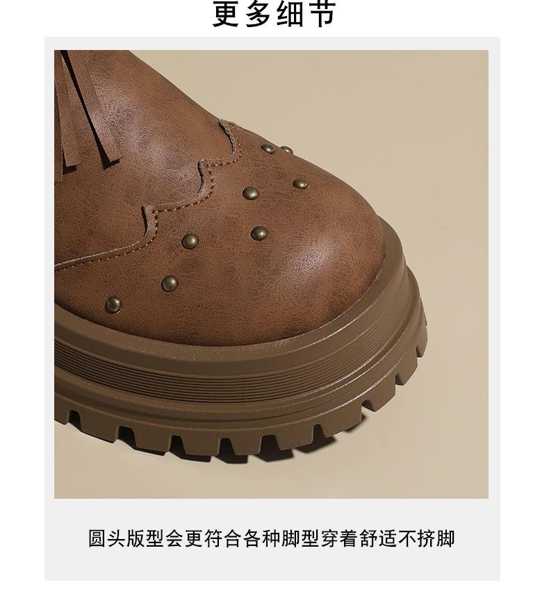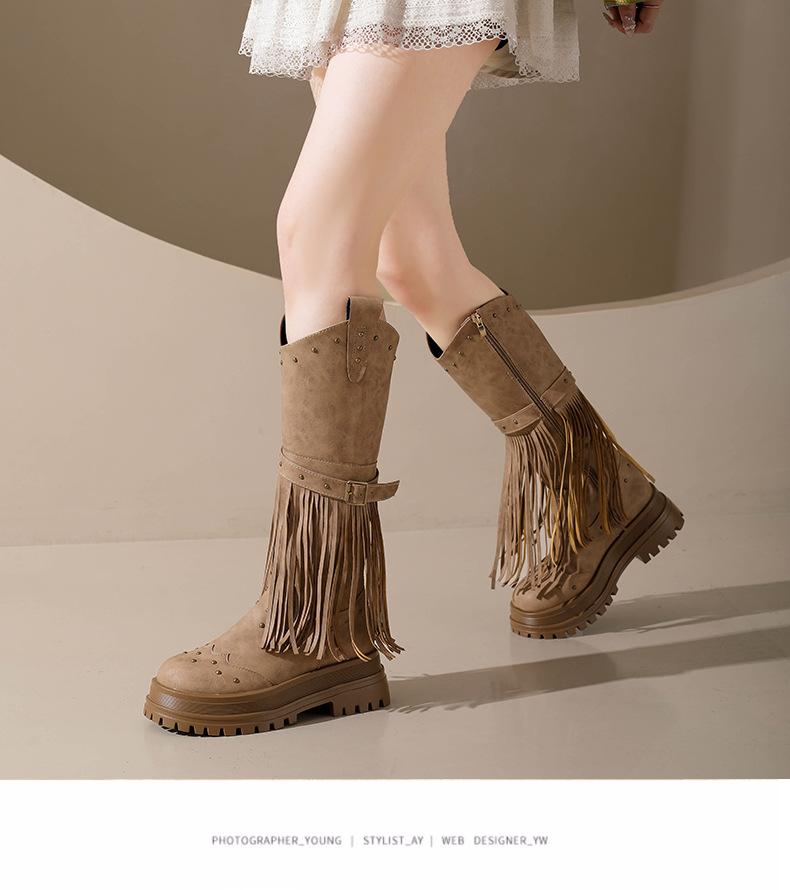 Botas con Flecos Retro Europeas y Americanas 2025 Otoño/Invierno Nuevas Botas Altas con Hebilla Tachonada Botas de Caballero Modernas y Versátiles