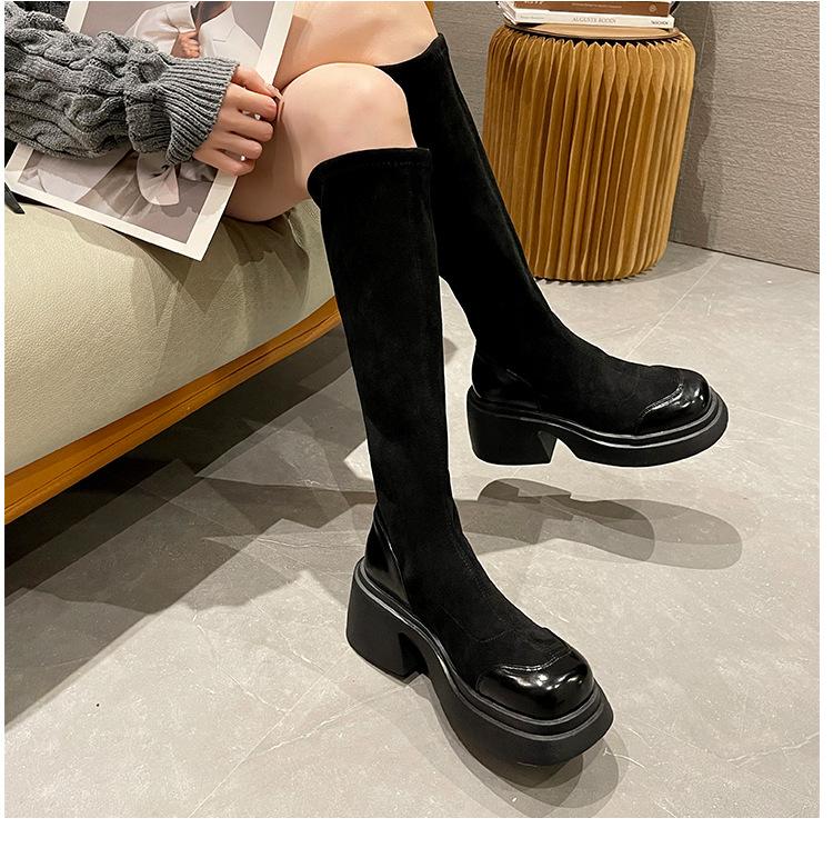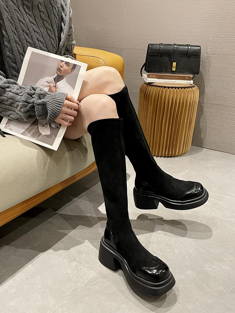 Botas Altas hasta la Rodilla para Mujer 2025 Nuevo Otoño y Primavera Gamuza Francesa Botas Largas Vaqueras Slim de Moda para Mujer