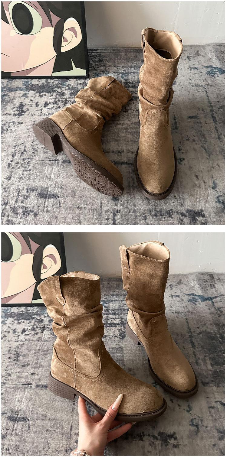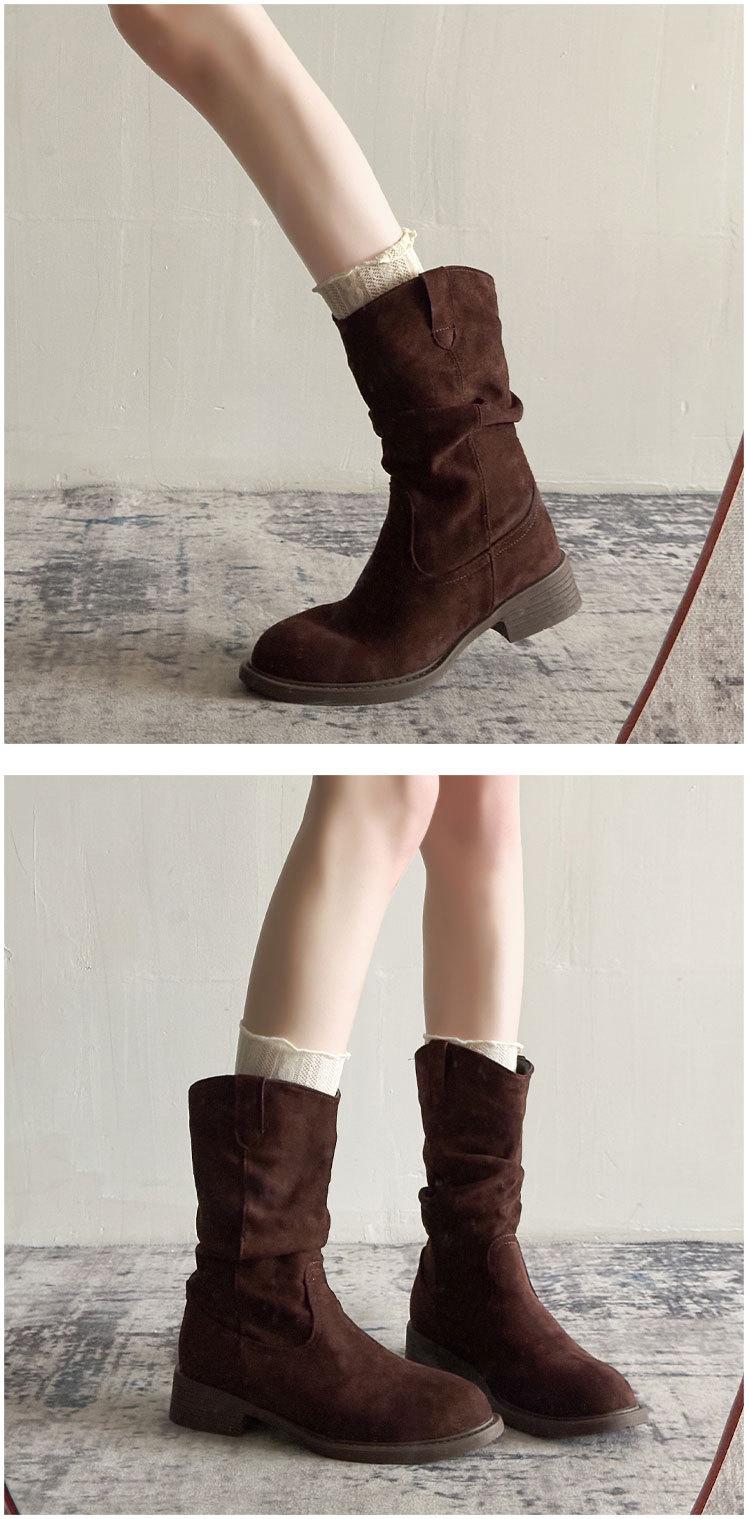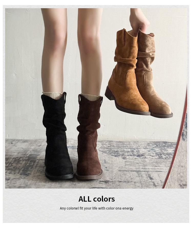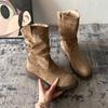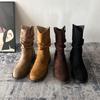 Botas Martin Meilaide para mujer 2025 otoño e invierno nuevo estilo caliente de media caña con suela gruesa vaqueras occidentales botines holgados tipo caballero