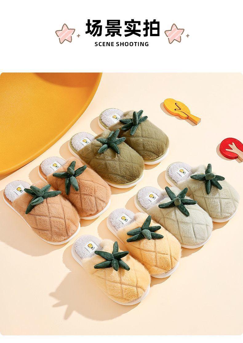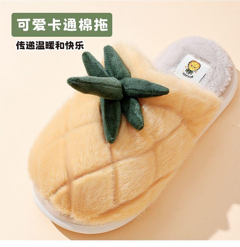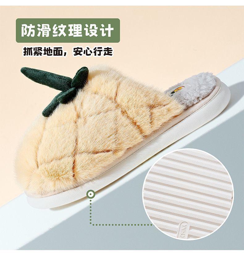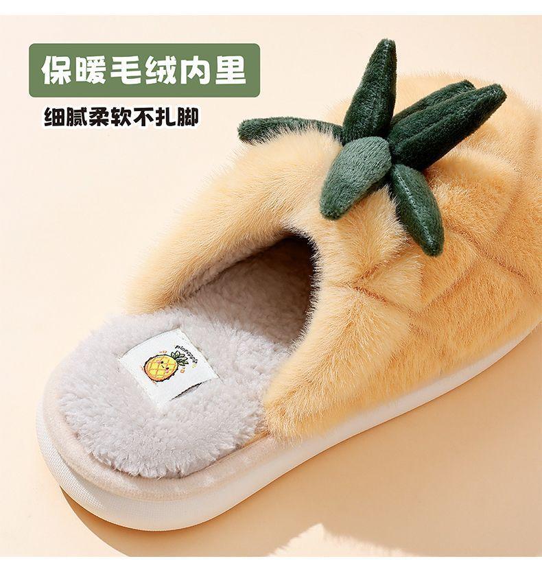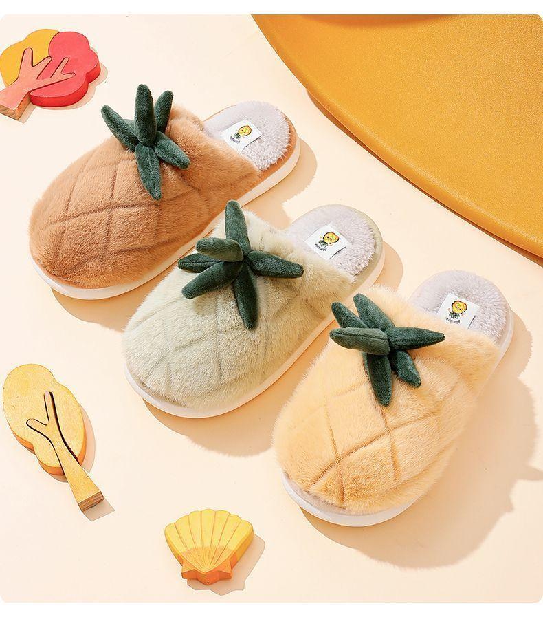 Pantuflas de Algodón de Piña para Pareja para Hombre y Mujer Dormitorio Hogar Cómodas Cálidas Invierno Zapatos Peludos para Dama Antideslizantes Hogar Invierno