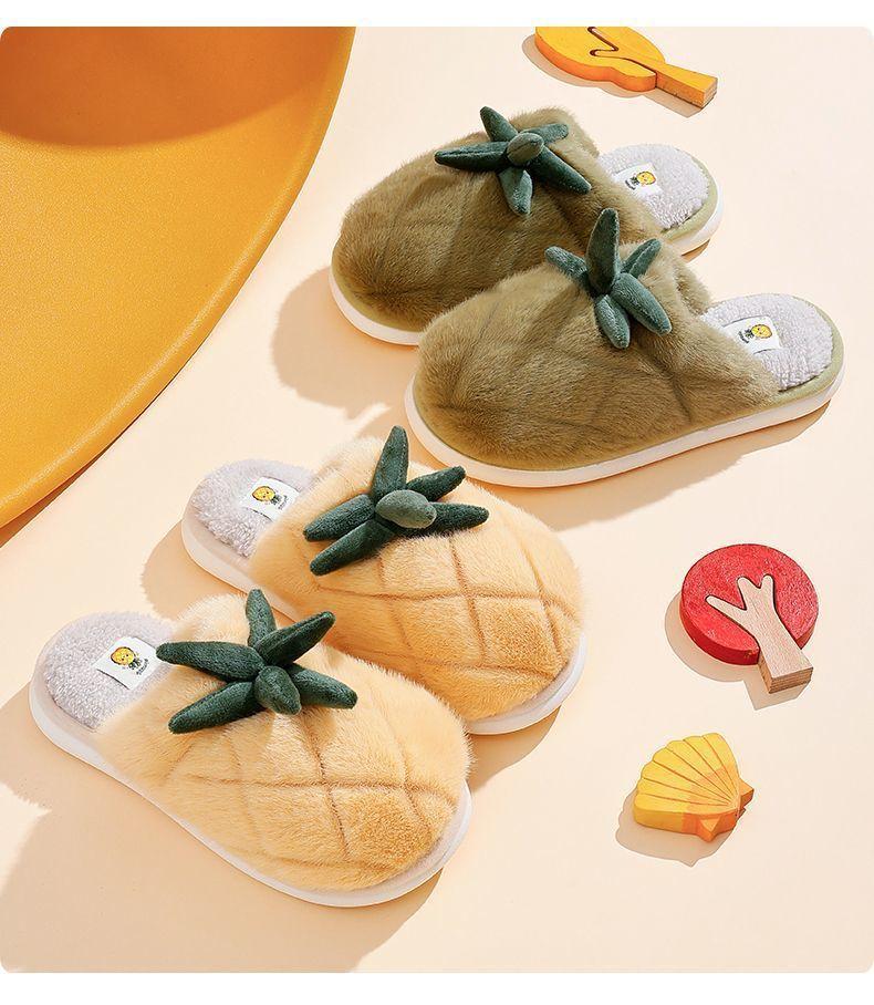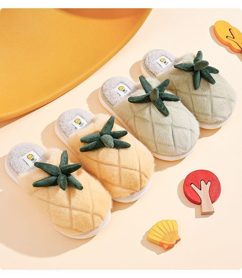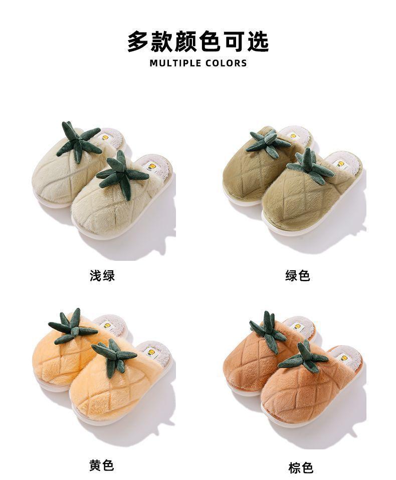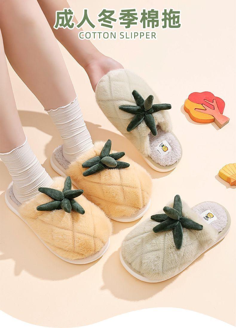 Pantuflas de Algodón de Piña para Pareja para Hombre y Mujer Dormitorio Hogar Cómodas Cálidas Invierno Zapatos Peludos para Dama Antideslizantes Hogar Invierno