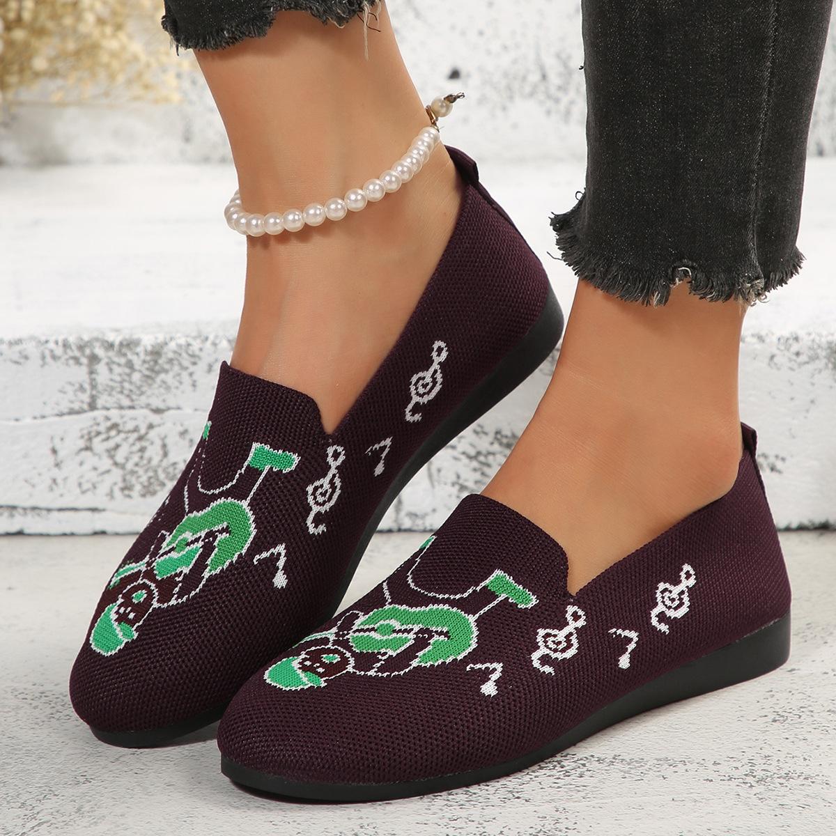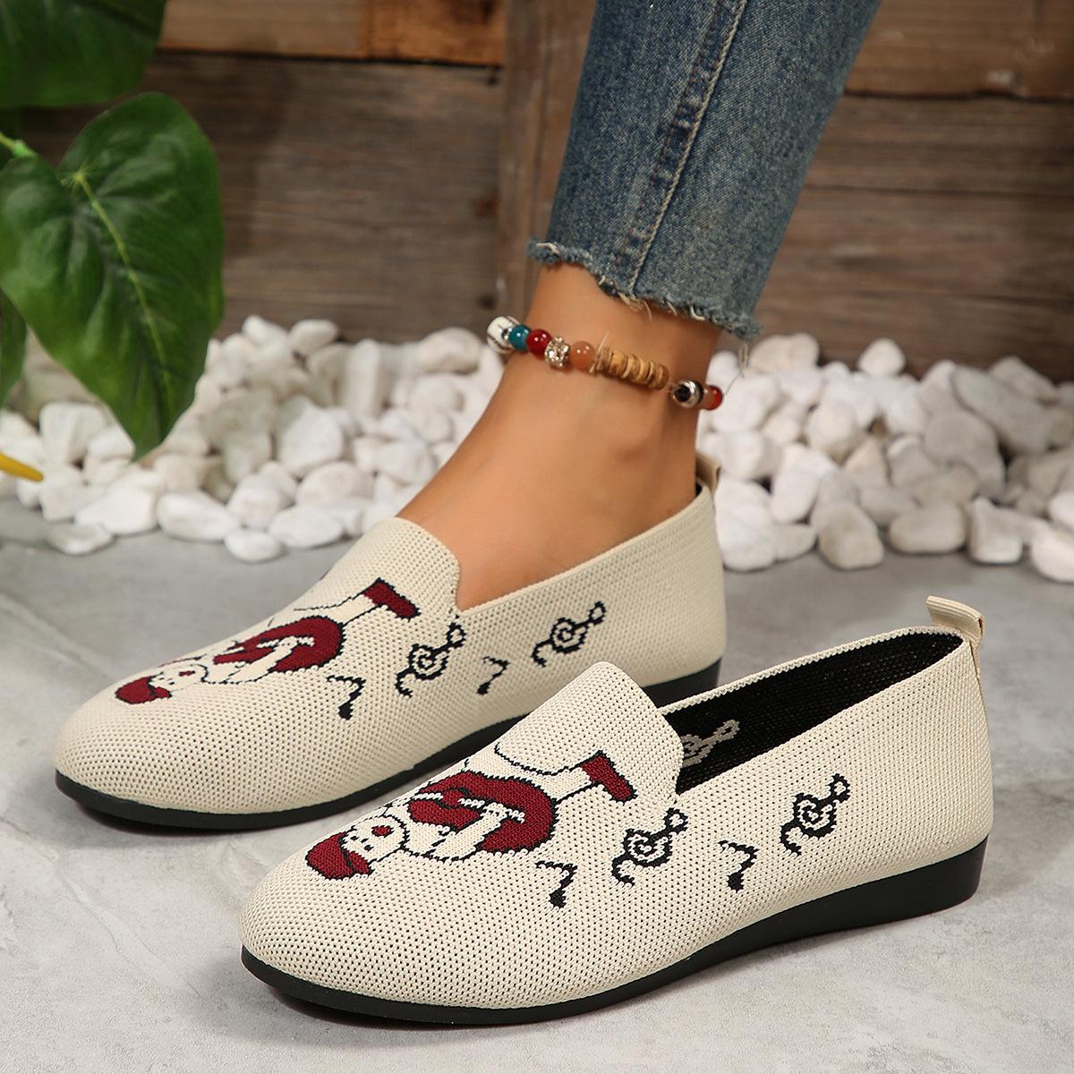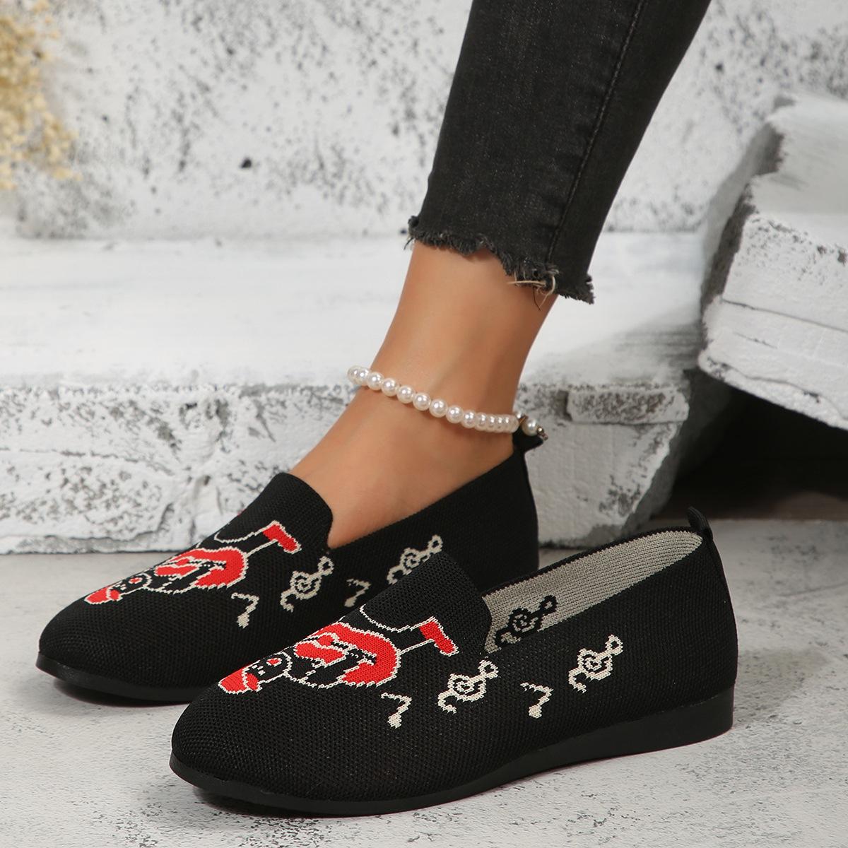 Zapatos planos de punto Flyknit de estilo nuevo transfronterizo para mujer, zapatos de trabajo casuales bordados transpirables sin cordones, suministro de Wish