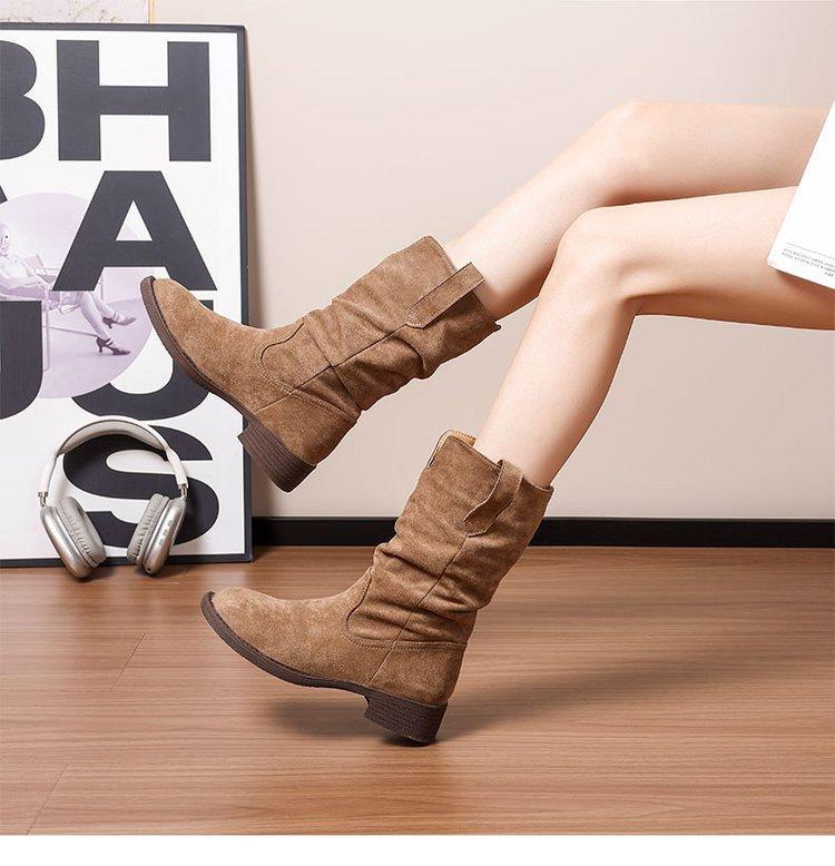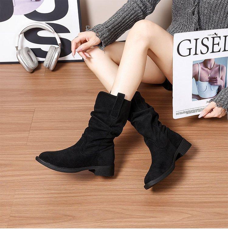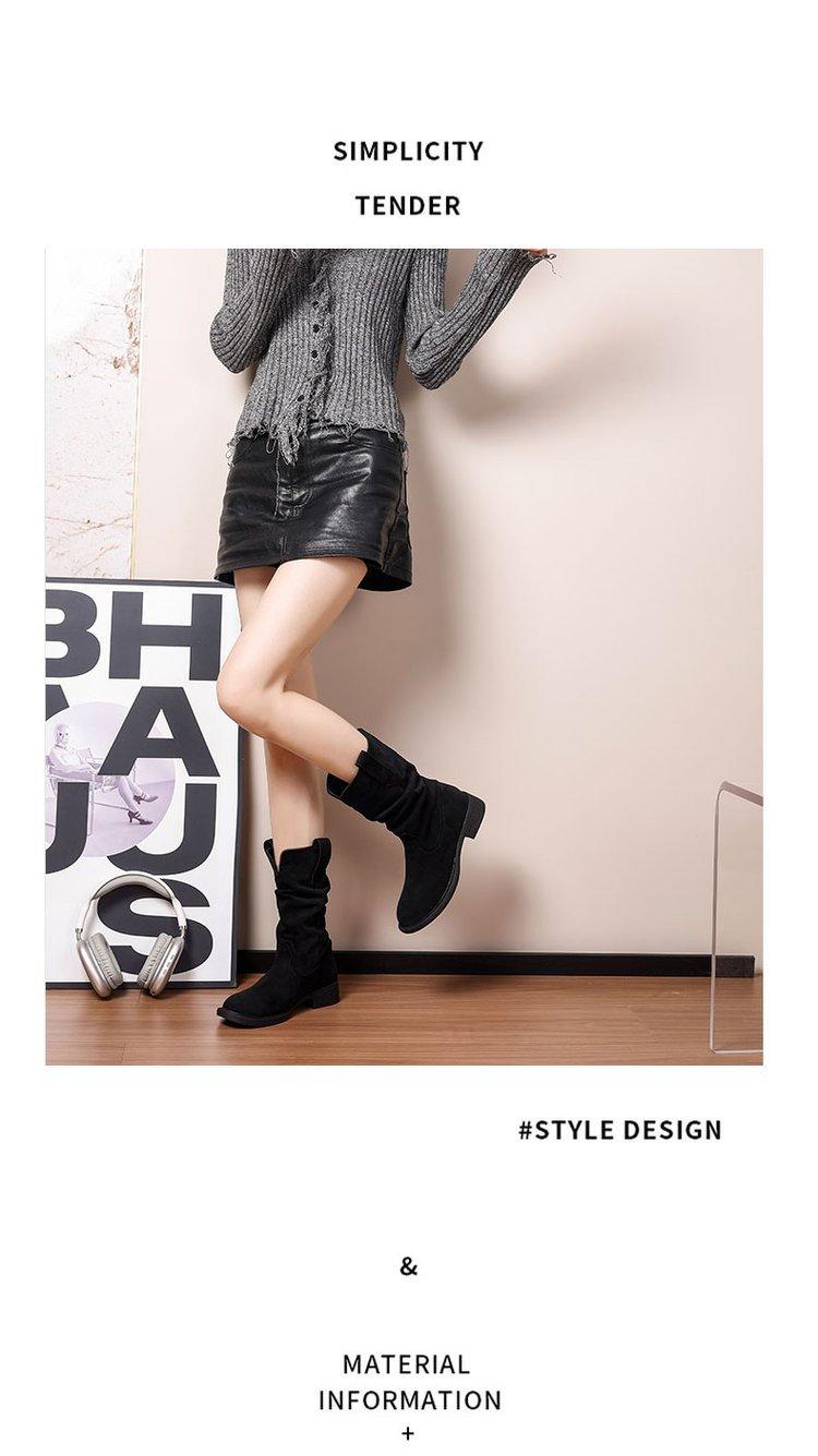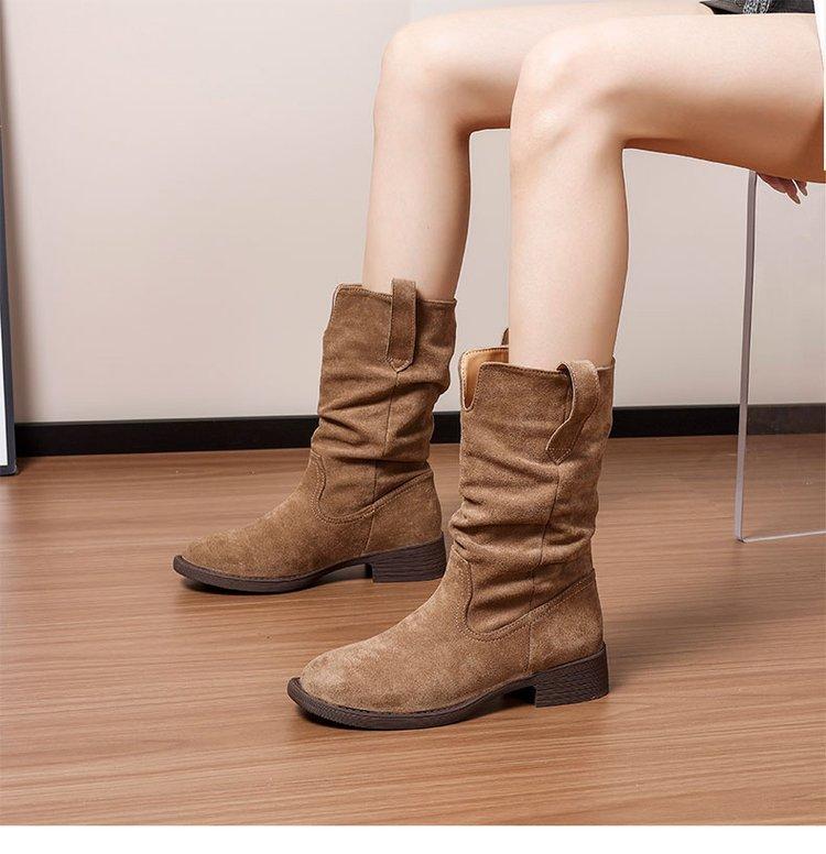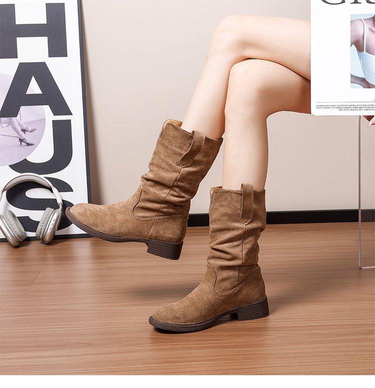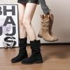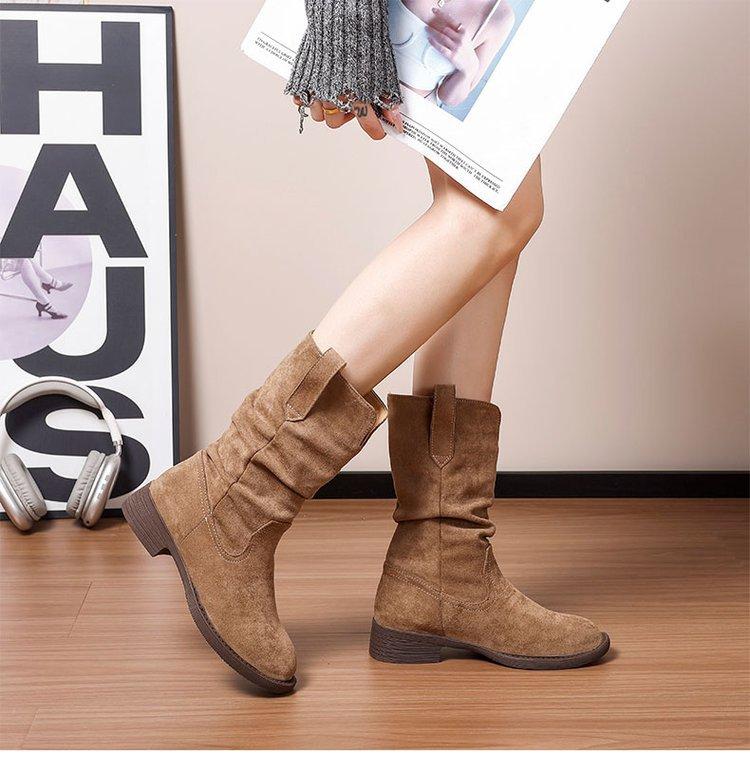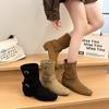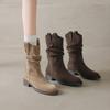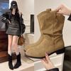Botines de Tobillo para Mujer Meilade 2025 Otoño/Invierno Nuevos Botas Martin Retro Tacón Grueso Apilado Botas Vaqueras Occidentales para Mujer
