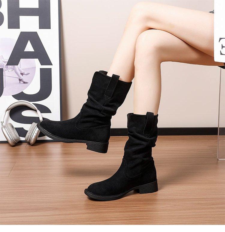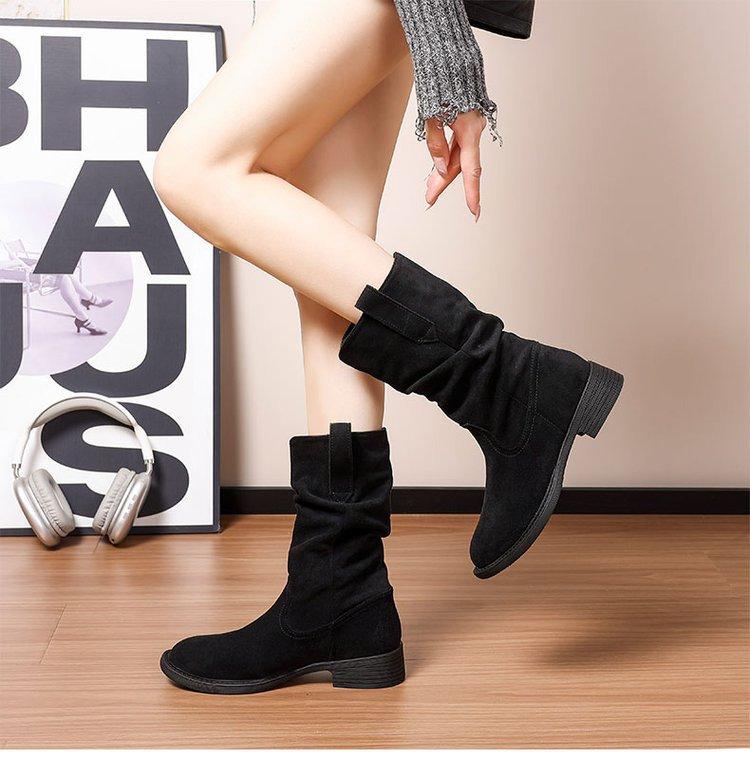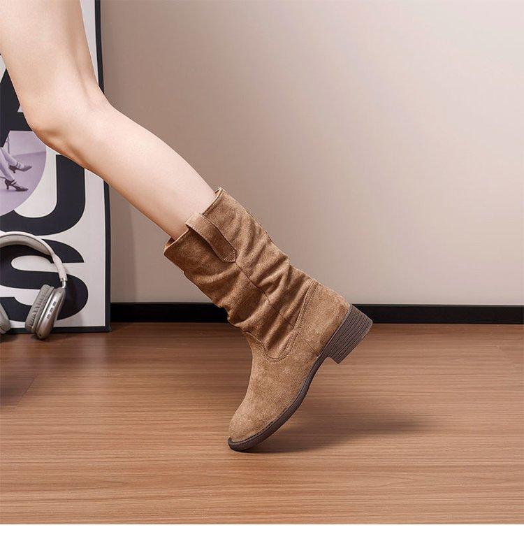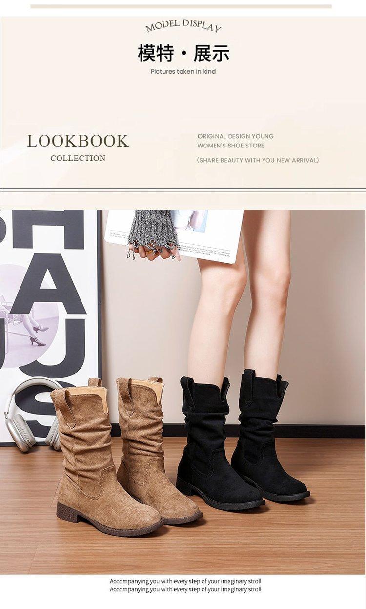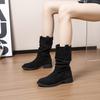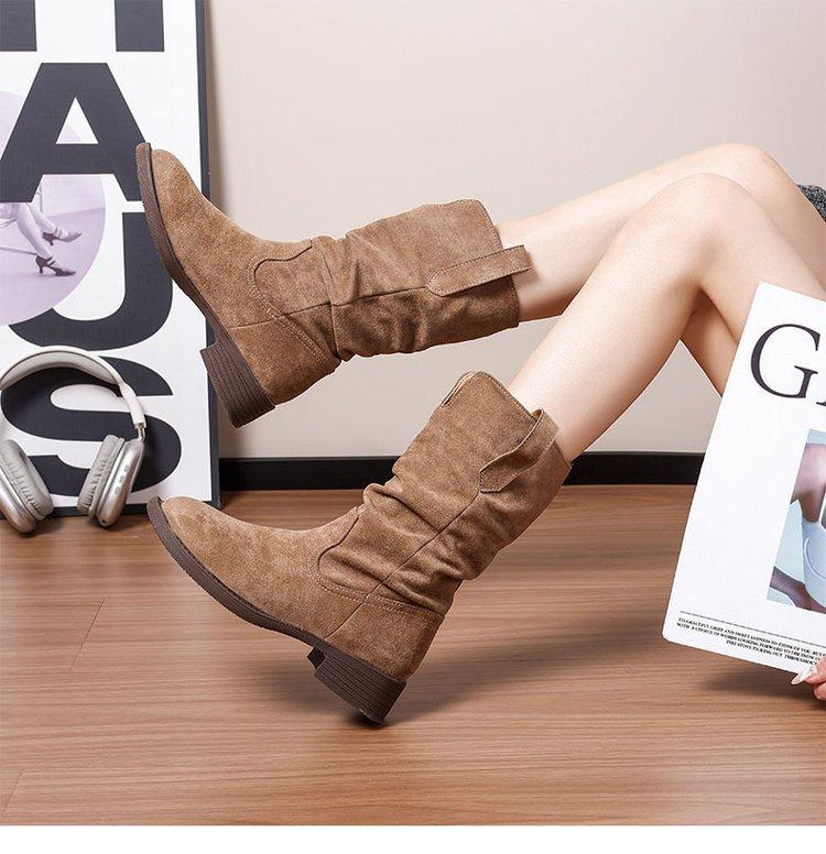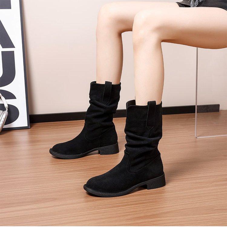 Botines de Tobillo para Mujer Meilade 2025 Otoño/Invierno Nuevos Botas Martin Retro Tacón Grueso Apilado Botas Vaqueras Occidentales para Mujer