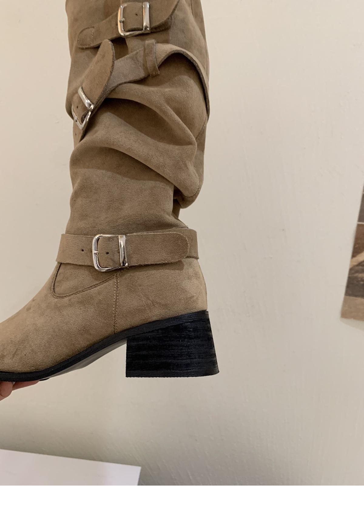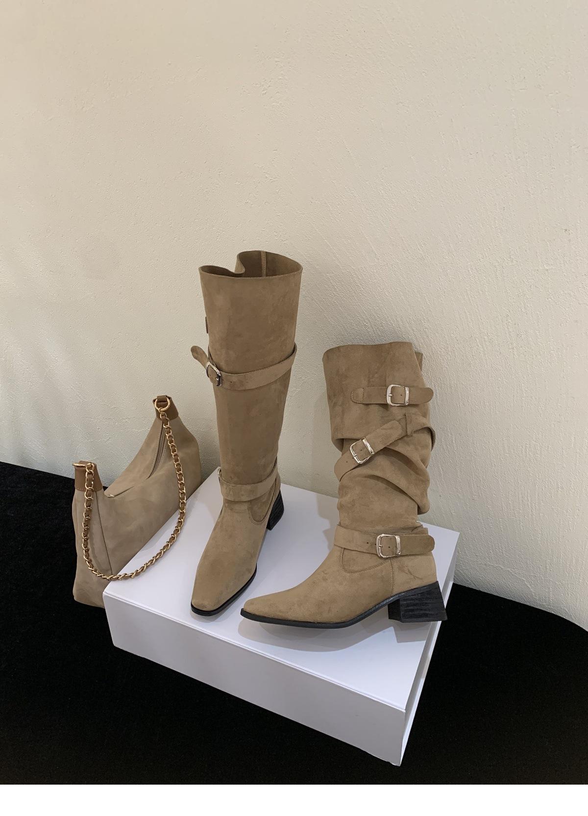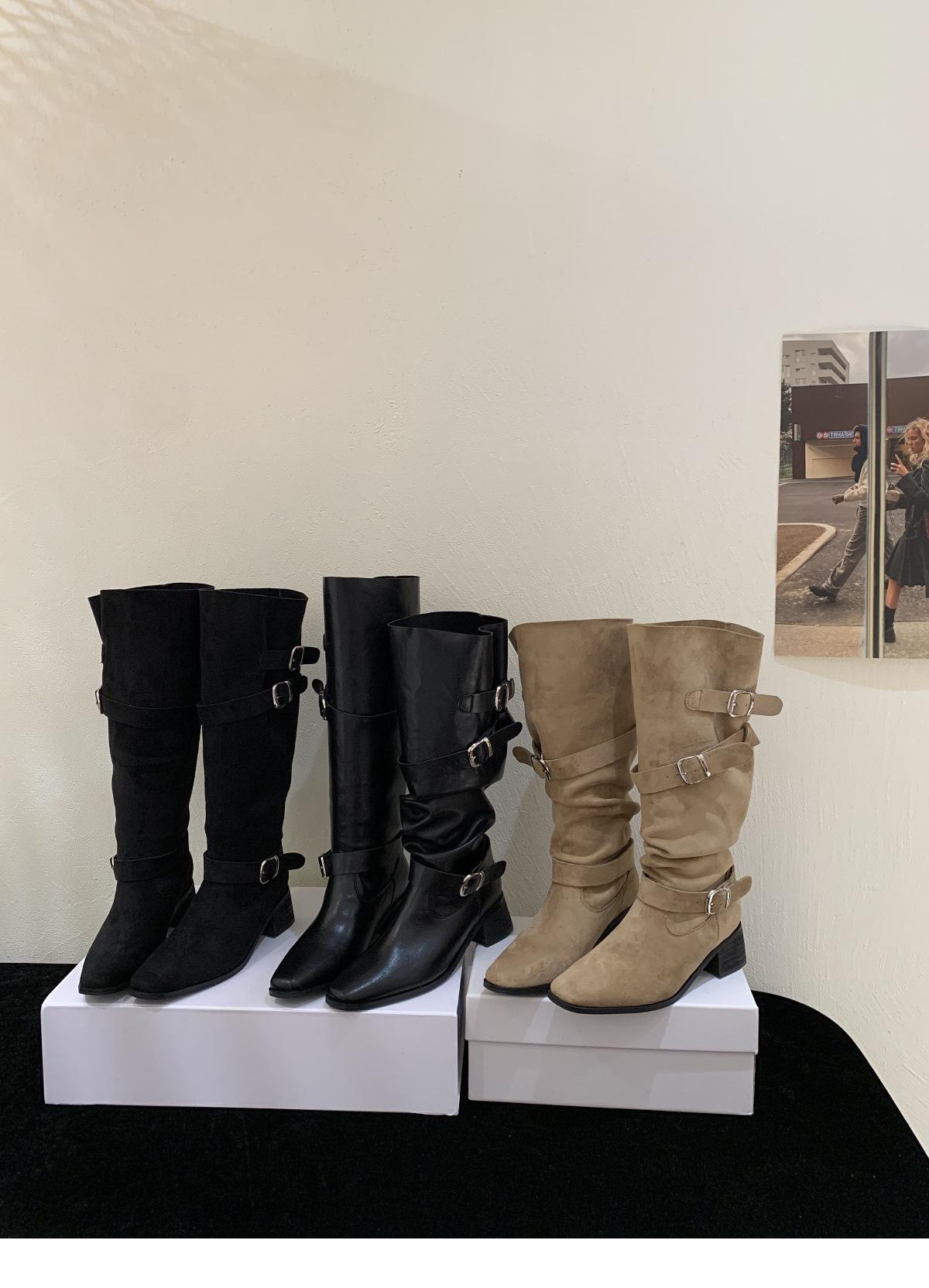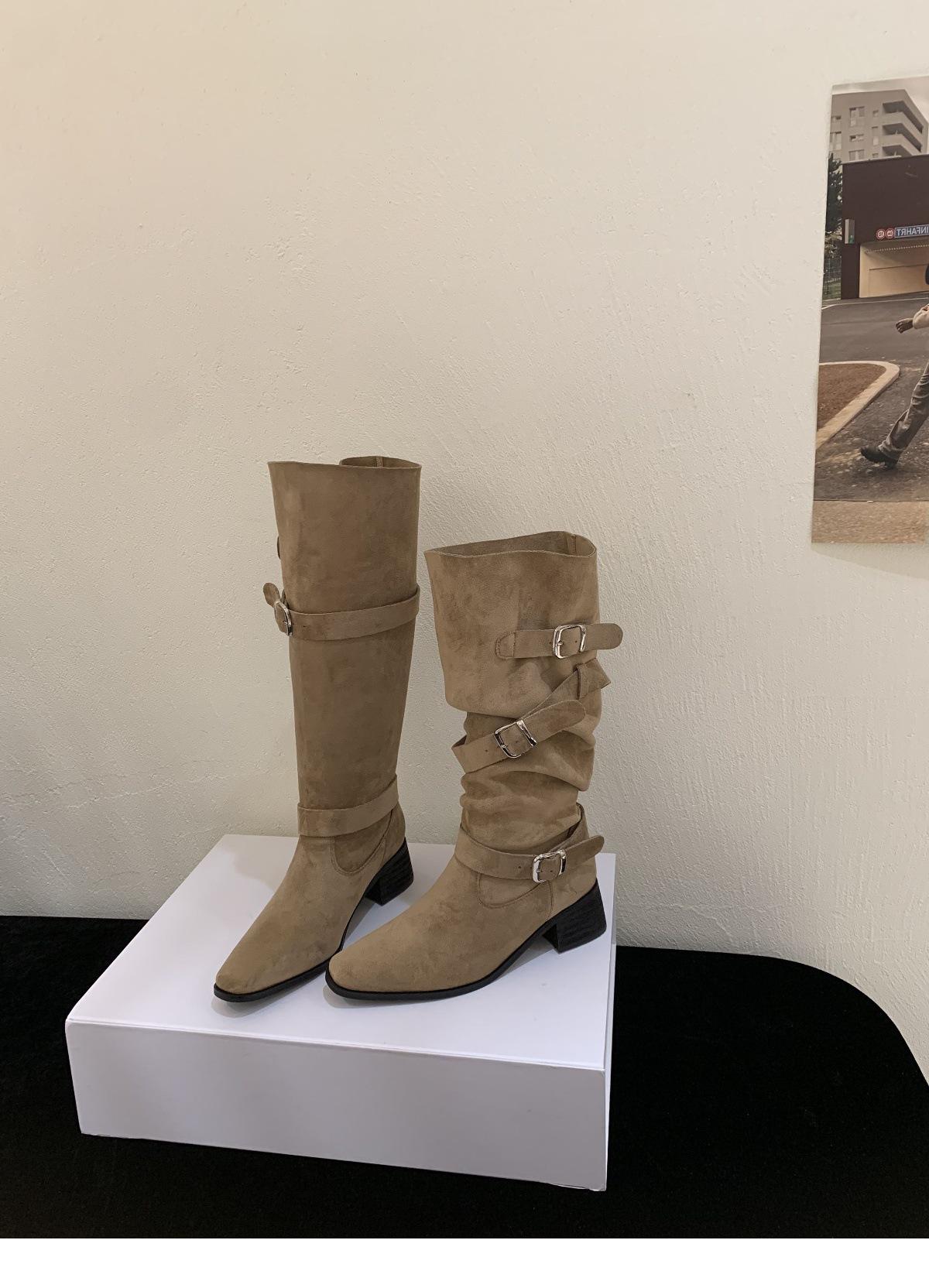 Botas Vaqueras Nuevas 2025 para Mujer Botas Largas por Encima de la Rodilla Botas Apiladas Tacón Grueso Tacón Alto Adelgazantes Caña Larga Botas de Jinete