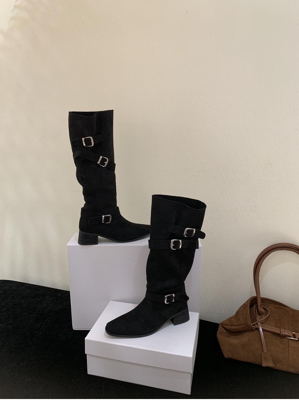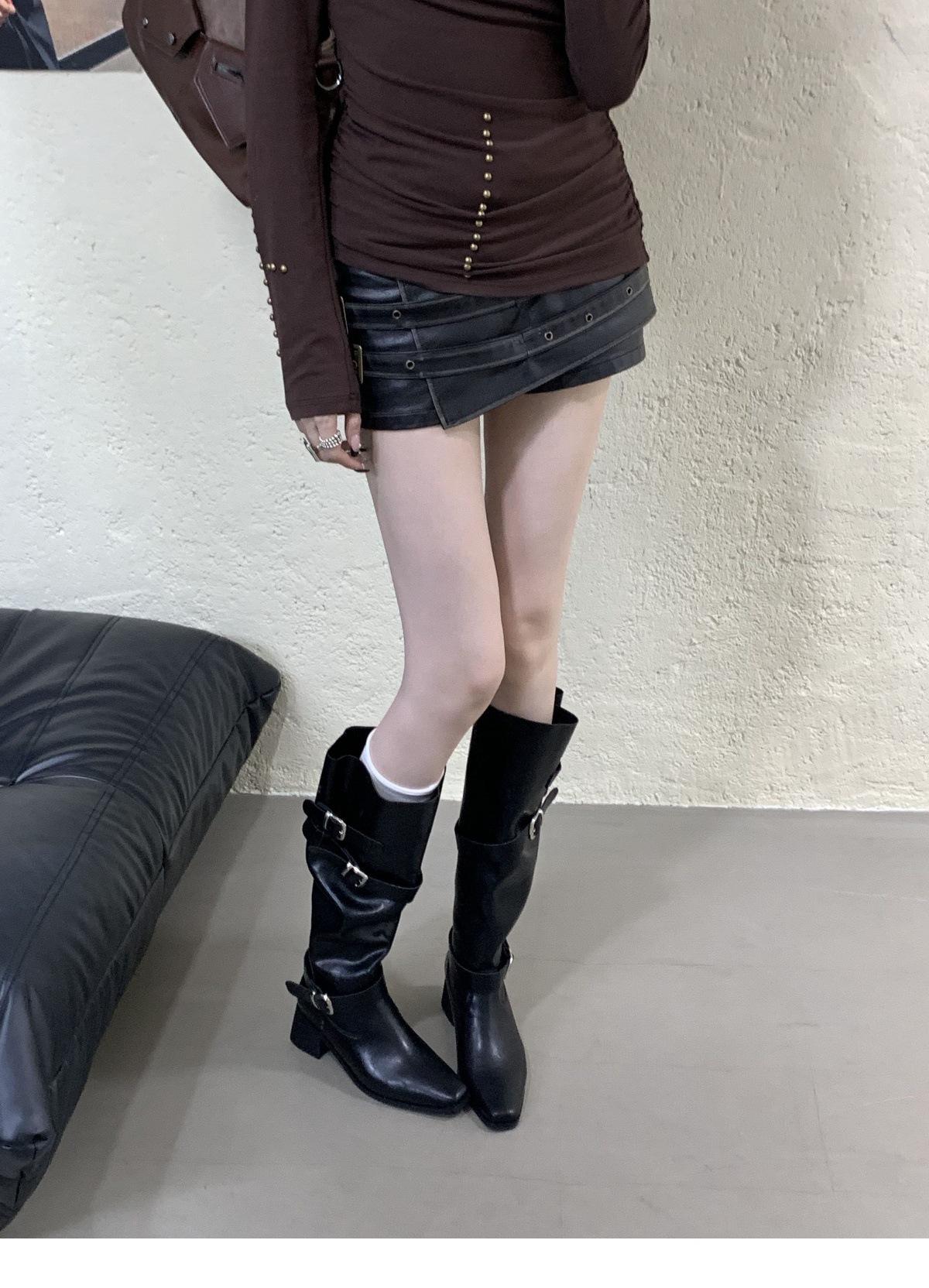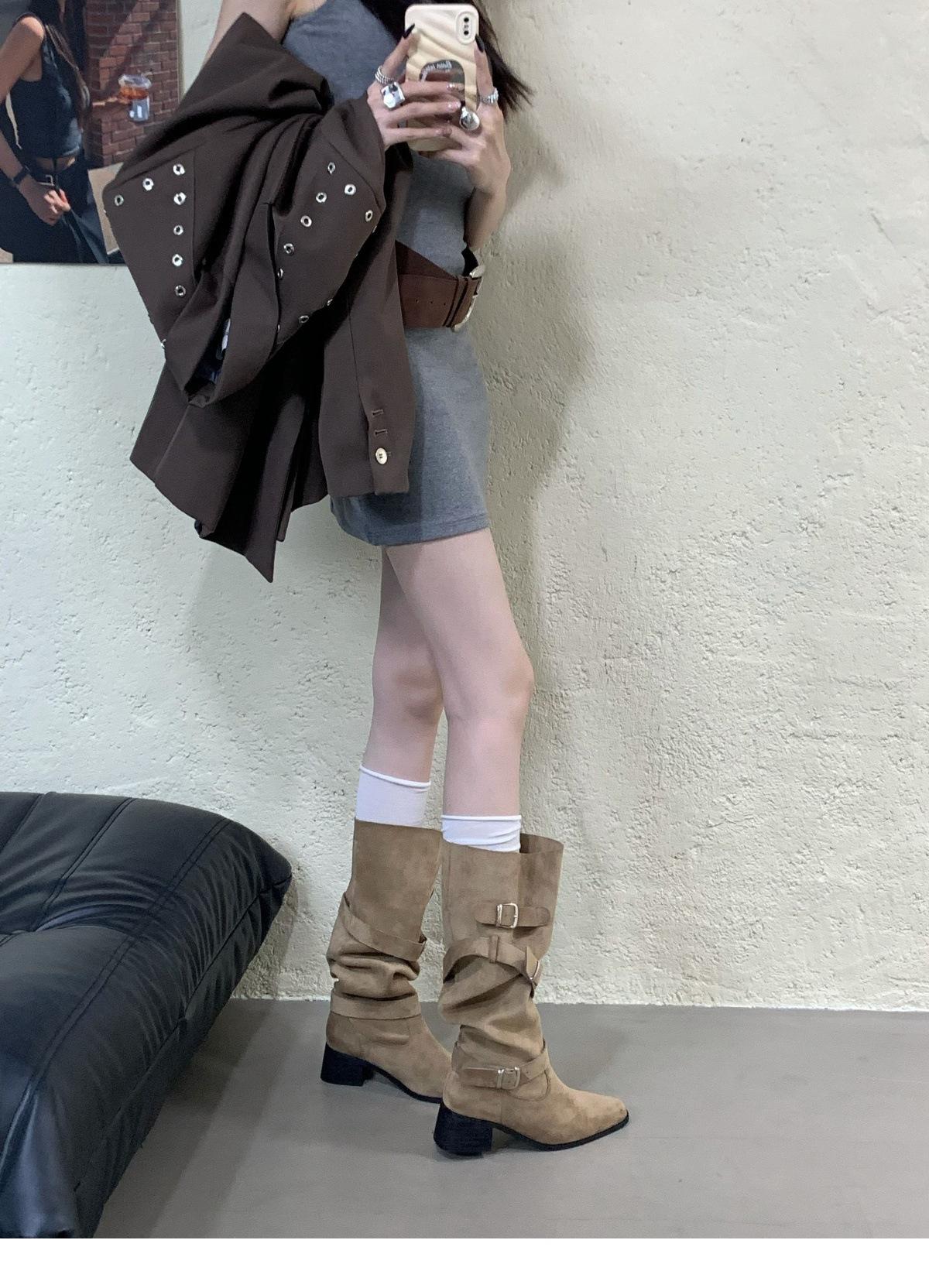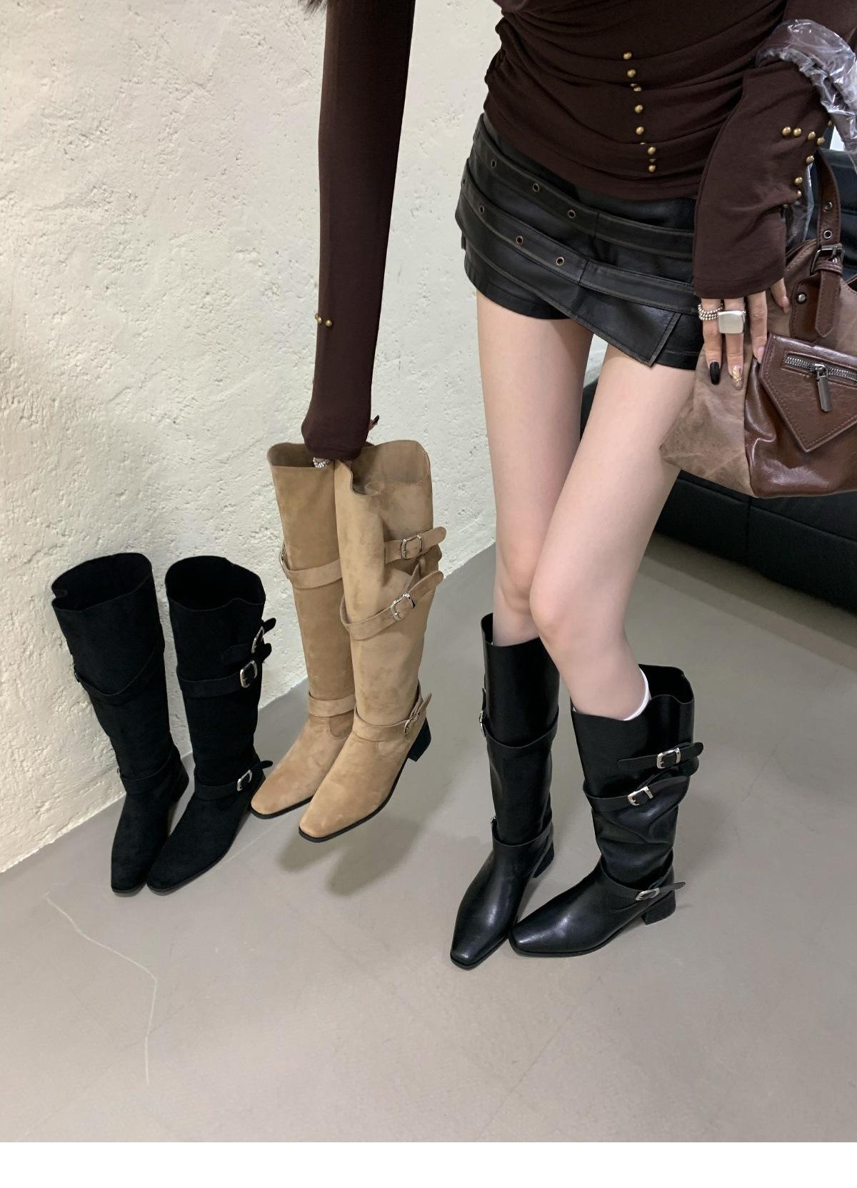 Botas Vaqueras Nuevas 2025 para Mujer Botas Largas por Encima de la Rodilla Botas Apiladas Tacón Grueso Tacón Alto Adelgazantes Caña Larga Botas de Jinete