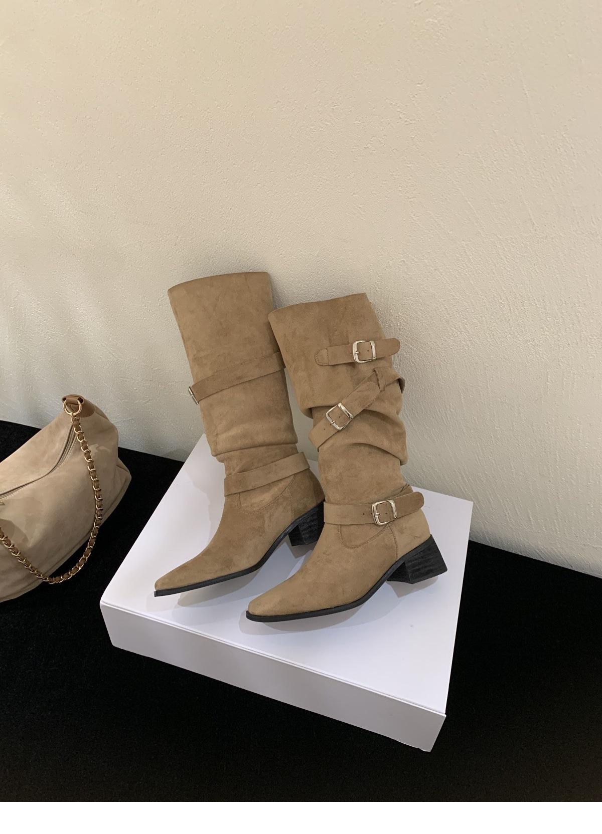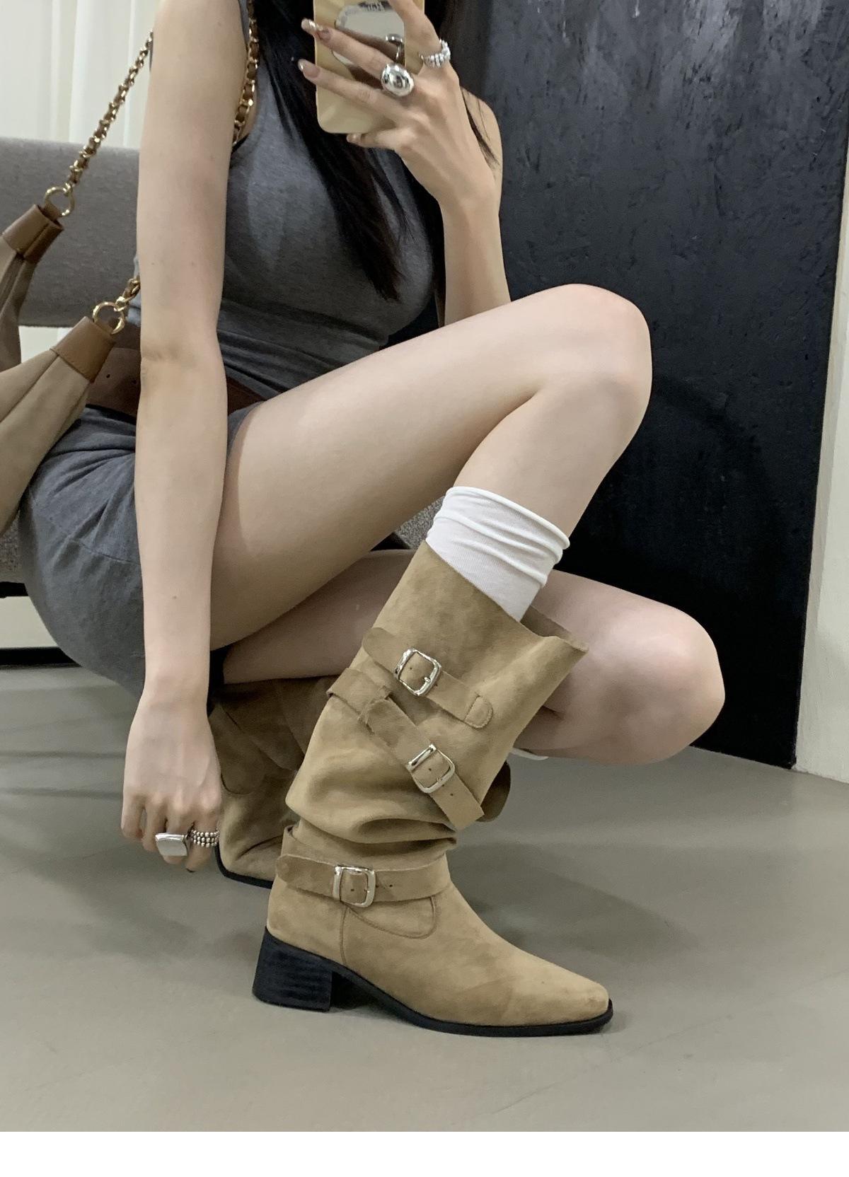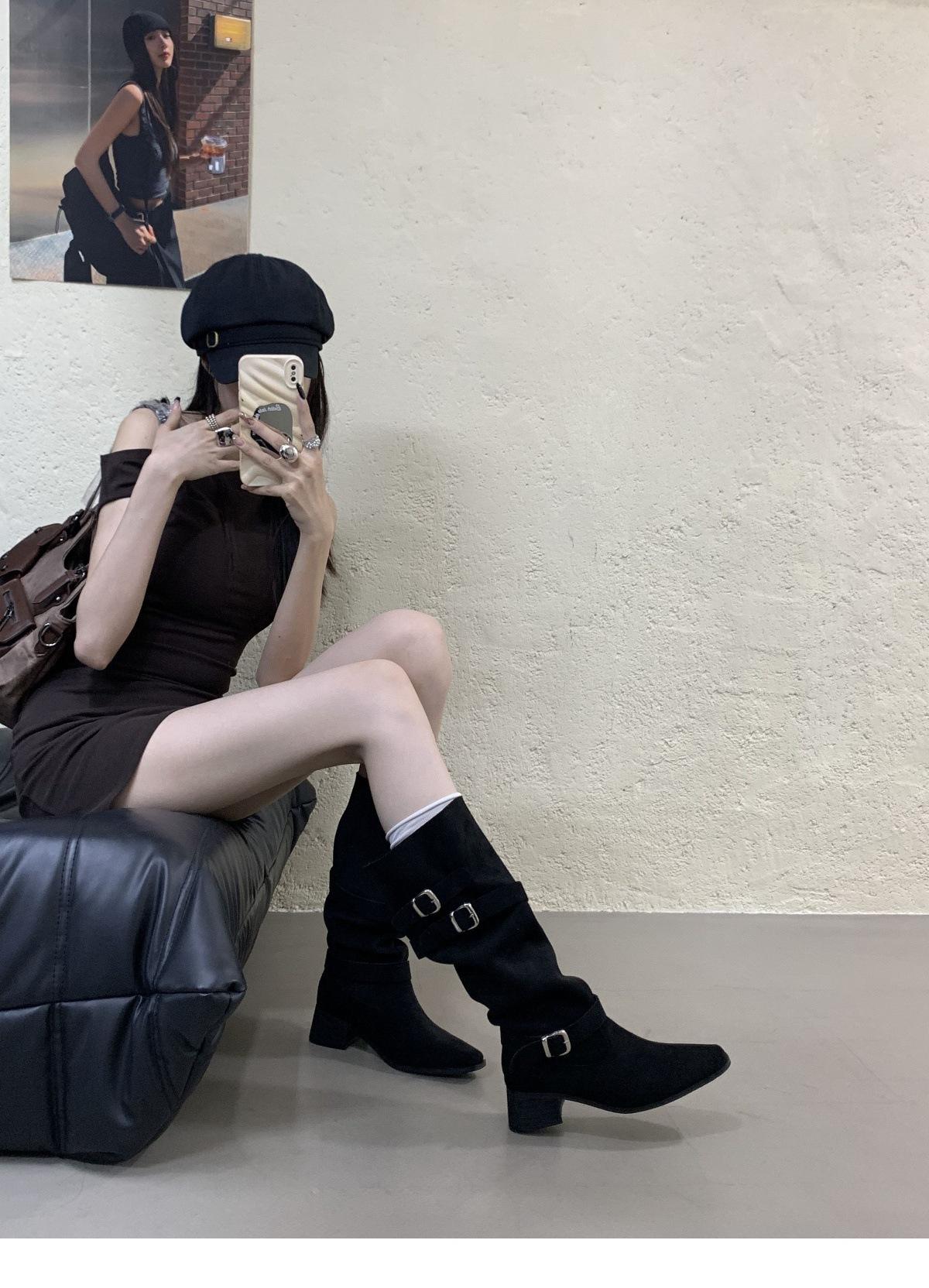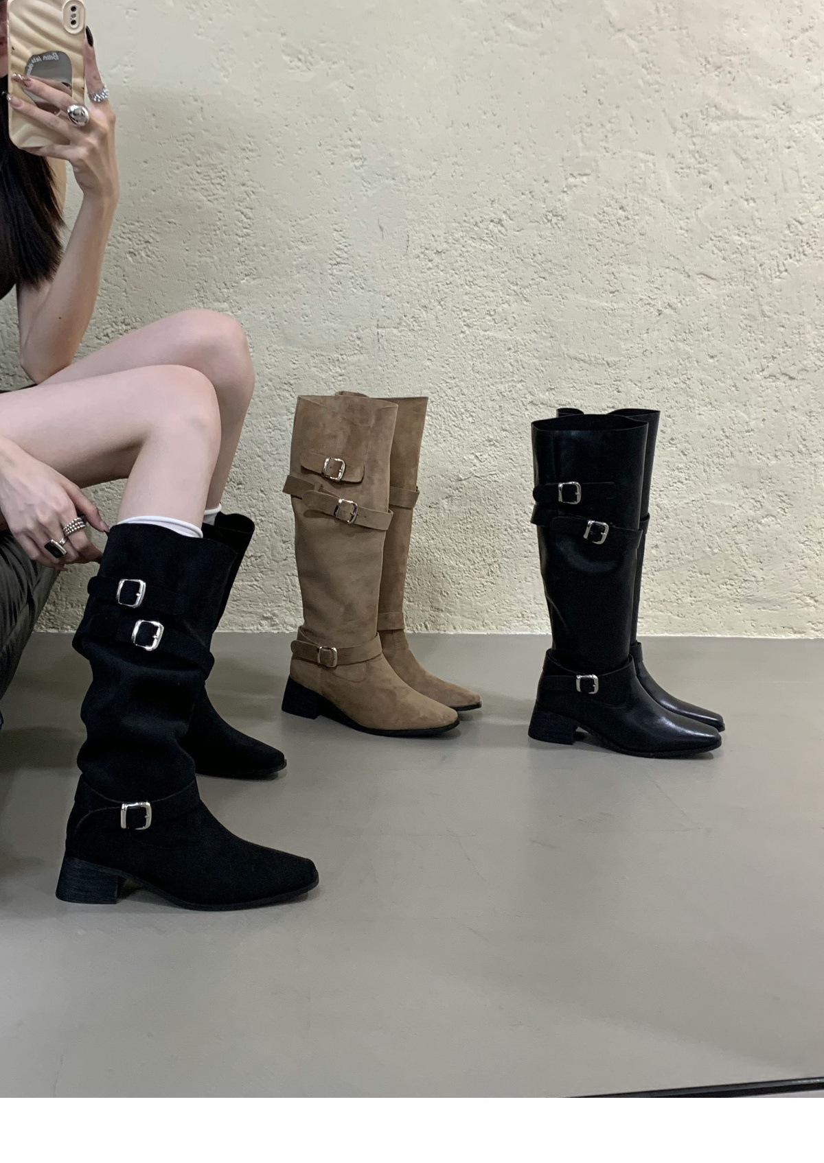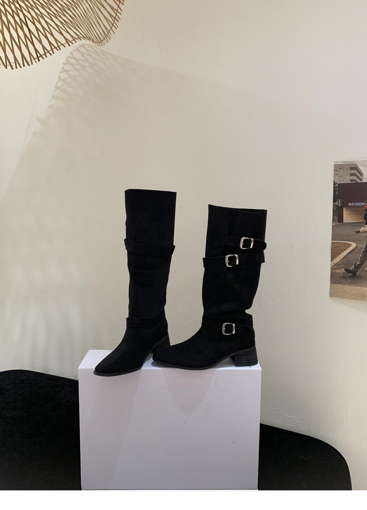 Botas Vaqueras Nuevas 2025 para Mujer Botas Largas por Encima de la Rodilla Botas Apiladas Tacón Grueso Tacón Alto Adelgazantes Caña Larga Botas de Jinete