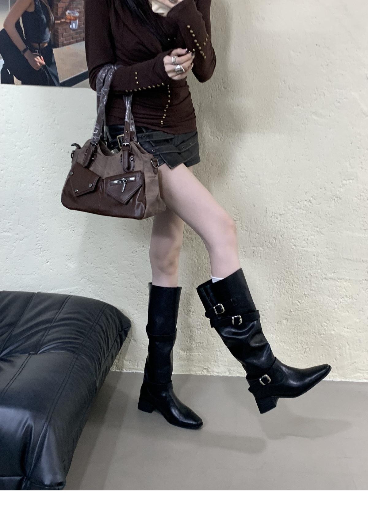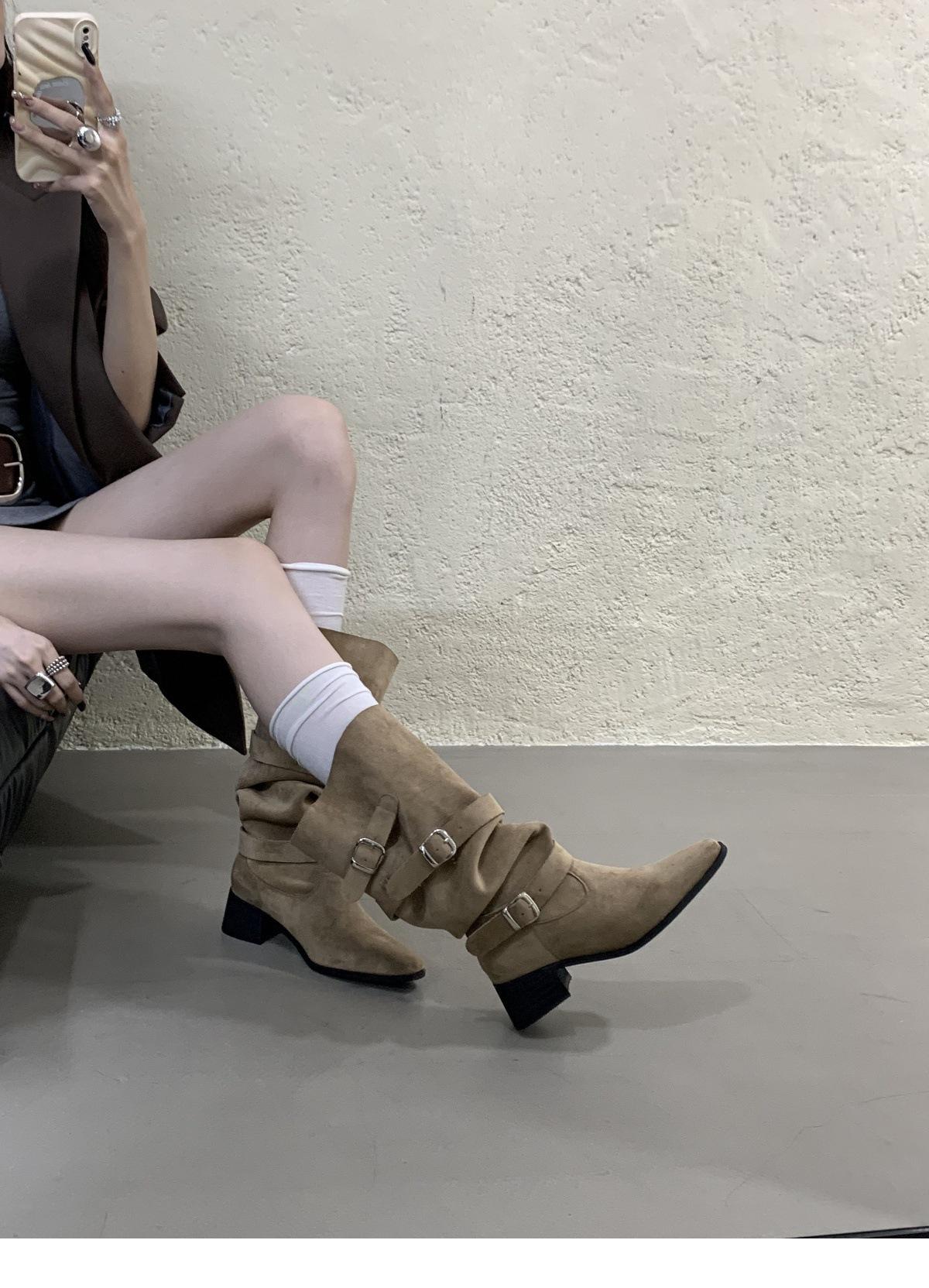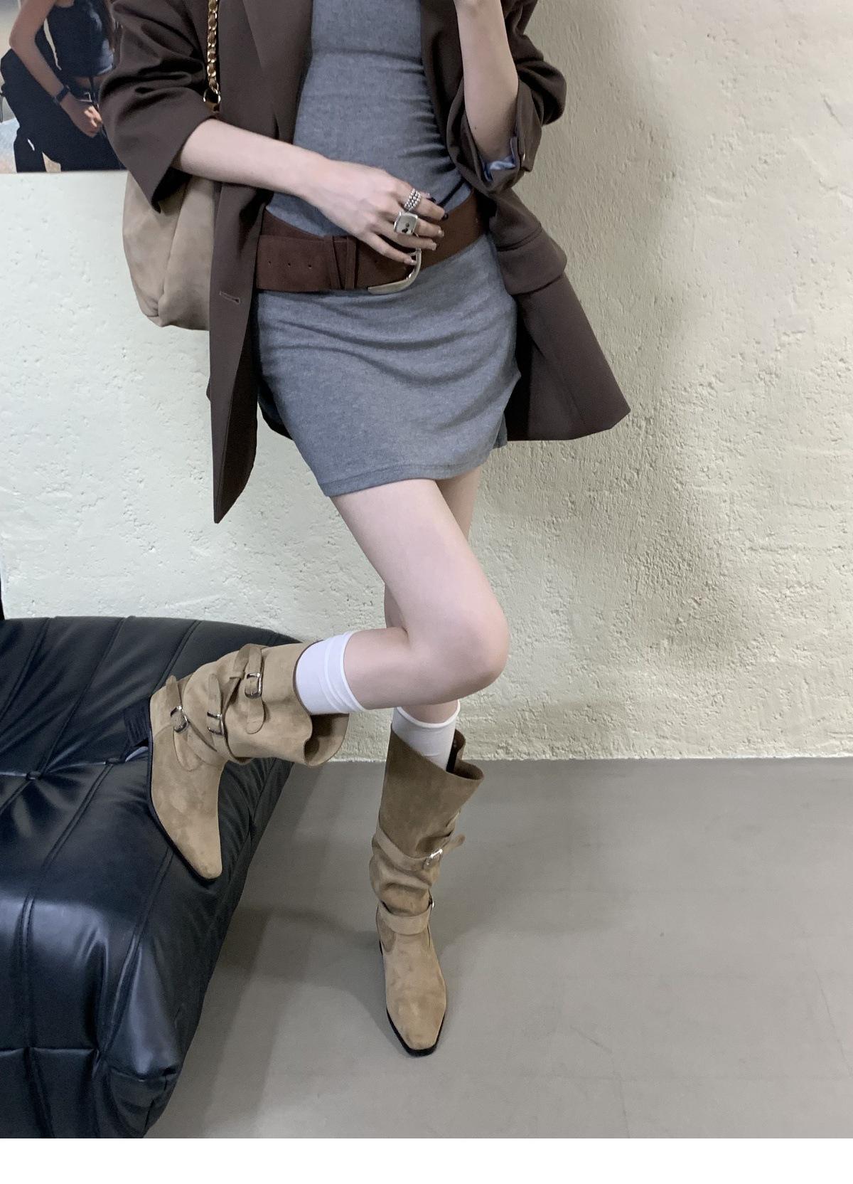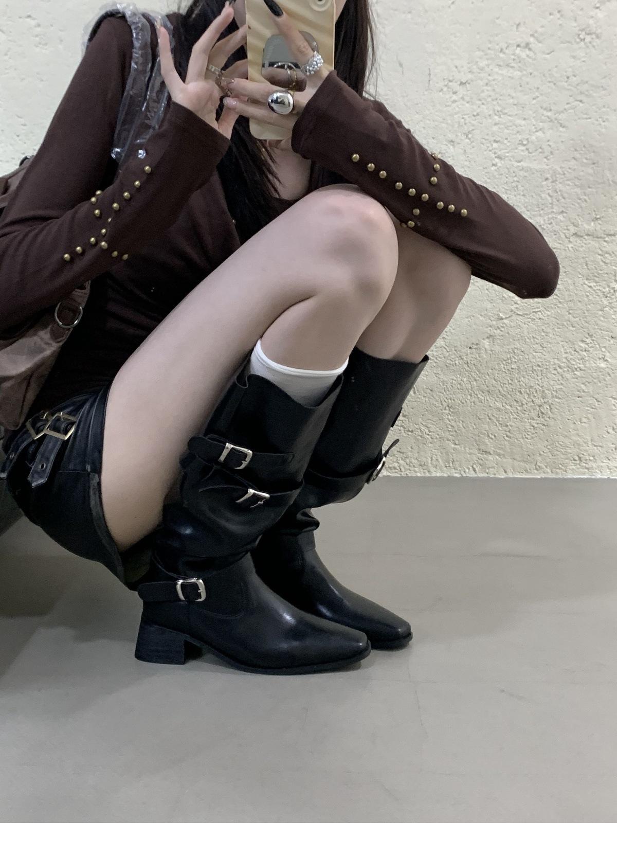 Botas Vaqueras Nuevas 2025 para Mujer Botas Largas por Encima de la Rodilla Botas Apiladas Tacón Grueso Tacón Alto Adelgazantes Caña Larga Botas de Jinete