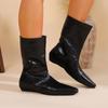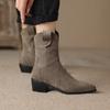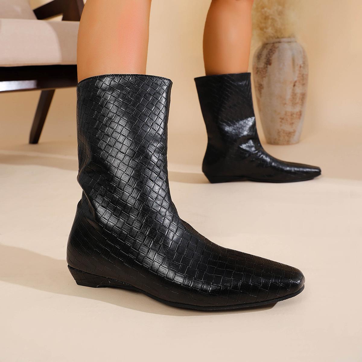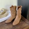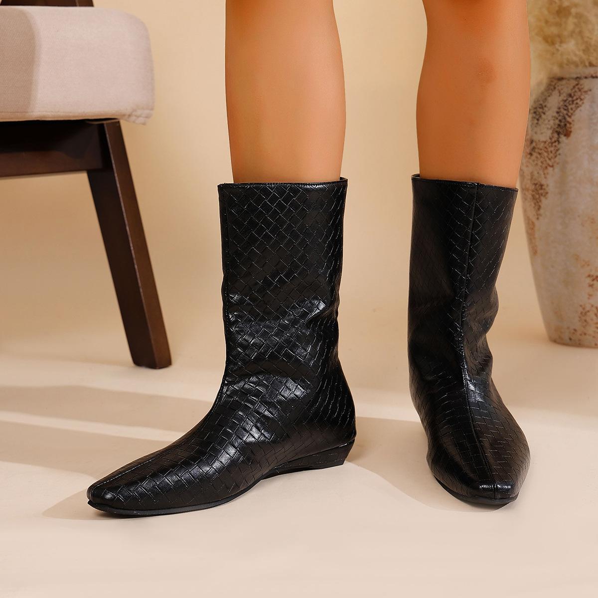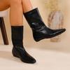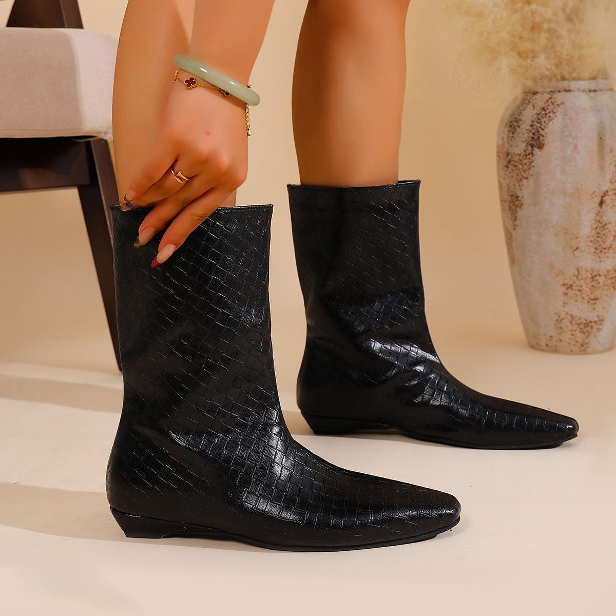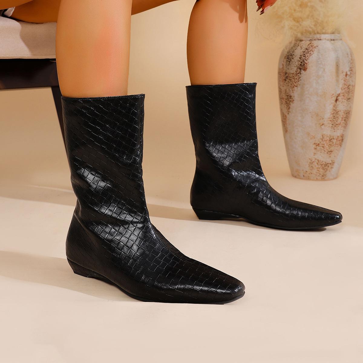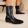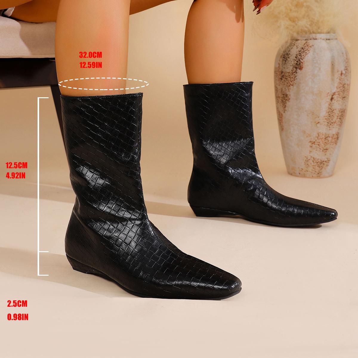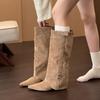 Moda de otoño e invierno punta puntiaguda tejida caña ancha tacón de cuña botas de media caña de alta gama para mujer botas de moda francesas retro adelgazantes