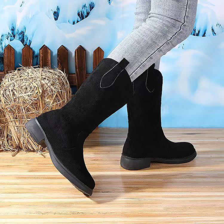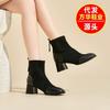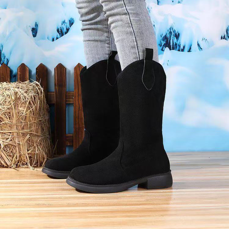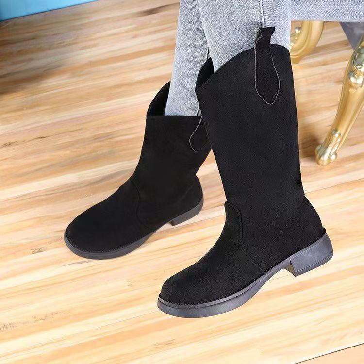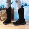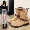 Botas Martin de gamuza de tacón medio estilo británico con punta redonda para mujer, botas sencillas retro de media caña, nuevo otoño e invierno 2025