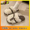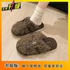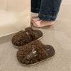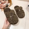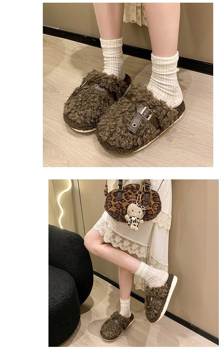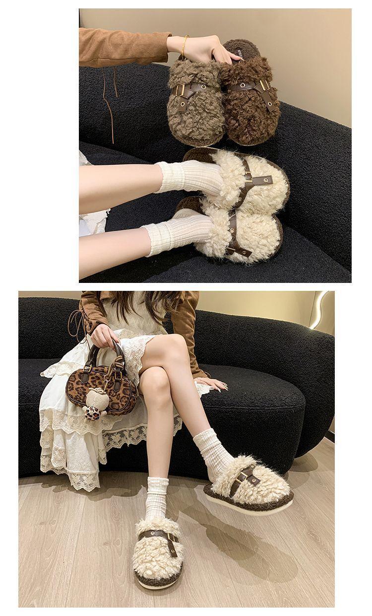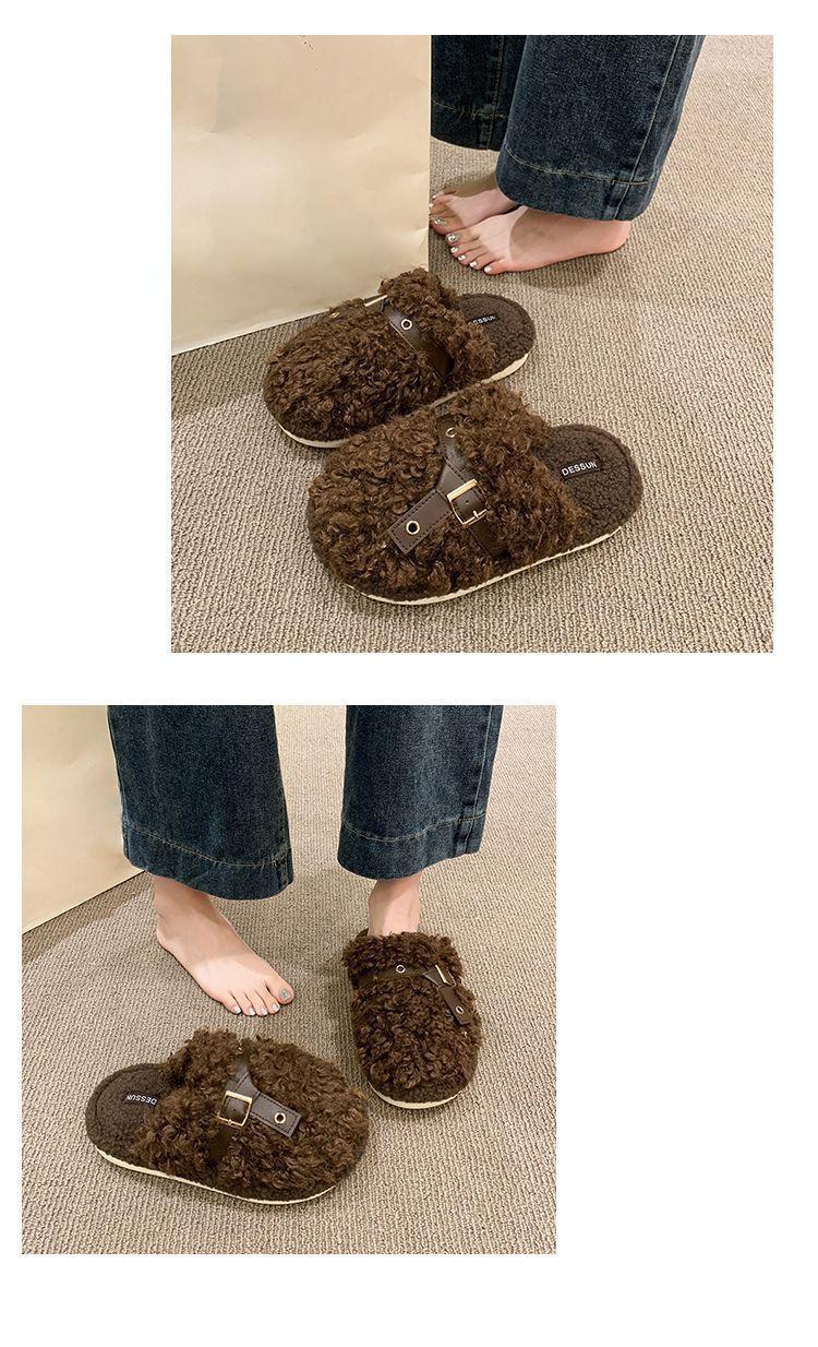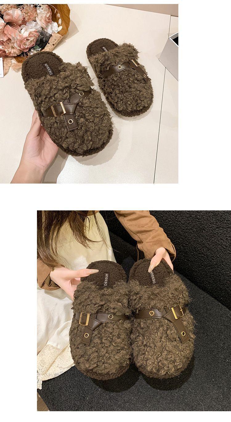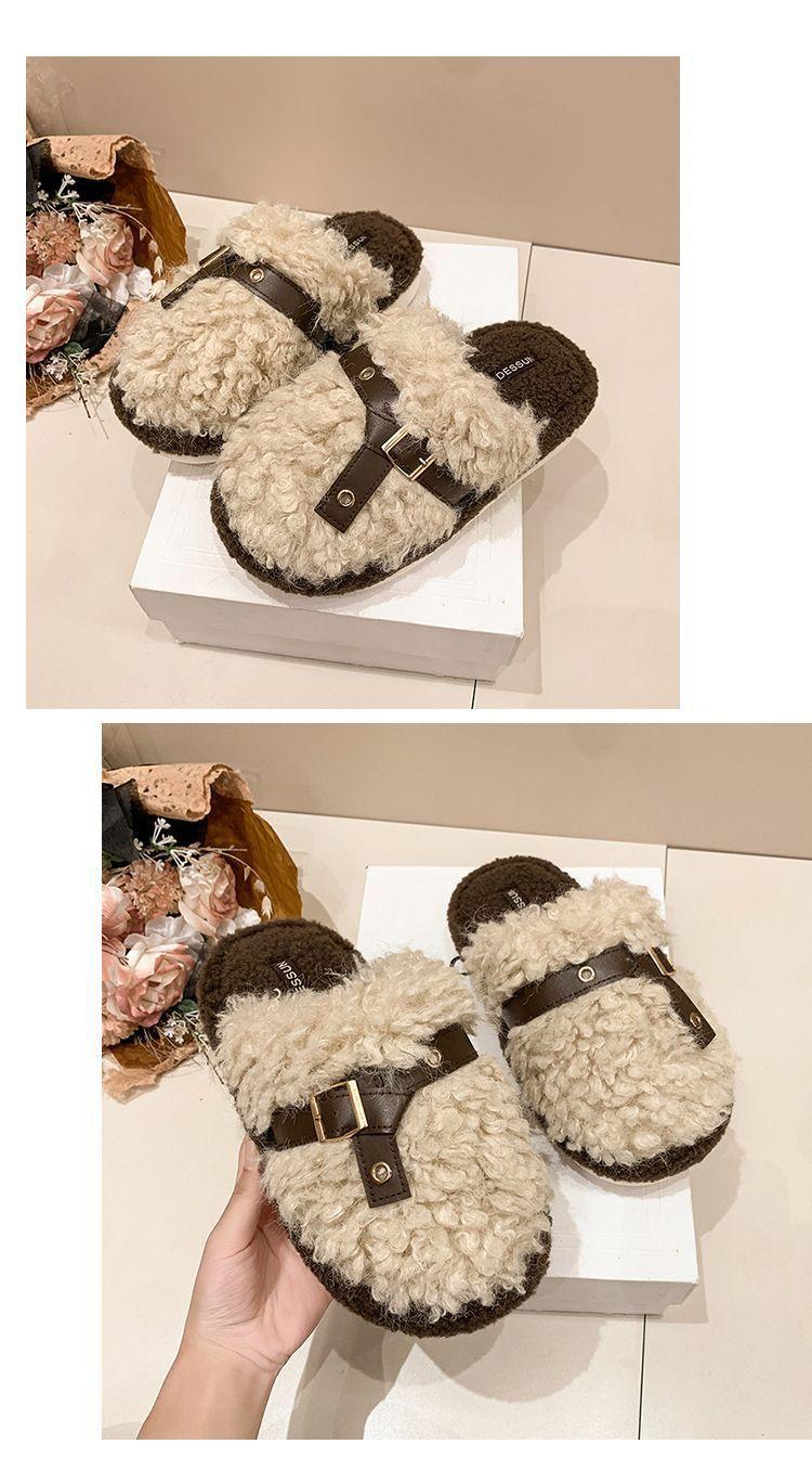 Pantuflas planas antideslizantes de interior/exterior borrosas para mujer 2025 Otoño/Invierno Nuevo estilo para usar fuera Rojo de internet de punta cerrada de felpa de algodón para mujer