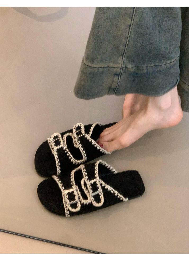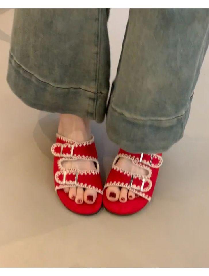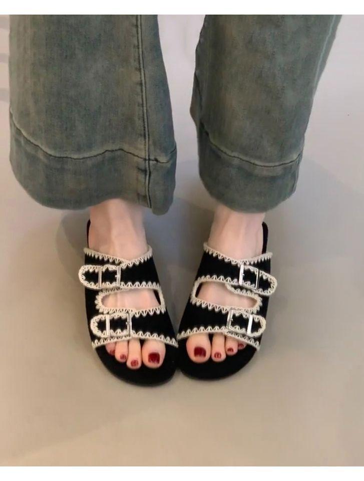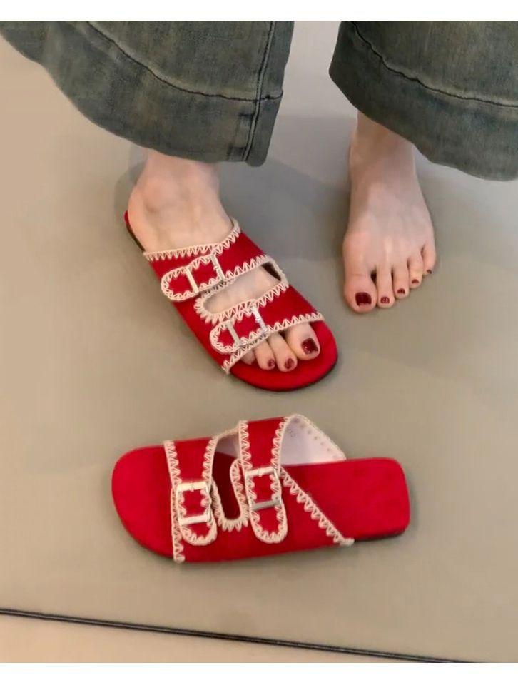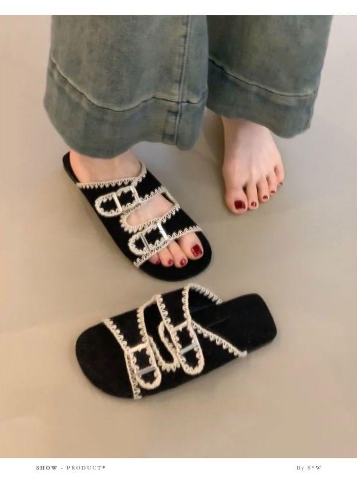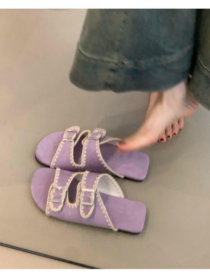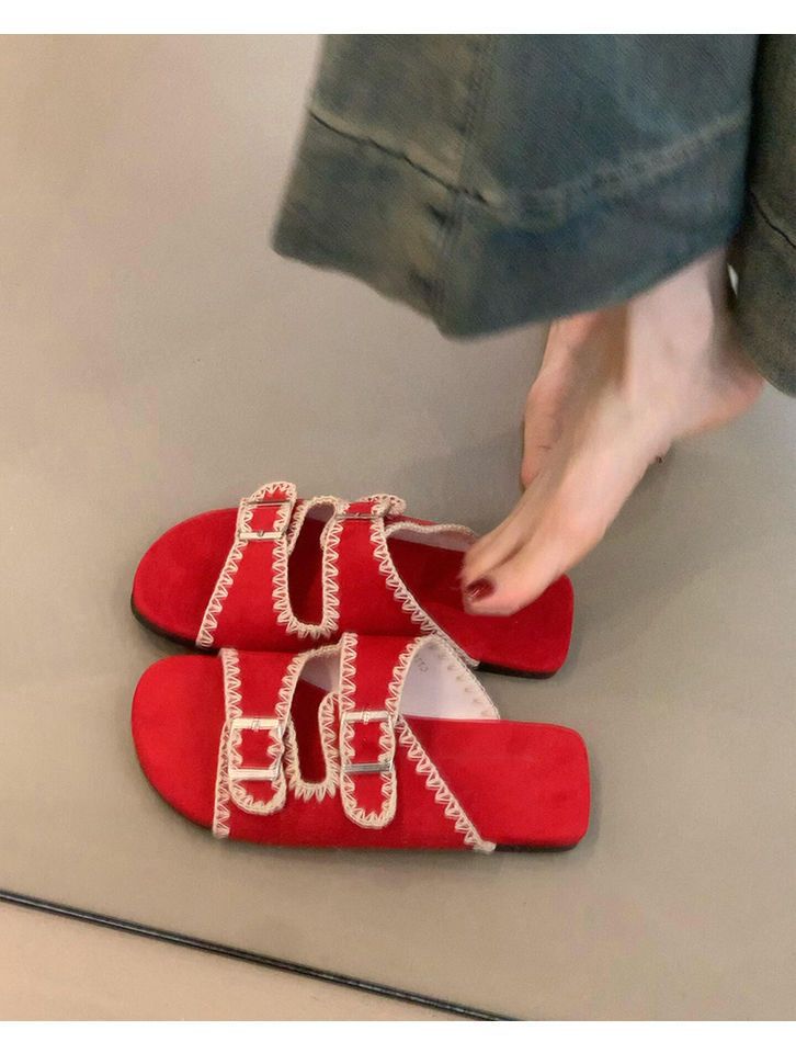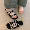 Sandalias Retro Nicho Playa Punta Plana Expuesta Mujer Francés Casual Exterior Moda Chanclas