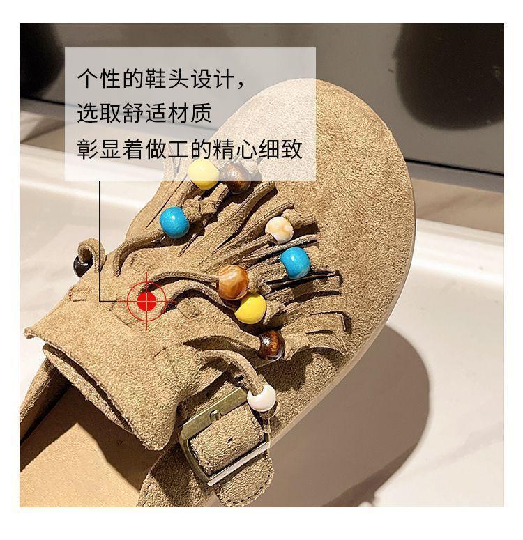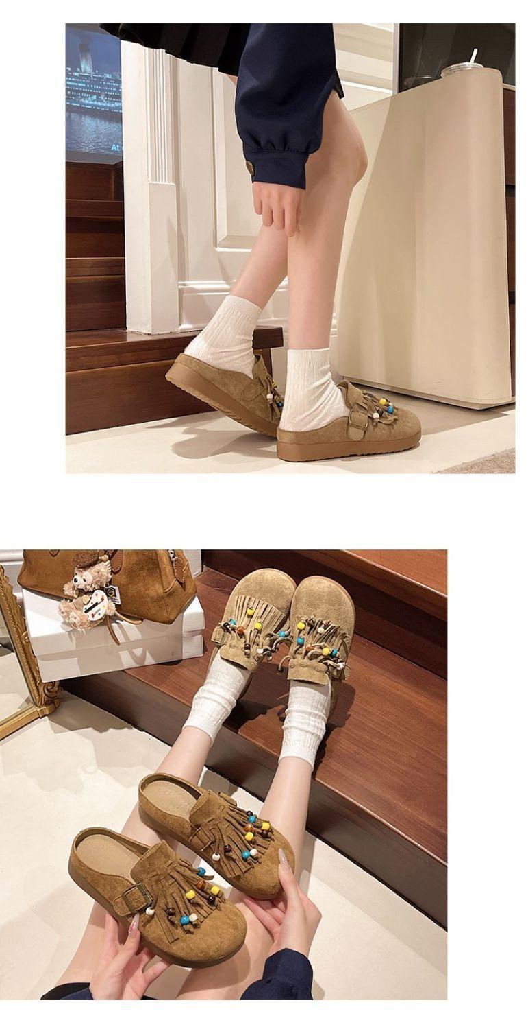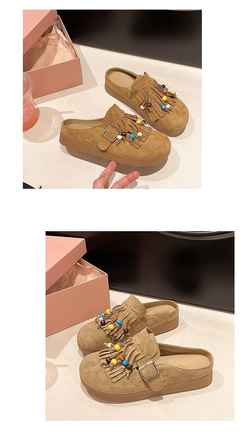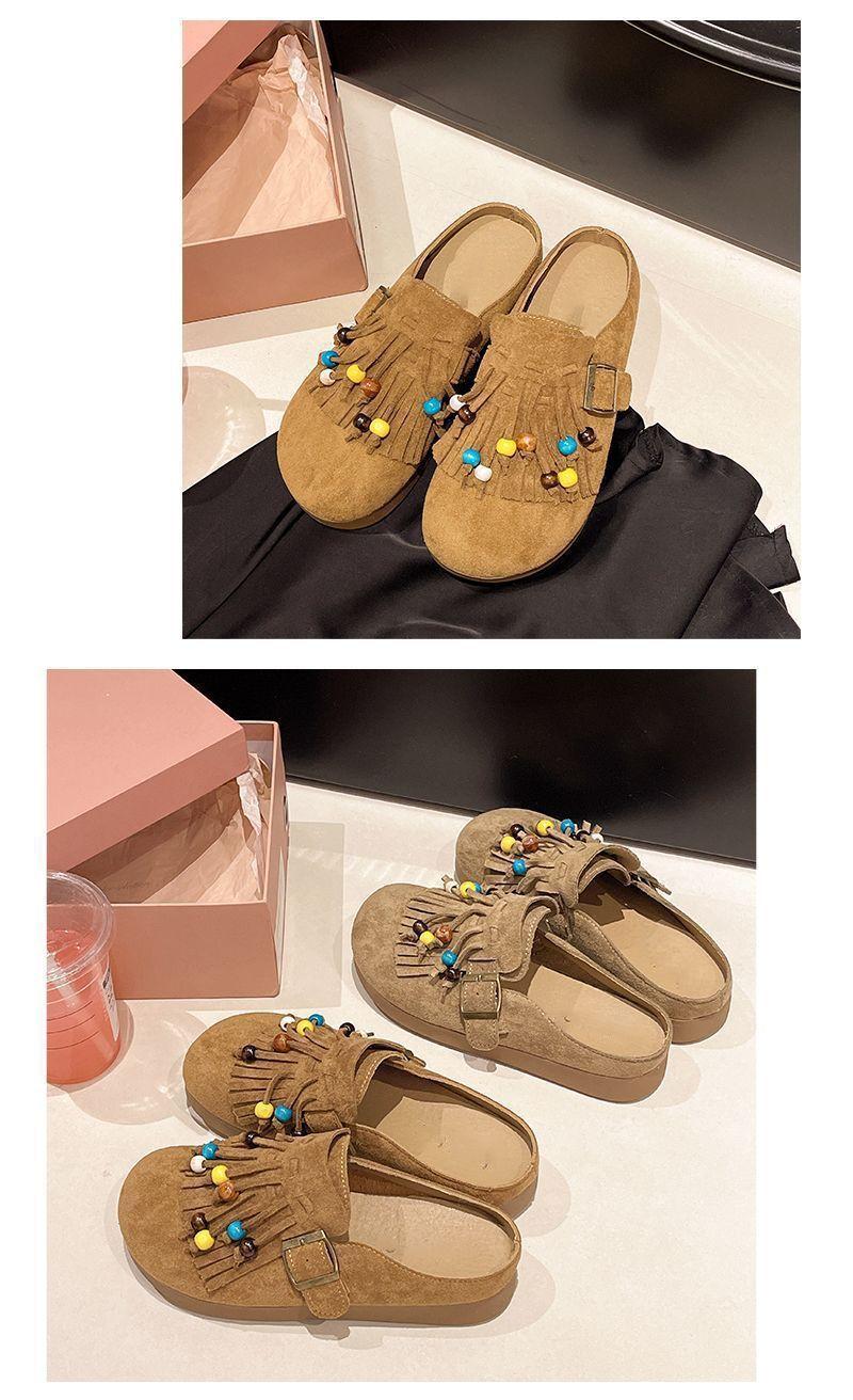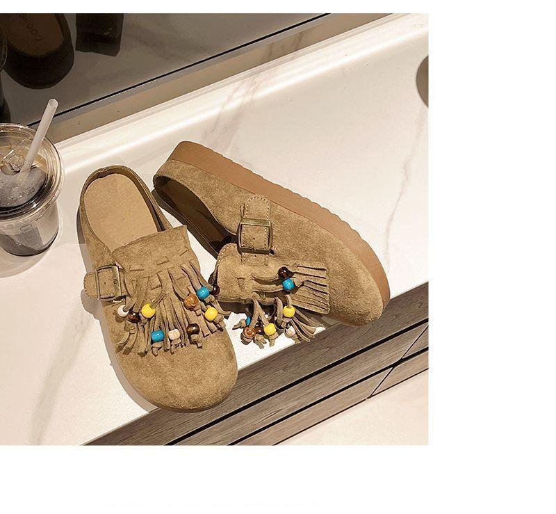 Zapatos planos perezosos de un paso cómodos zapatos perezosos modernos retro borla con cuentas tostado zapatos individuales mujer 2025 otoño nuevo