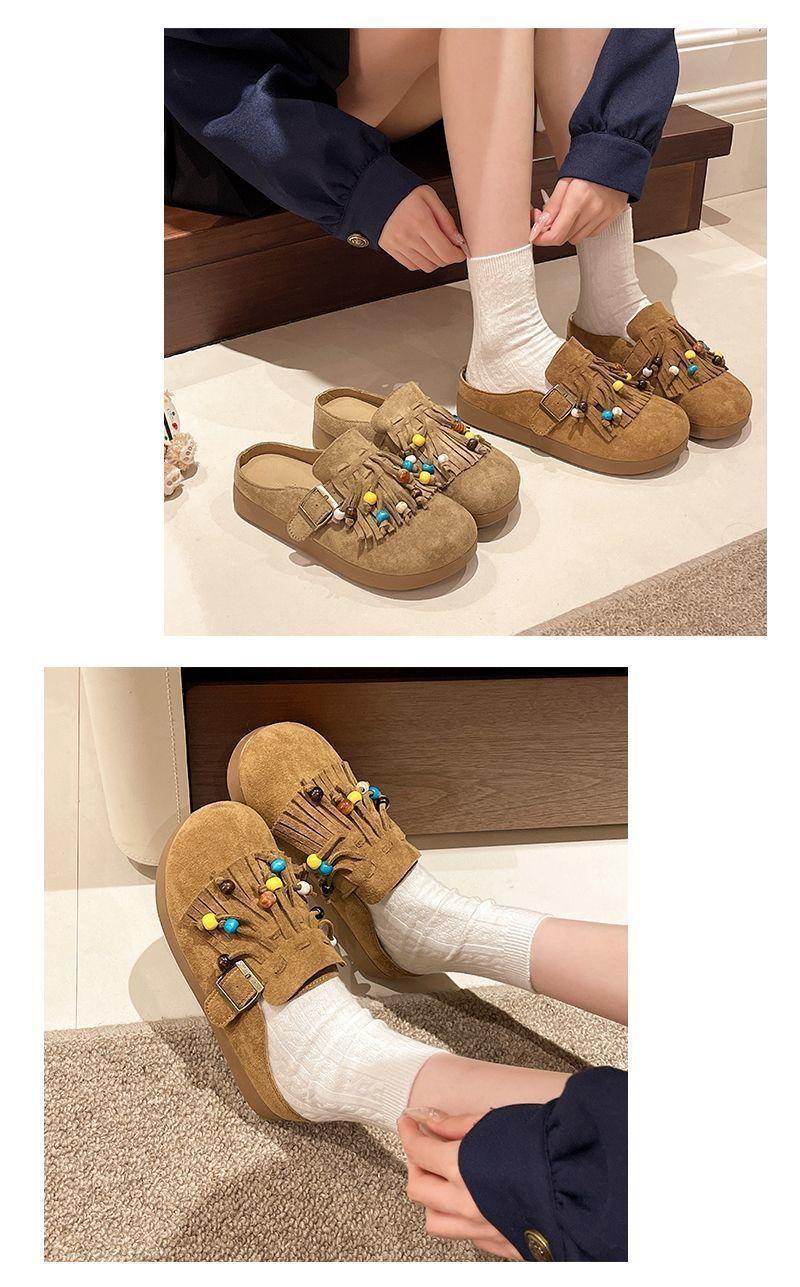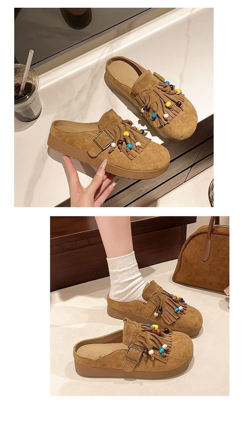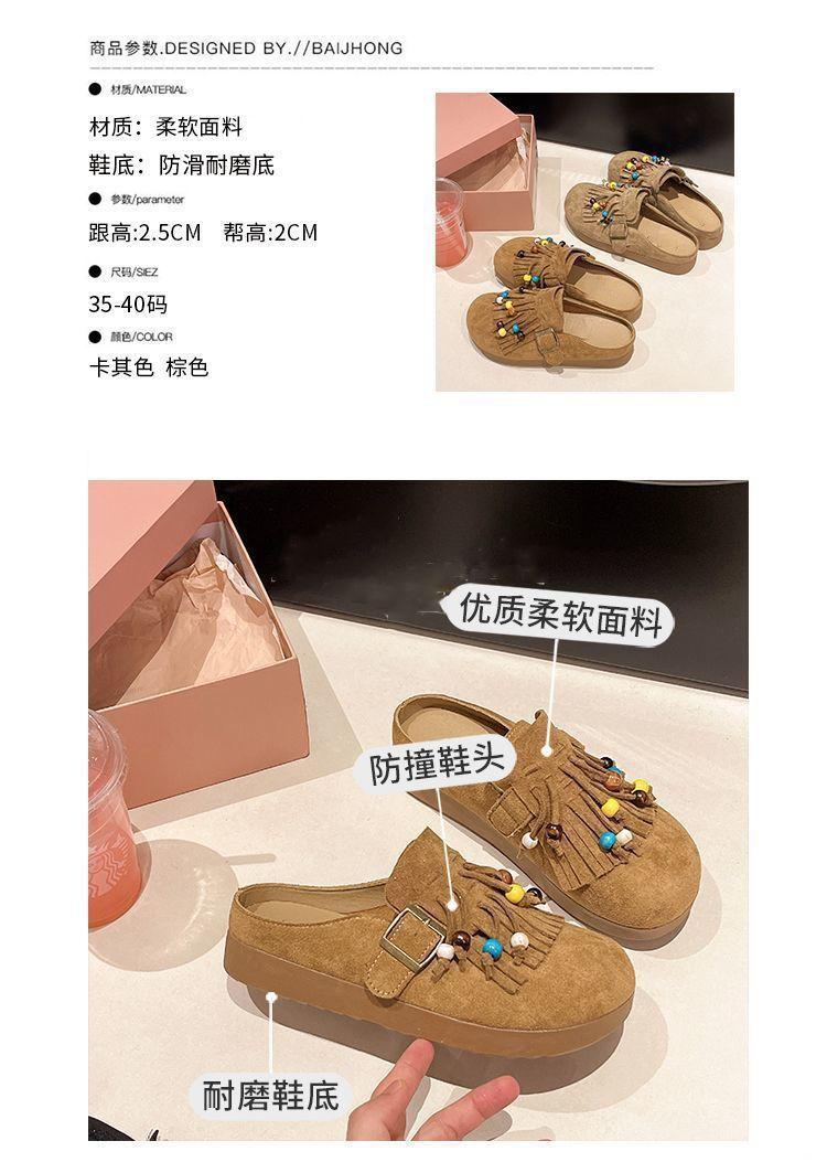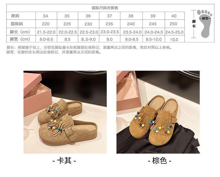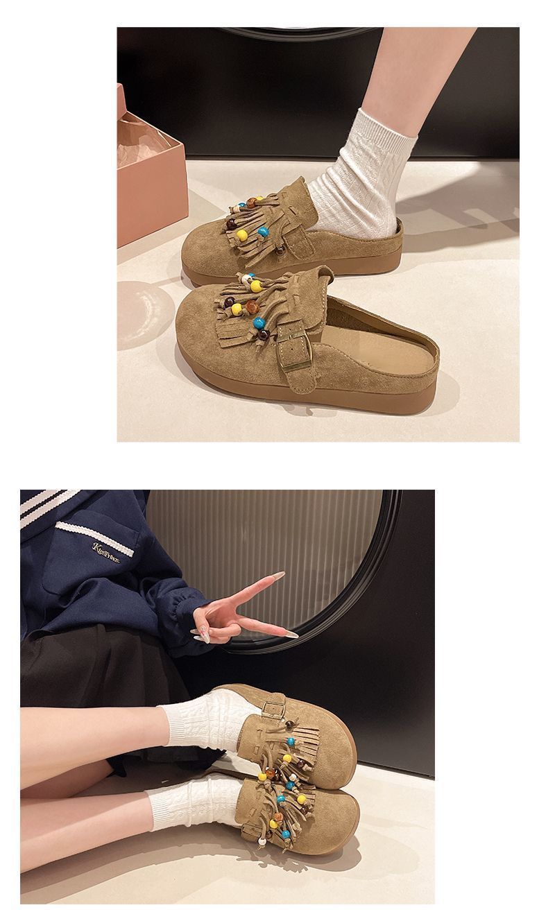 Zapatos planos perezosos de un paso cómodos zapatos perezosos modernos retro borla con cuentas tostado zapatos individuales mujer 2025 otoño nuevo