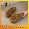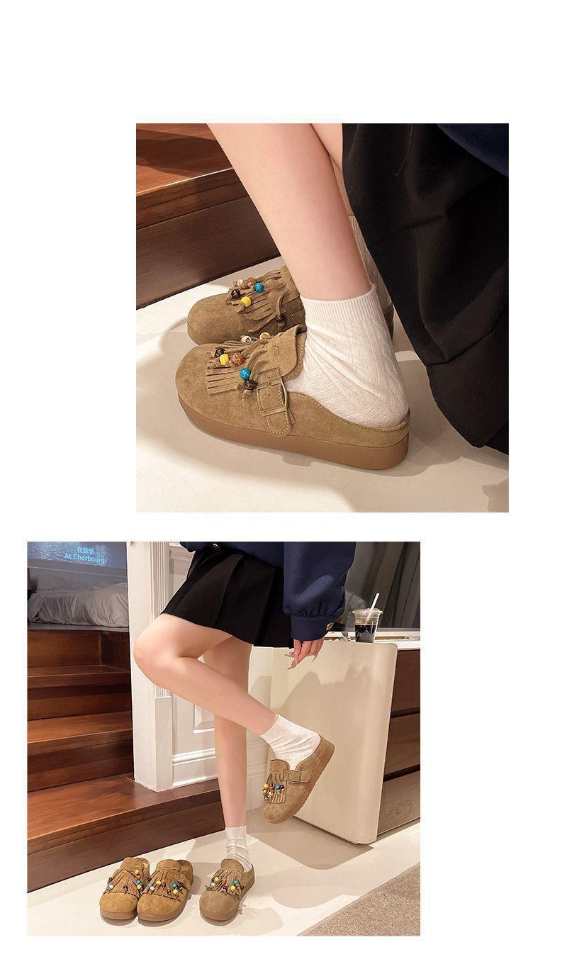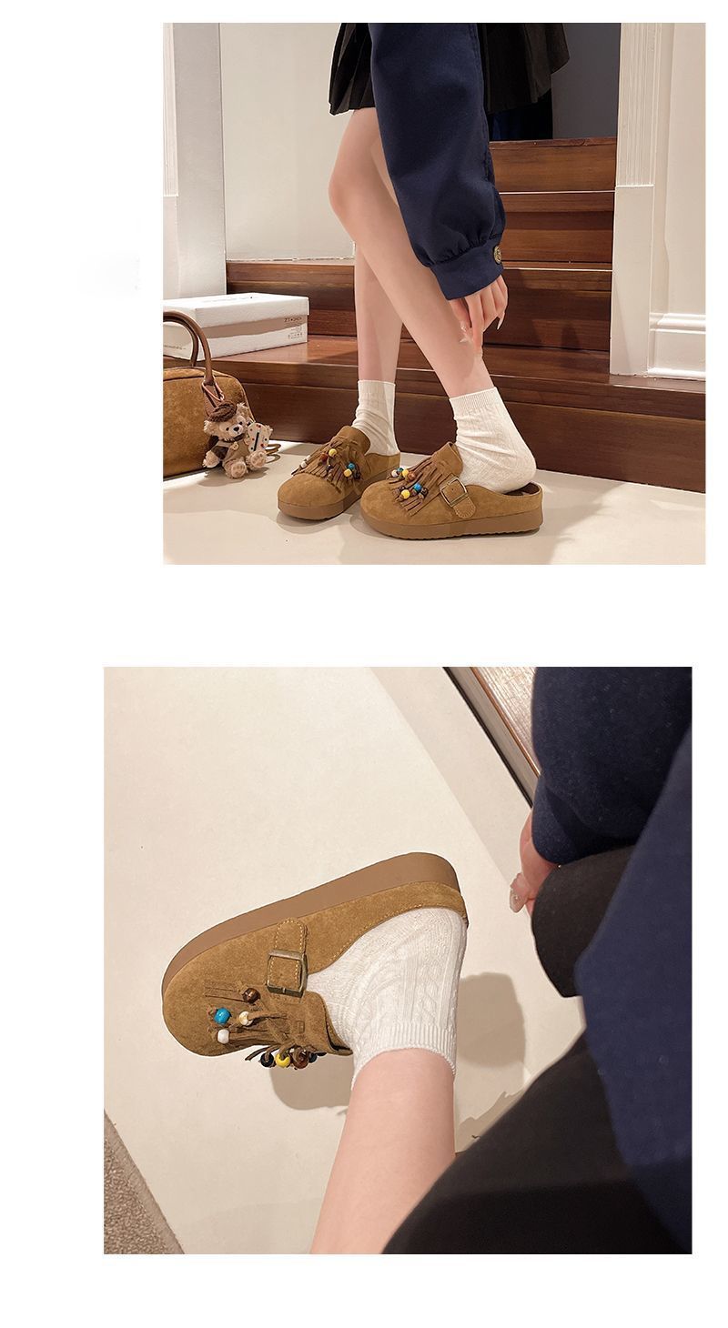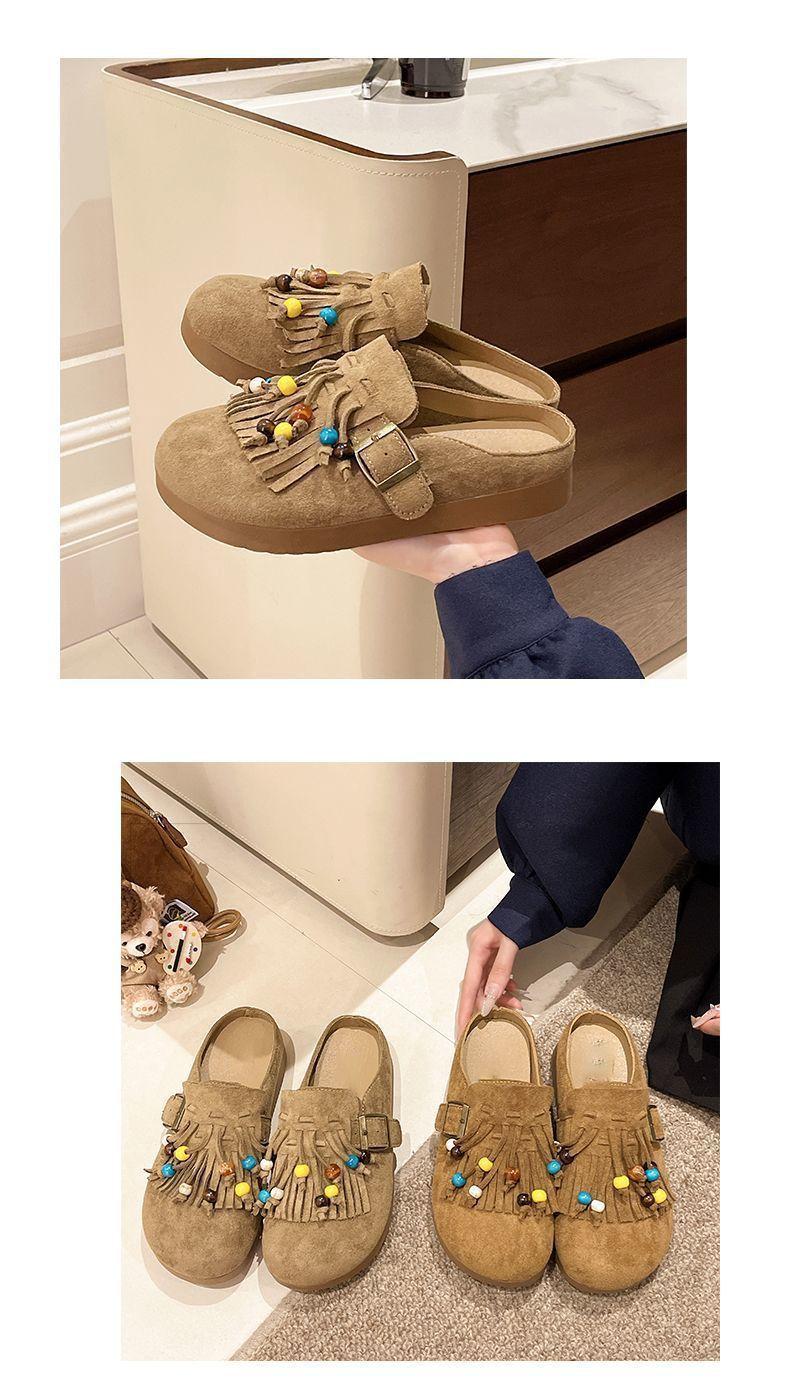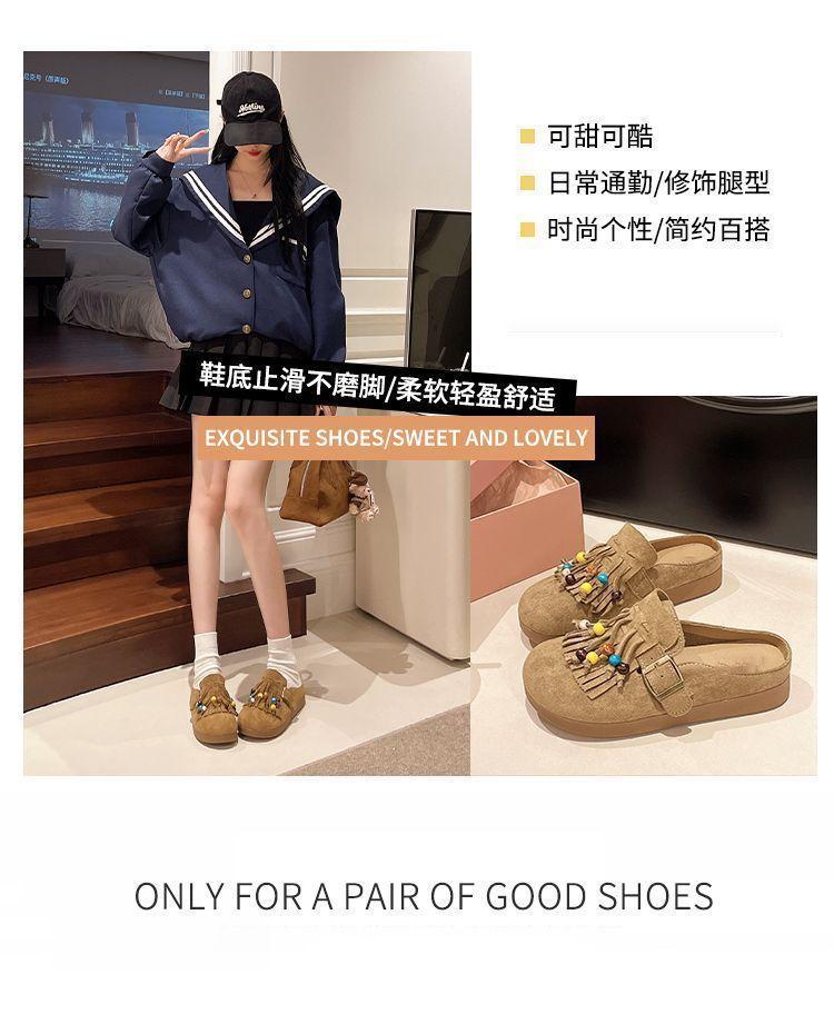 Zapatos planos perezosos de un paso cómodos zapatos perezosos modernos retro borla con cuentas tostado zapatos individuales mujer 2025 otoño nuevo