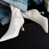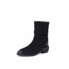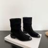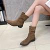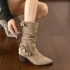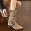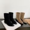 Botas de Tacón Grueso Apilado de Punta 2025 Otoño/Invierno Nuevo Estilo Coreano Adelgazantes Botas de Moda Temperamento Gamuza Tacón Medio Moda Botas Nude