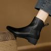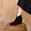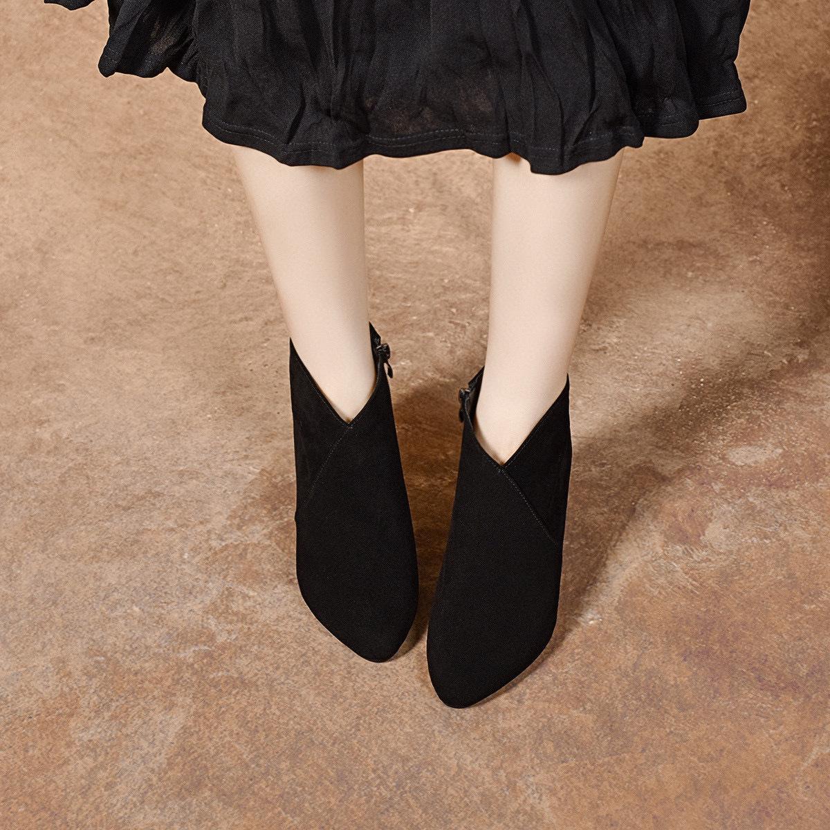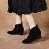 Botines de Tacón de Cuña con Punta Afilada para Mujer Otoño/Invierno 2025 Estilo Europeo y Americano Literario Retro Botas de Cuero Negro Cremallera Piel de Oveja Más Terciopelo Algodón Botas