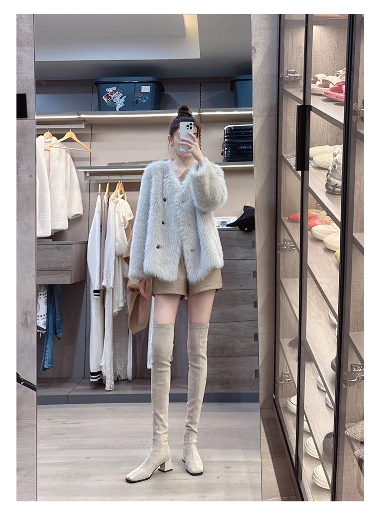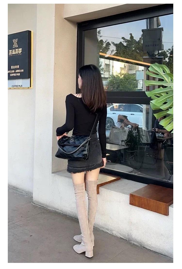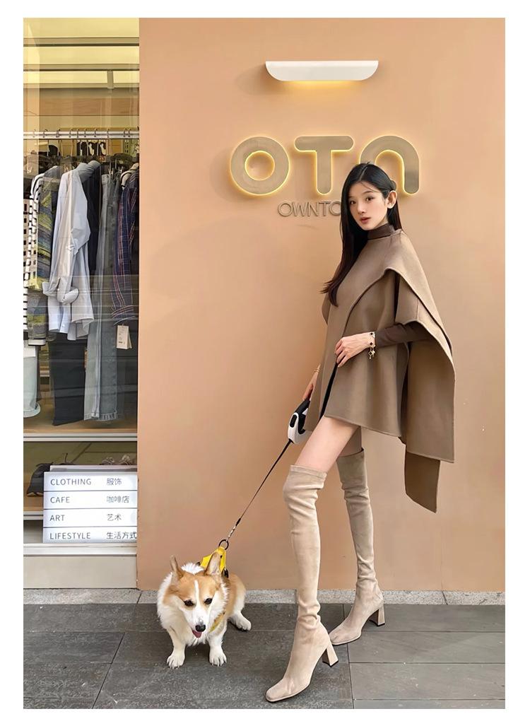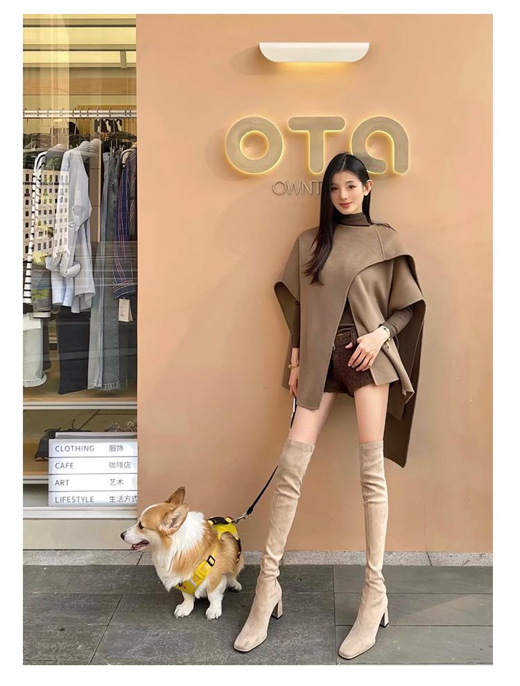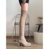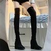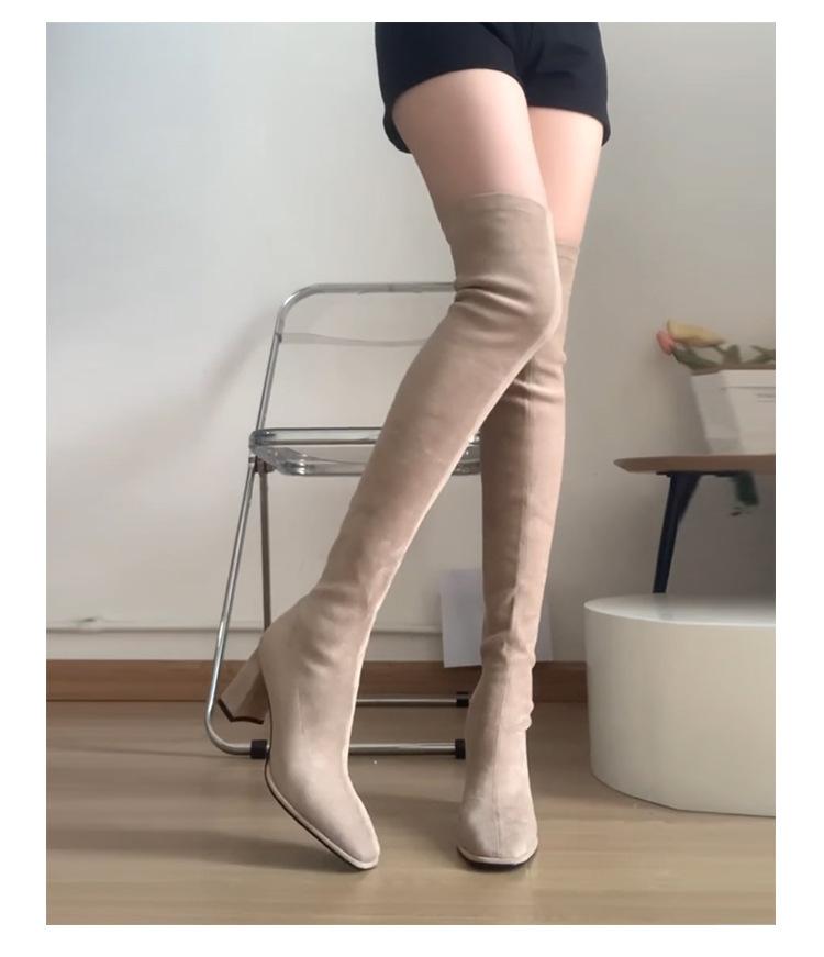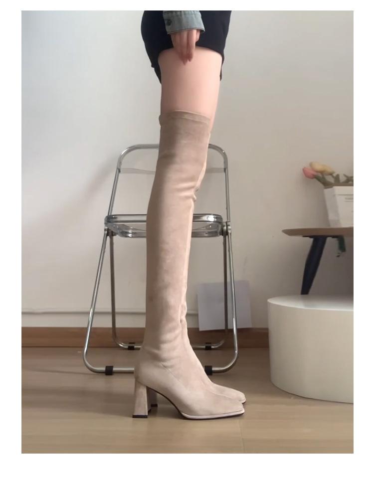 Botas de Tacón Alto por Encima de la Rodilla para Mujer 2025 Invierno Nuevo Punta Cuadrada Elásticas Ajustadas Botas de Tacón Ancho por Encima de la Rodilla Caña Alta Gamuza Botas Largas