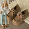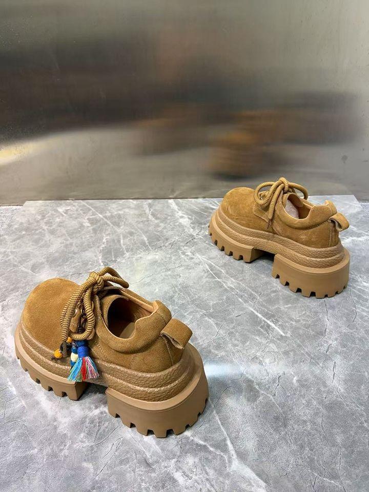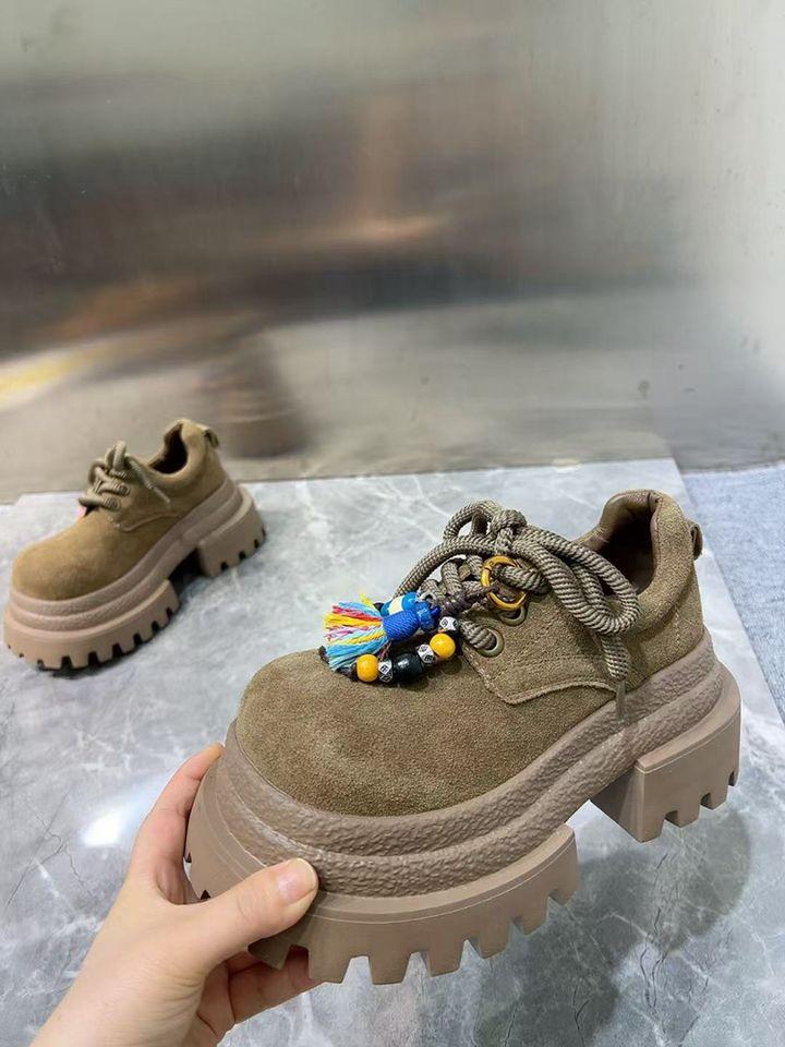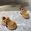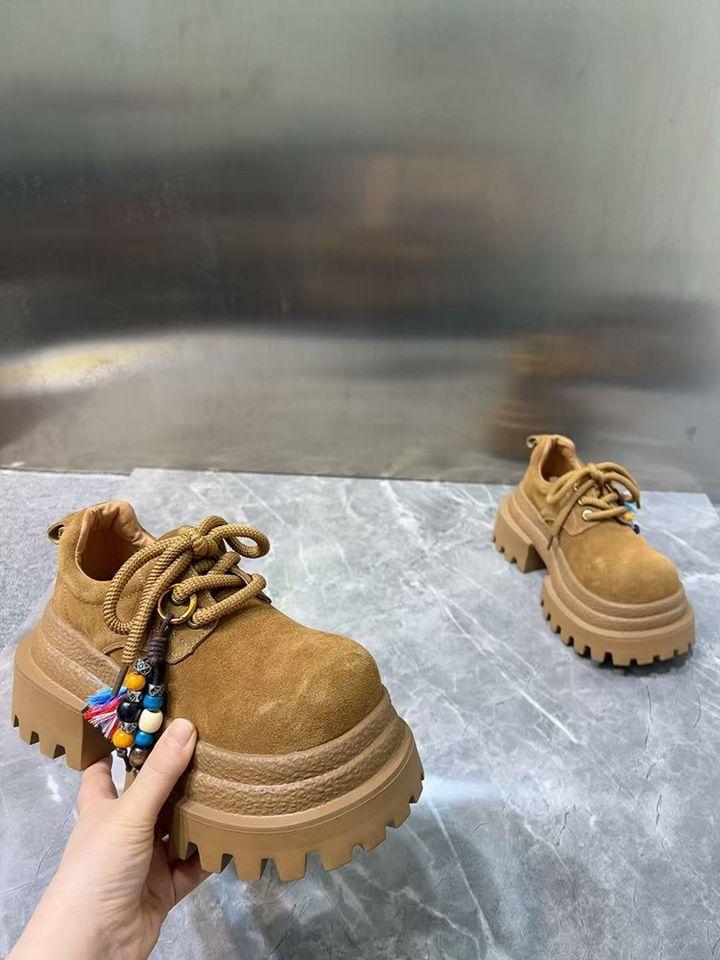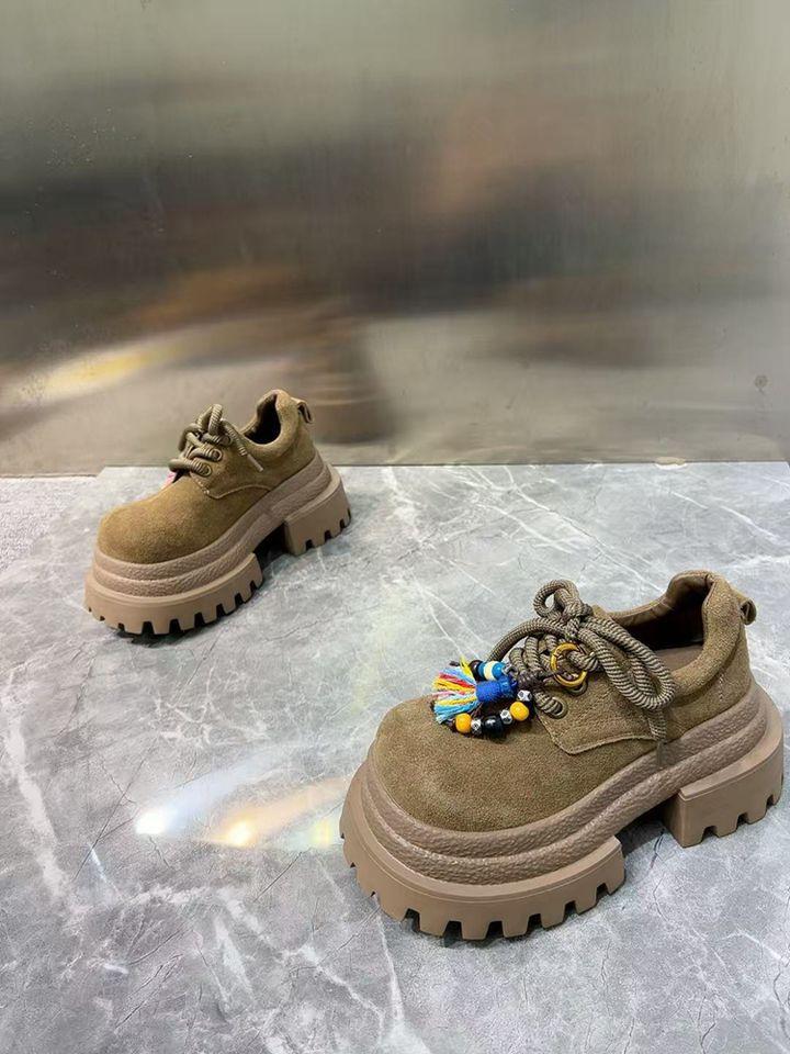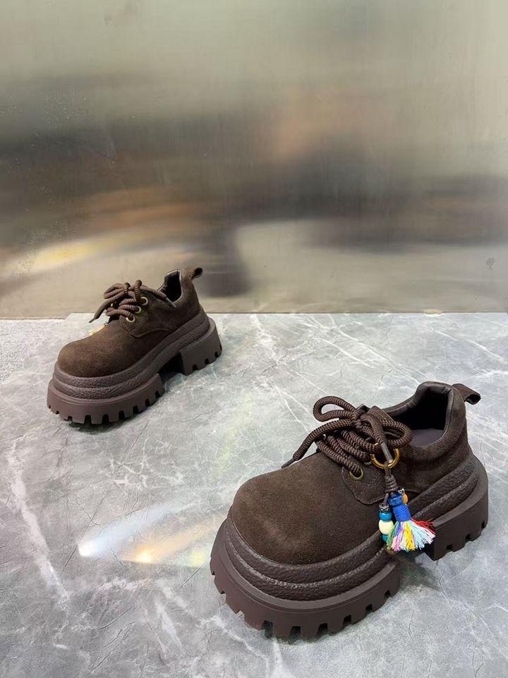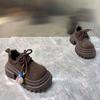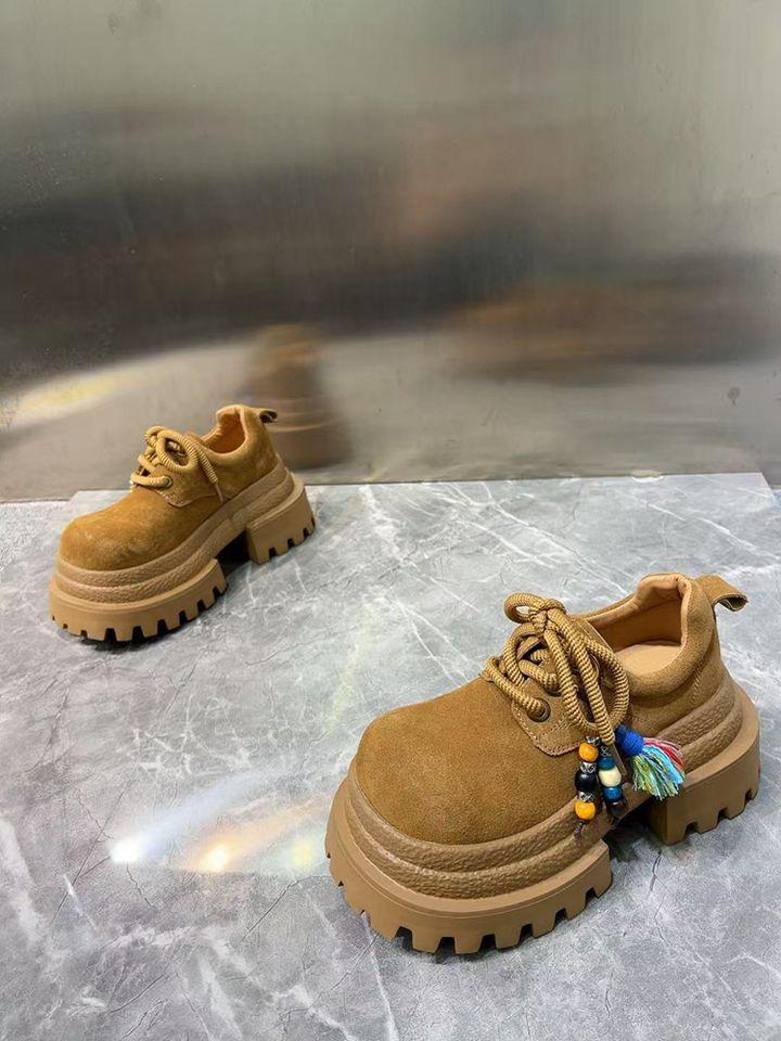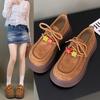 Mocasines de plataforma de punta grande retro de estilo europeo con cordones que aumentan la altura para mujer 2025 nuevos zapatos individuales de moda de talla pequeña para mujer