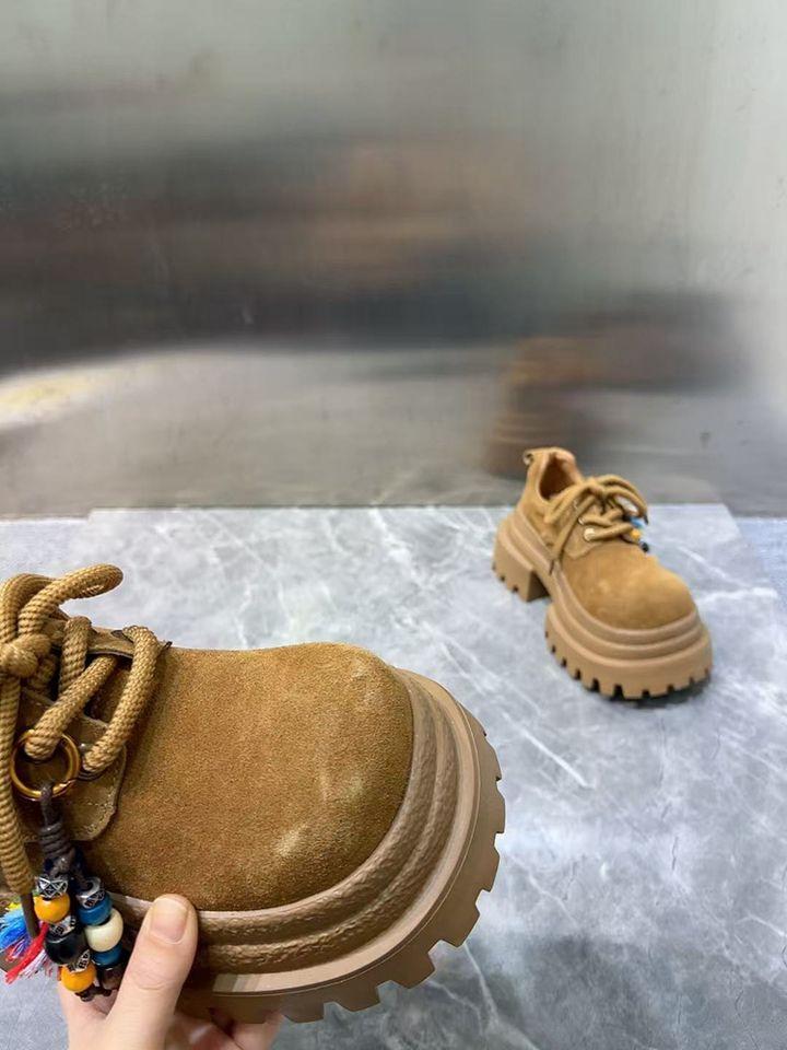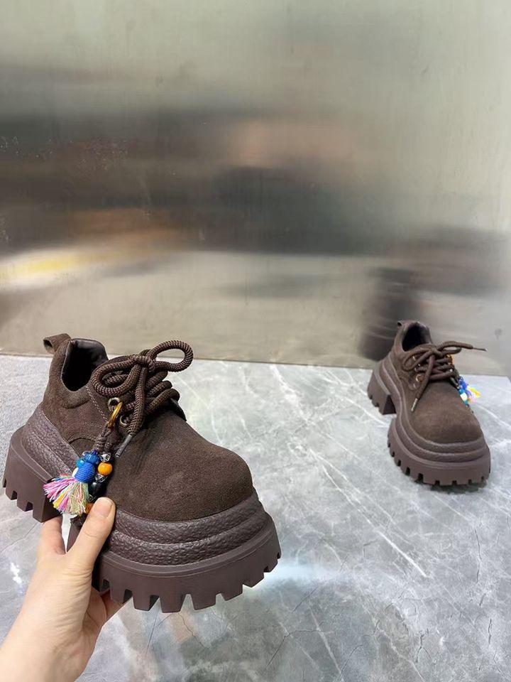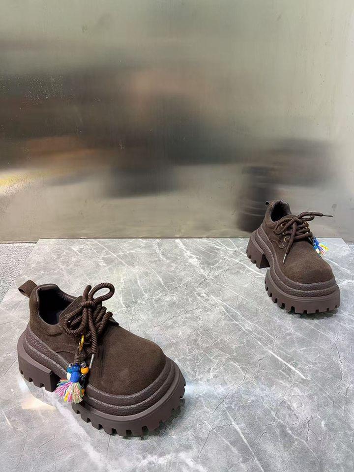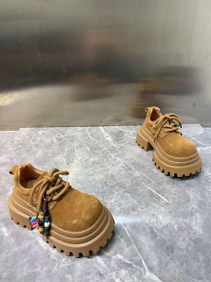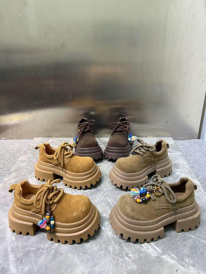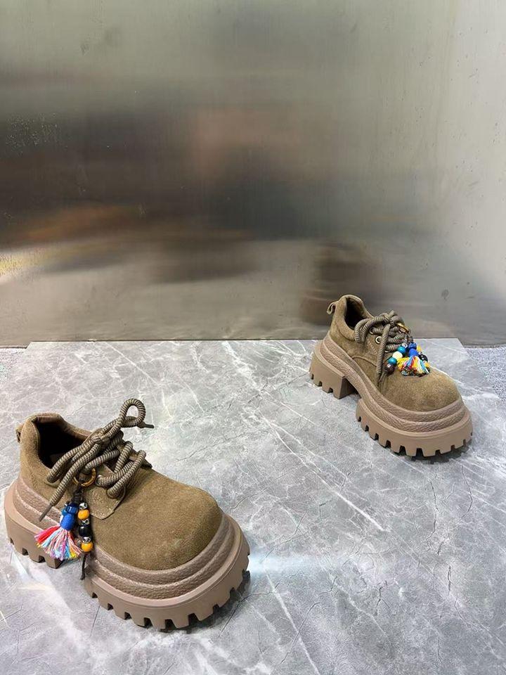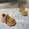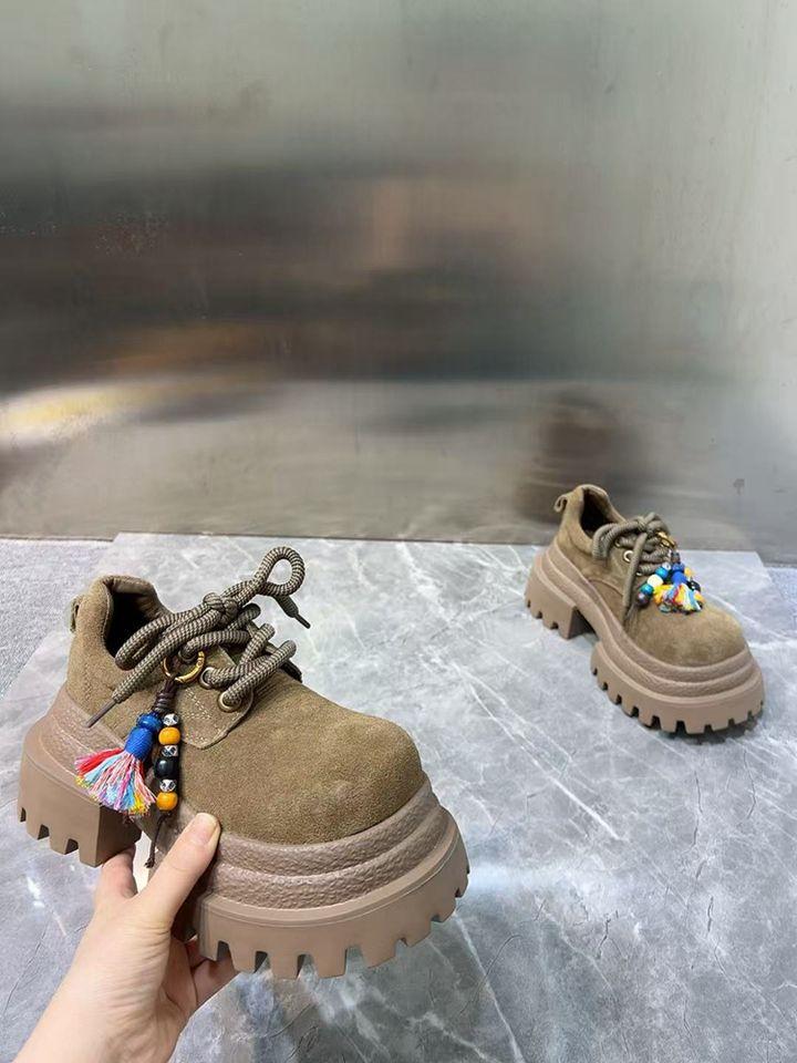 Mocasines de plataforma de punta grande retro de estilo europeo con cordones que aumentan la altura para mujer 2025 nuevos zapatos individuales de moda de talla pequeña para mujer