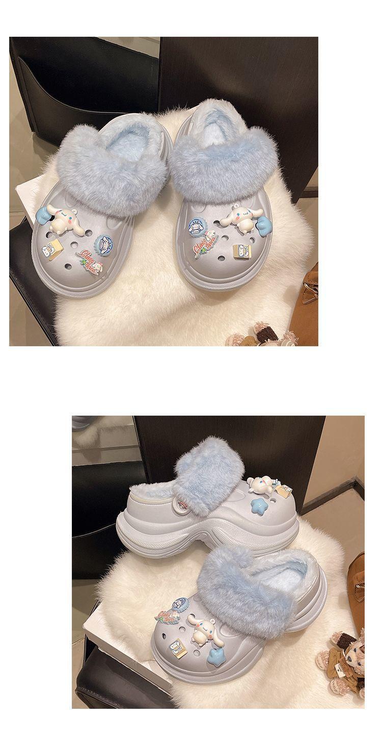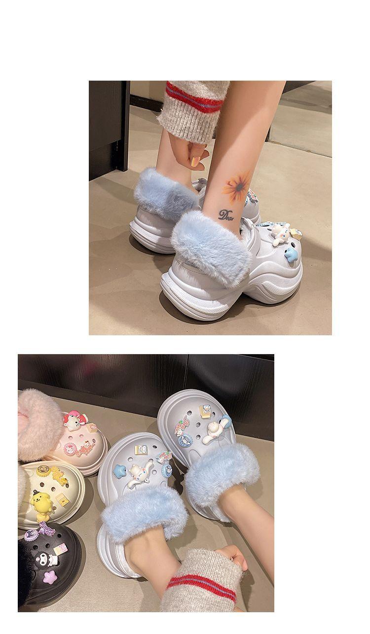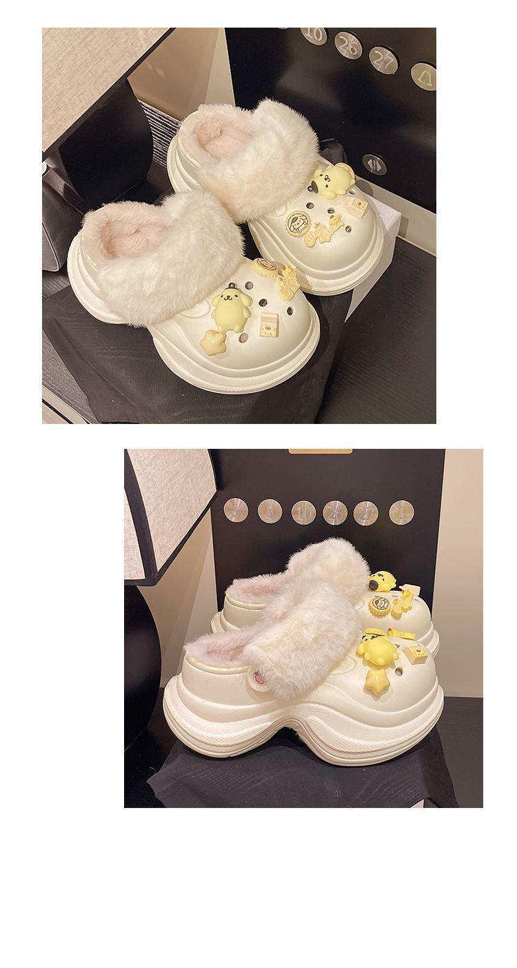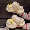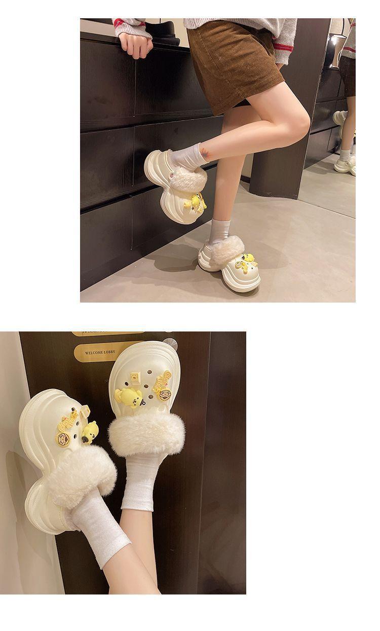 2025 Otoño/Invierno Nuevo Abrigo Zapatillas de Algodón Peludas Antideslizantes con Aumento de Altura Lindo Dibujo Animado Forro Polar Zapatos con Agujeros de Suela Gruesa para Mujer