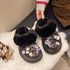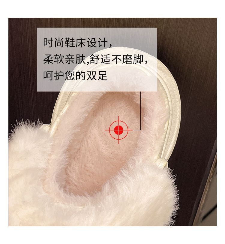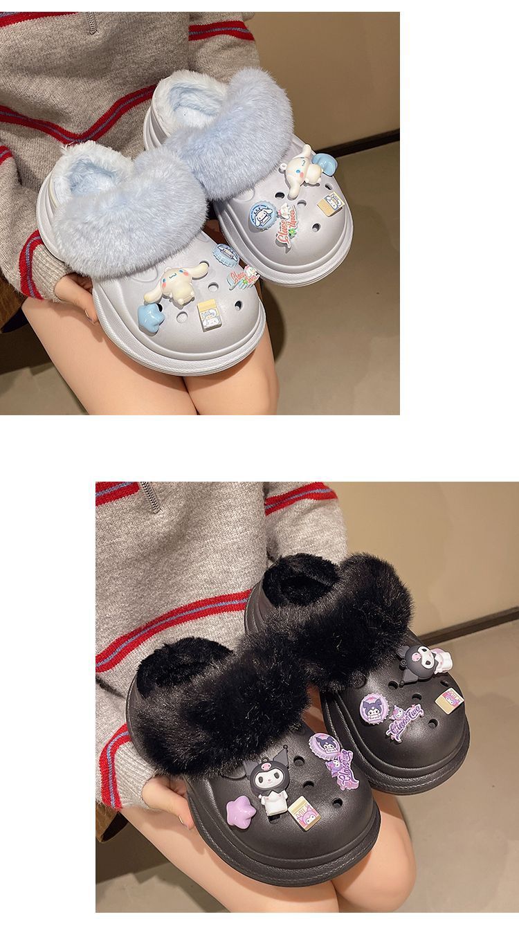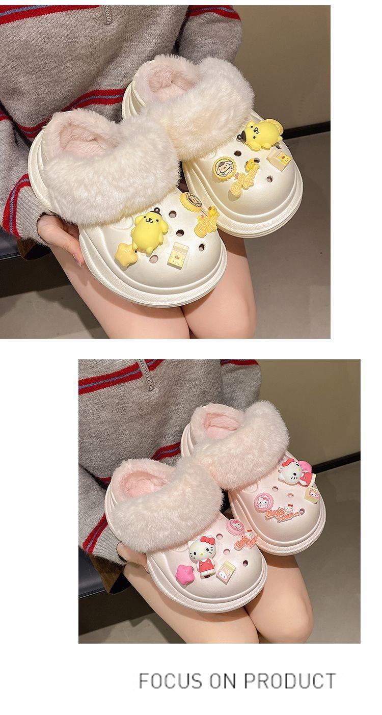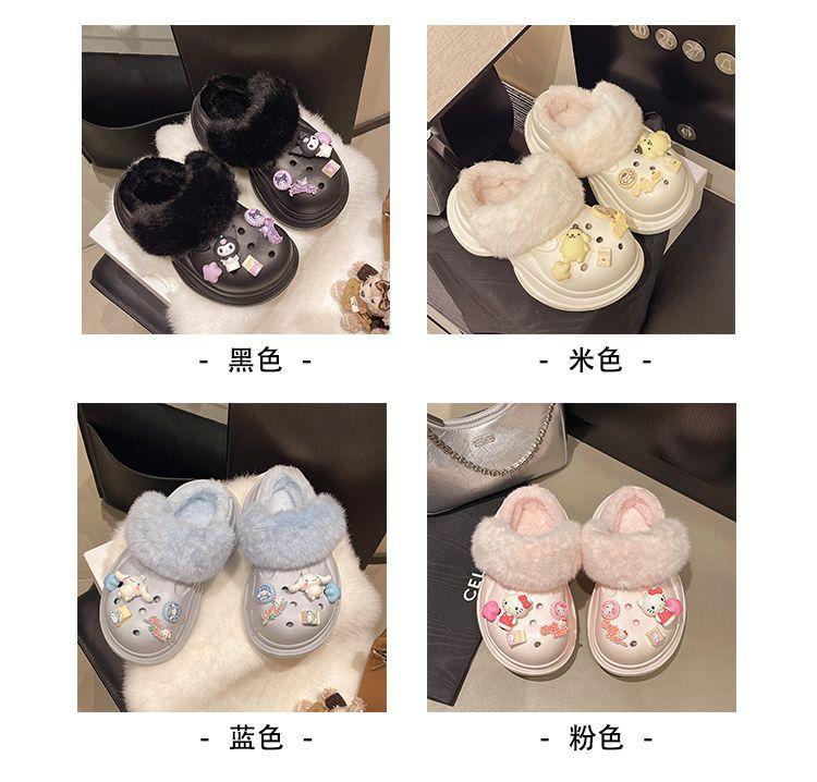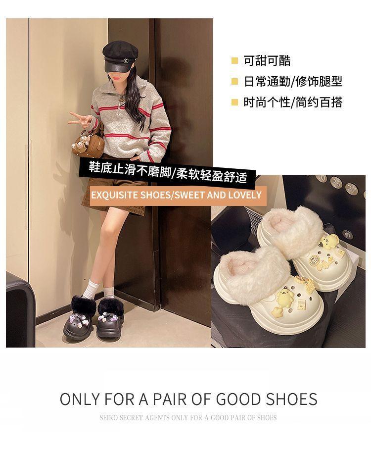 2025 Otoño/Invierno Nuevo Abrigo Zapatillas de Algodón Peludas Antideslizantes con Aumento de Altura Lindo Dibujo Animado Forro Polar Zapatos con Agujeros de Suela Gruesa para Mujer