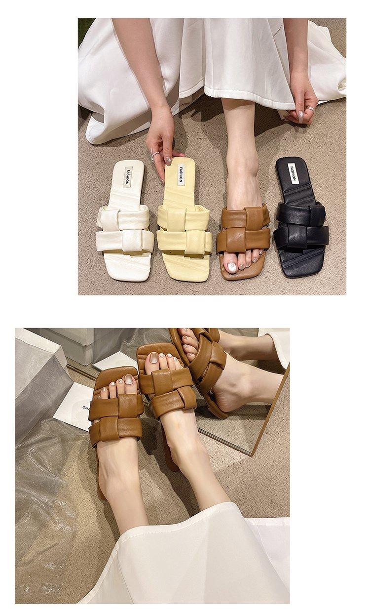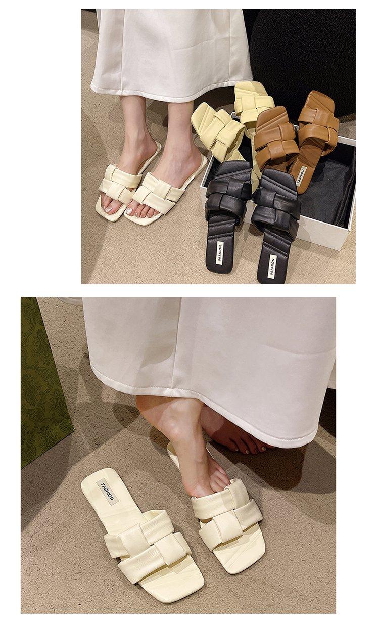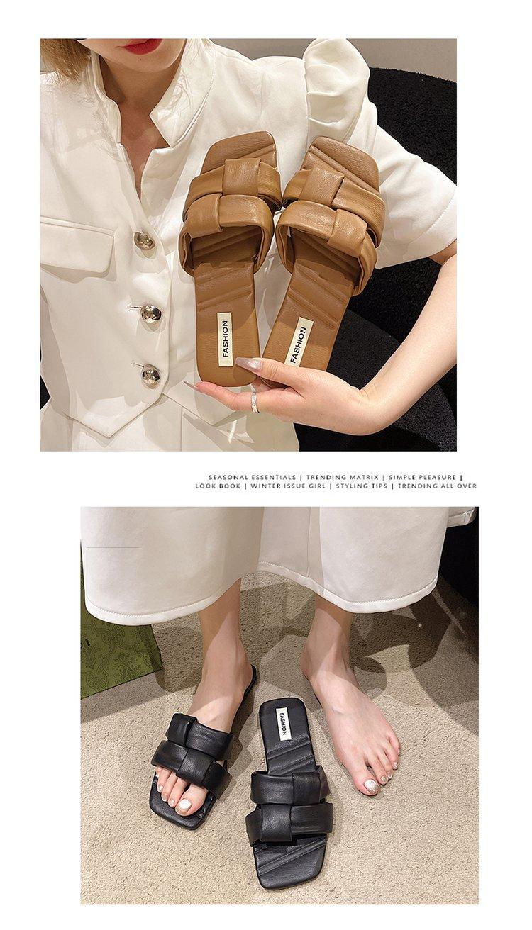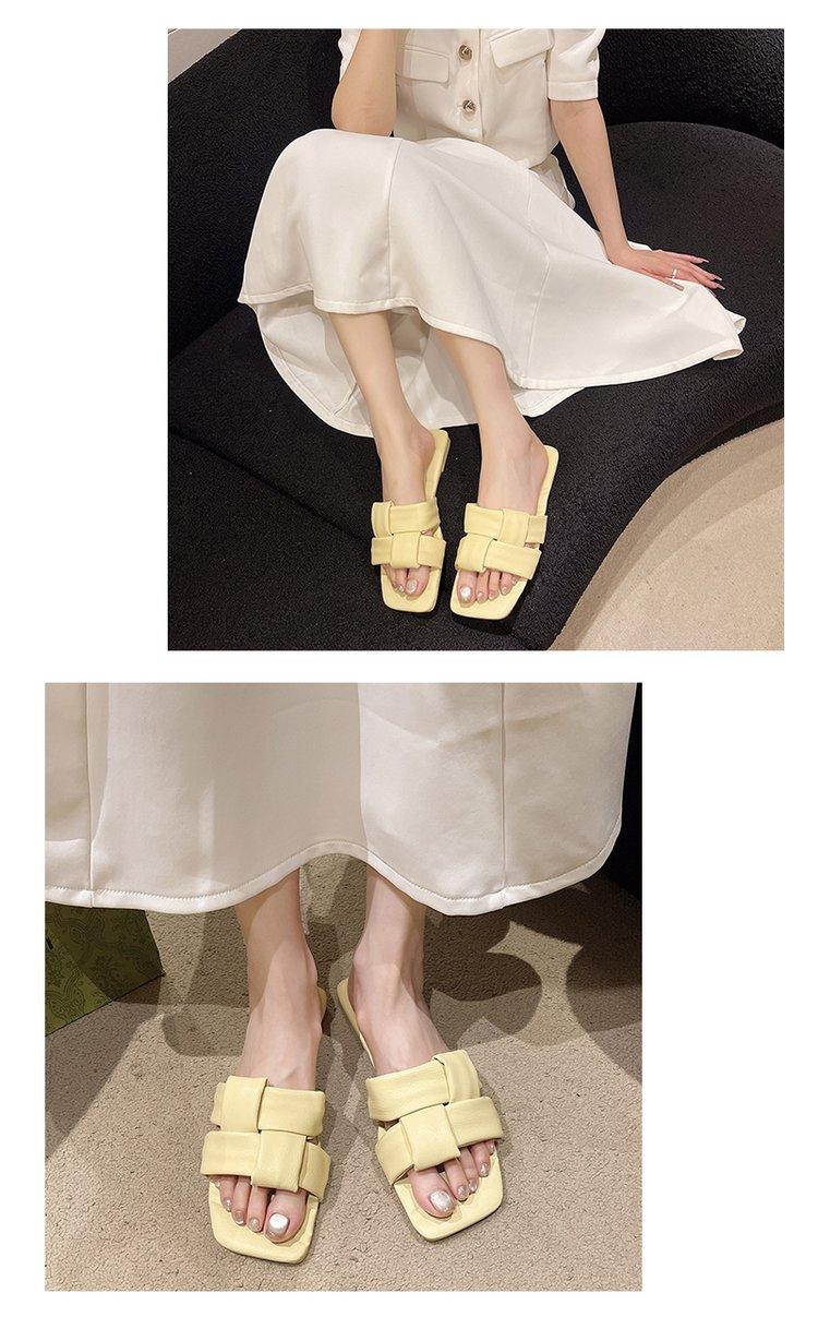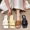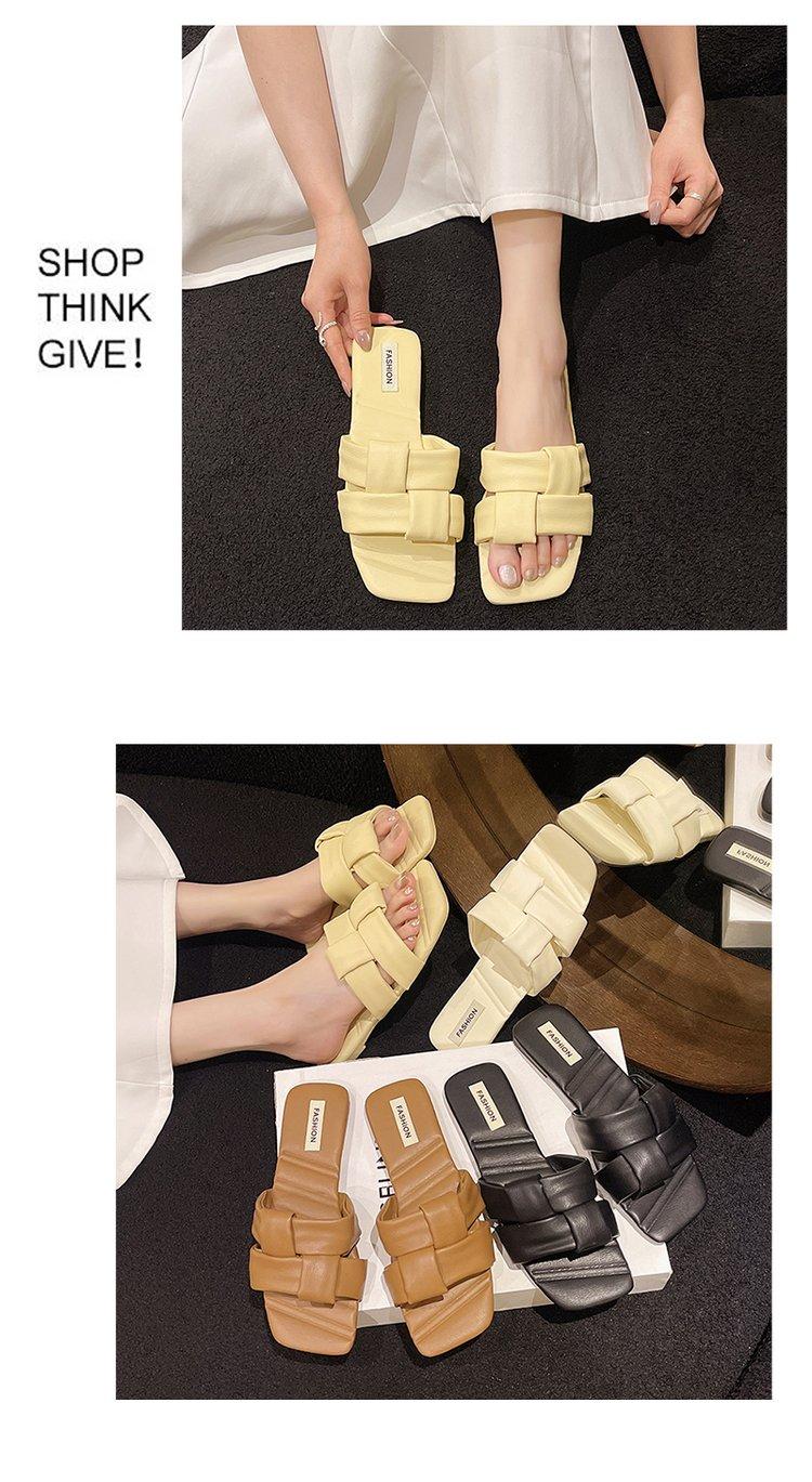 Nuevas sandalias planas de verano para mujer con punta cuadrada, tejidas, de punta abierta, a la moda y frescas