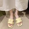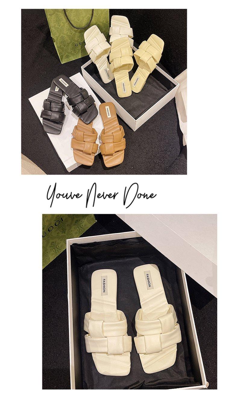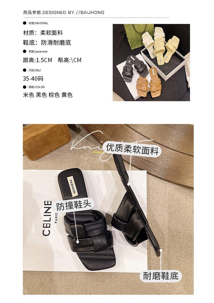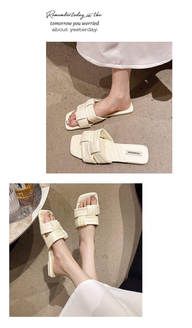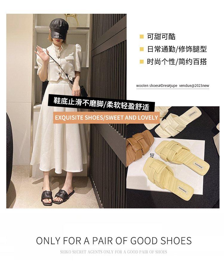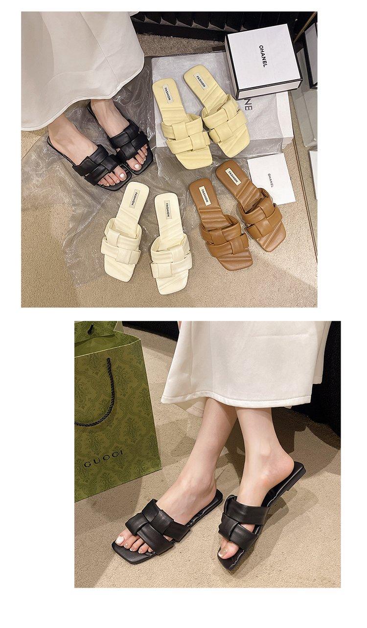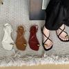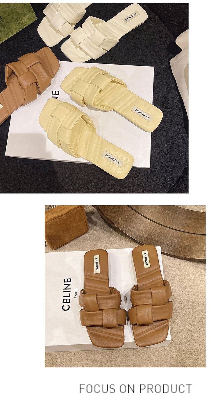 Nuevas sandalias planas de verano para mujer con punta cuadrada, tejidas, de punta abierta, a la moda y frescas