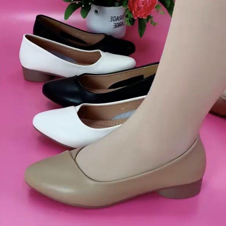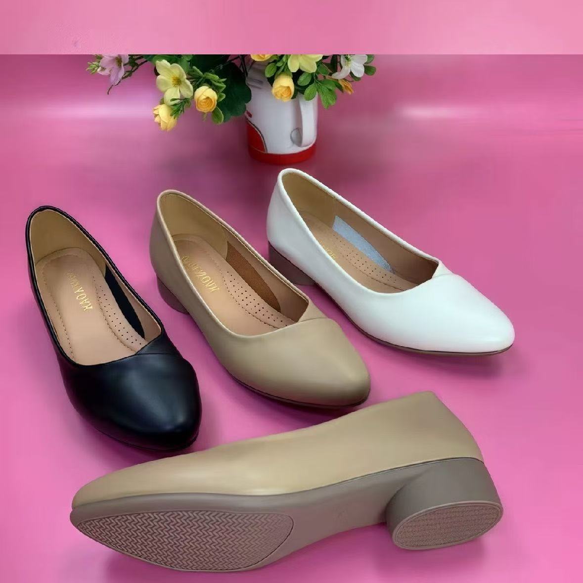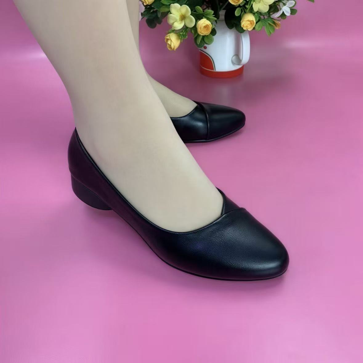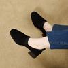 Zapatos Individuales de Tacón Grueso Bajo Escotados de Punta Negra para Mujer Otoño 2025 Nuevos Tacón Bajo Slip-On Versátiles Trabajo Zapatos de Cuero